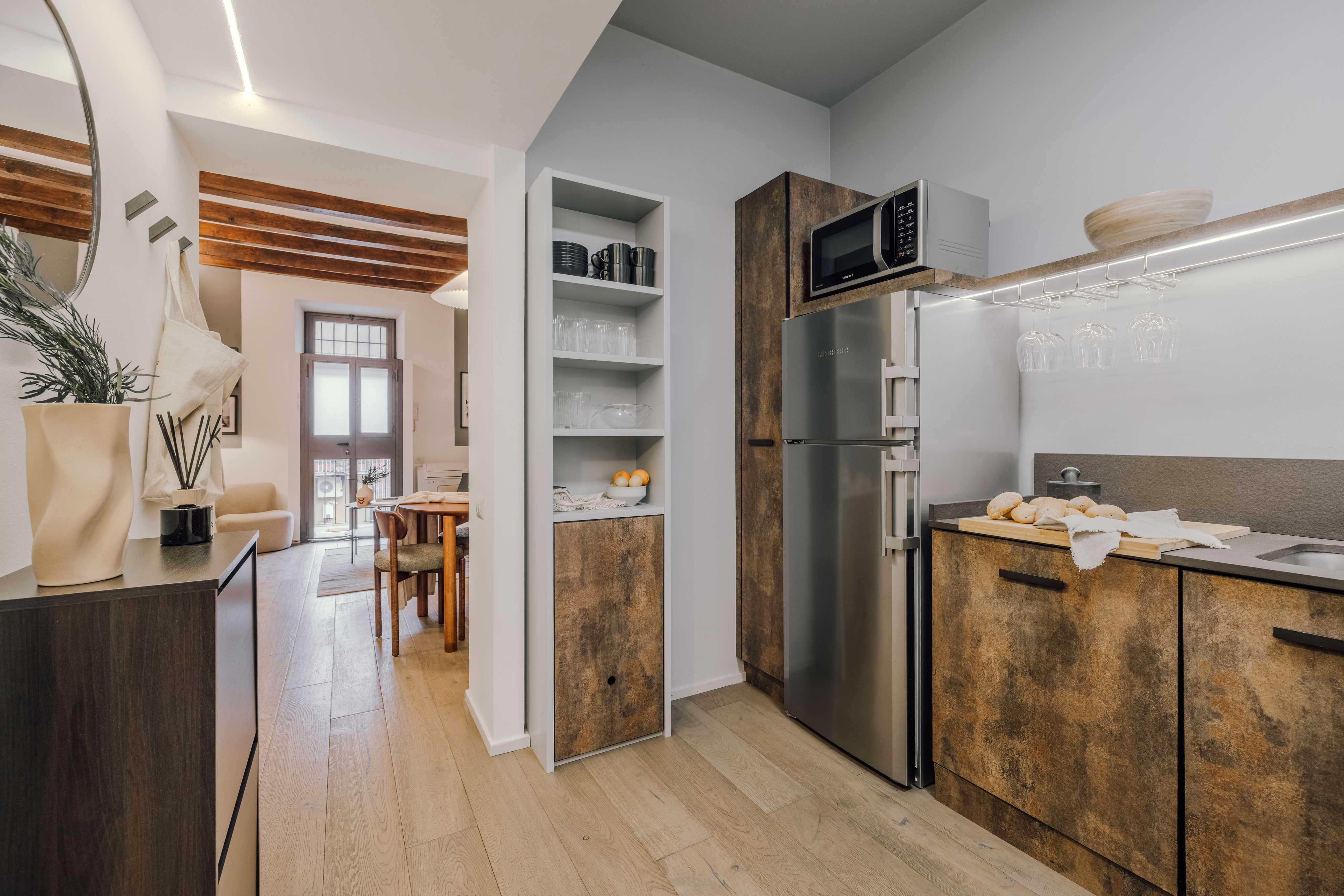 *Nuestro equipo de diseño interno selecciona cuidadosamente todos los muebles y la decoración de los apartamentos para garantizar el máximo nivel de calidad y comodidad. Como parte del mantenimiento constante de las viviendas, las mejoras de diseño y la puesta en escena fotográfica, puede haber pequeñas diferencias entre el mobiliario que se ve en las fotos y el que se encuentra en el apartamento. Si tiene alguna pregunta o duda, consulte con un agente de ventas.