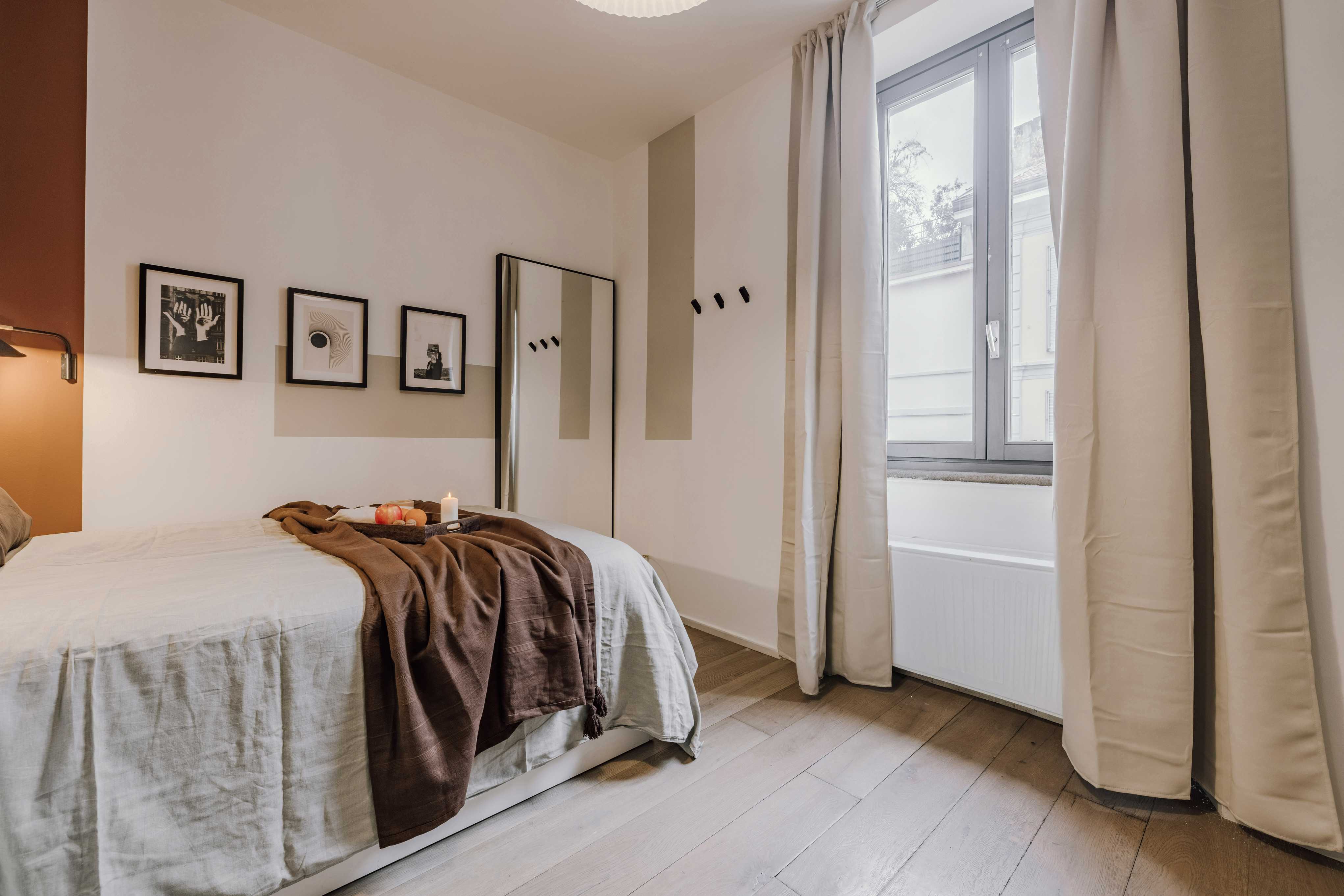 Spettacolare appartamento in Via Bramante, con 1 camera da letto e 1 bagno. La cucina è attrezzata con elettrodomestici e stoviglie. I letti sono dotati di morbida biancheria, ideale per un buon riposo notturno. L'appartamento dispone di 1 bagno dotato di doccia completa e asciugamani. Inoltre, l'appartamento è dotato di WiFi ad alta velocità e SmartTV.
