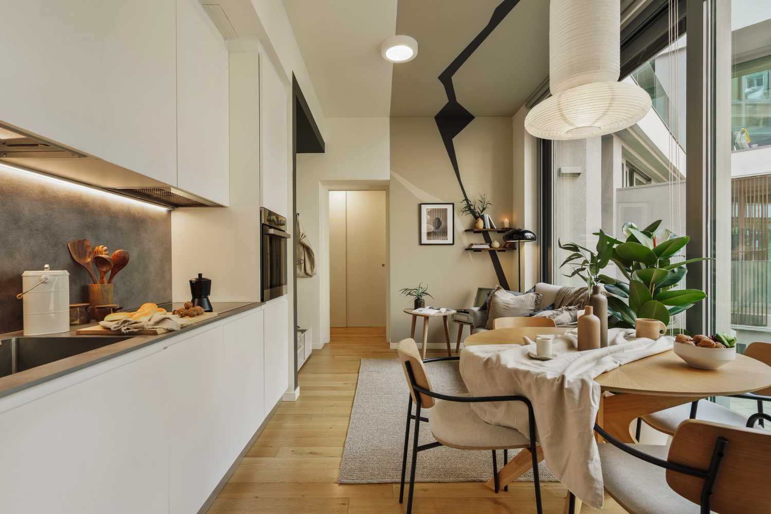 *Nuestro equipo de diseño interno selecciona cuidadosamente todos los muebles y la decoración de los apartamentos para garantizar el máximo nivel de calidad y comodidad. Como parte del mantenimiento constante de las viviendas, las mejoras de diseño y la puesta en escena fotográfica, puede haber pequeñas diferencias entre el mobiliario que se ve en las fotos y el que se encuentra en el apartamento. Si tiene alguna pregunta o duda, consulte con un agente de ventas.