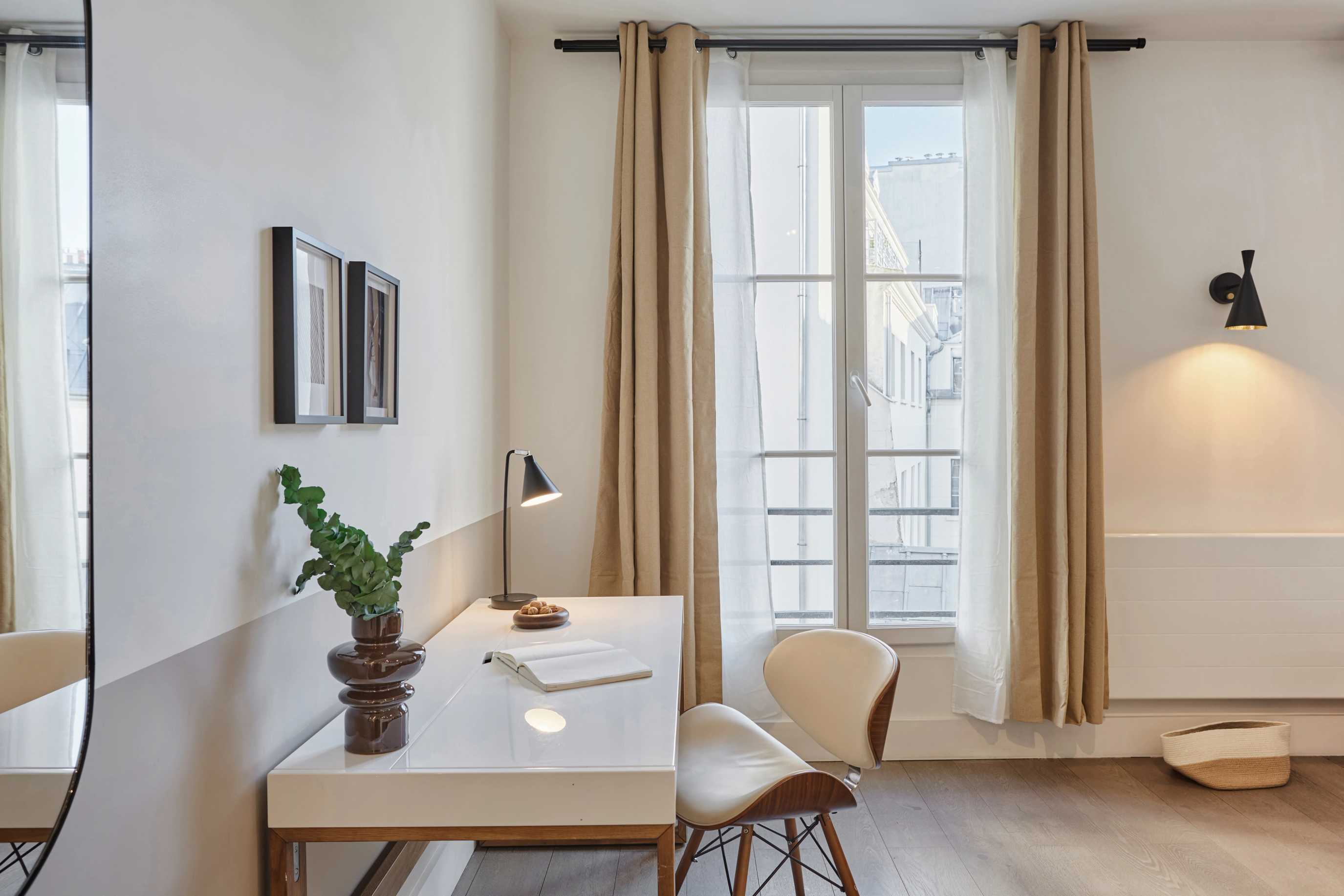 *Nuestro equipo de diseño interno selecciona de forma experta todos los muebles y la decoración de los apartamentos para garantizar el máximo nivel de calidad y comodidad. Como parte del mantenimiento constante de la casa, las mejoras de diseño y la puesta en escena fotográfica, puede haber pequeñas differences entre el mobiliario que se ve en las fotos y el que encontrará en el apartamento. Consulte con un agente de ventas para cualquier pregunta o duda.