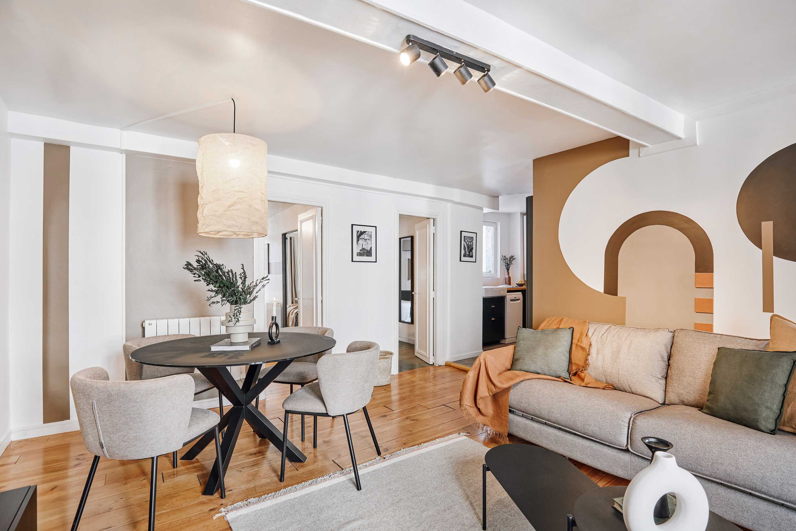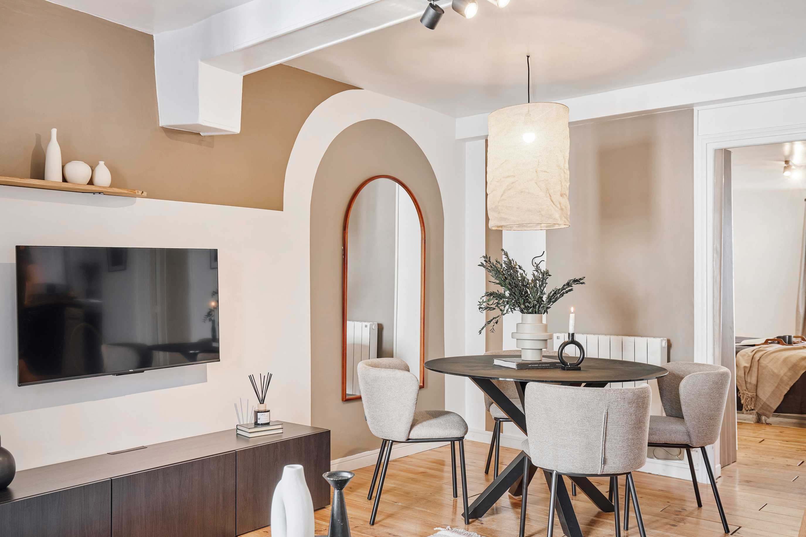 *Nuestro equipo de diseño interno selecciona de forma experta todos los muebles y la decoración de los apartamentos para garantizar el máximo nivel de calidad y comodidad. Como parte del mantenimiento constante de la casa, las mejoras de diseño y la puesta en escena fotográfica, puede haber pequeñas diferencias entre el mobiliario que se ve en las fotos y el que encontrará en el apartamento. Consulte con un agente de ventas para cualquier pregunta o duda.