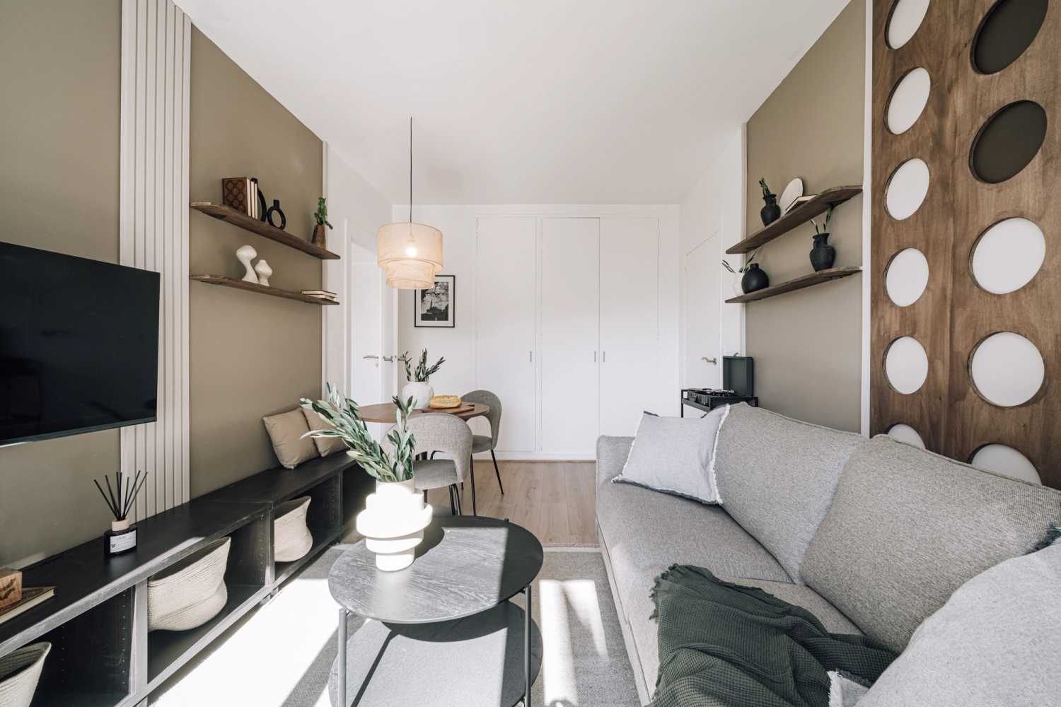 *Nuestro equipo de diseño interno selecciona de forma experta todos los muebles y la decoración de los apartamentos para garantizar el máximo nivel de calidad y comodidad. Como parte del mantenimiento constante de la casa, las mejoras de diseño y la puesta en escena fotográfica, puede haber pequeñas diferencias entre el mobiliario que se ve en las fotos y el que encontrará en el apartamento. Consulte con un agente de ventas para cualquier pregunta o duda.