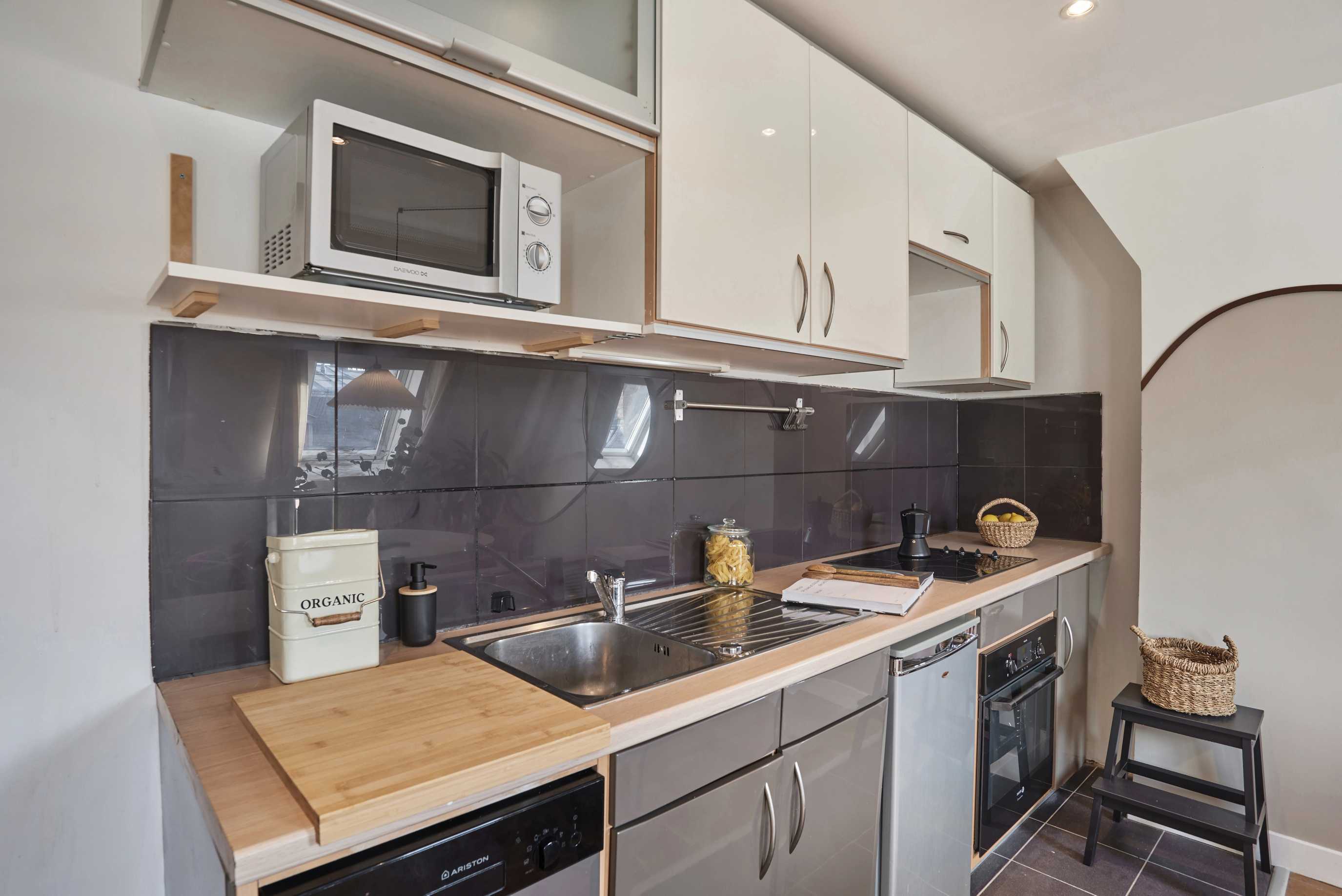 Consta de un dormitorio con cama doble, una sala de estar, una cocina y un cuarto de baño. La cama está equipada con sábanas suaves, ideales para dormir plácidamente. La cocina está totalmente equipada con electrodomésticos y utensilios de cocina. El apartamento dispone de un cuarto de baño con ducha completa y toallas. Además, hay WiFi de alta velocidad y una SmartTV. El apartamento también cuenta con lavadora y lavavajillas para su comodidad.