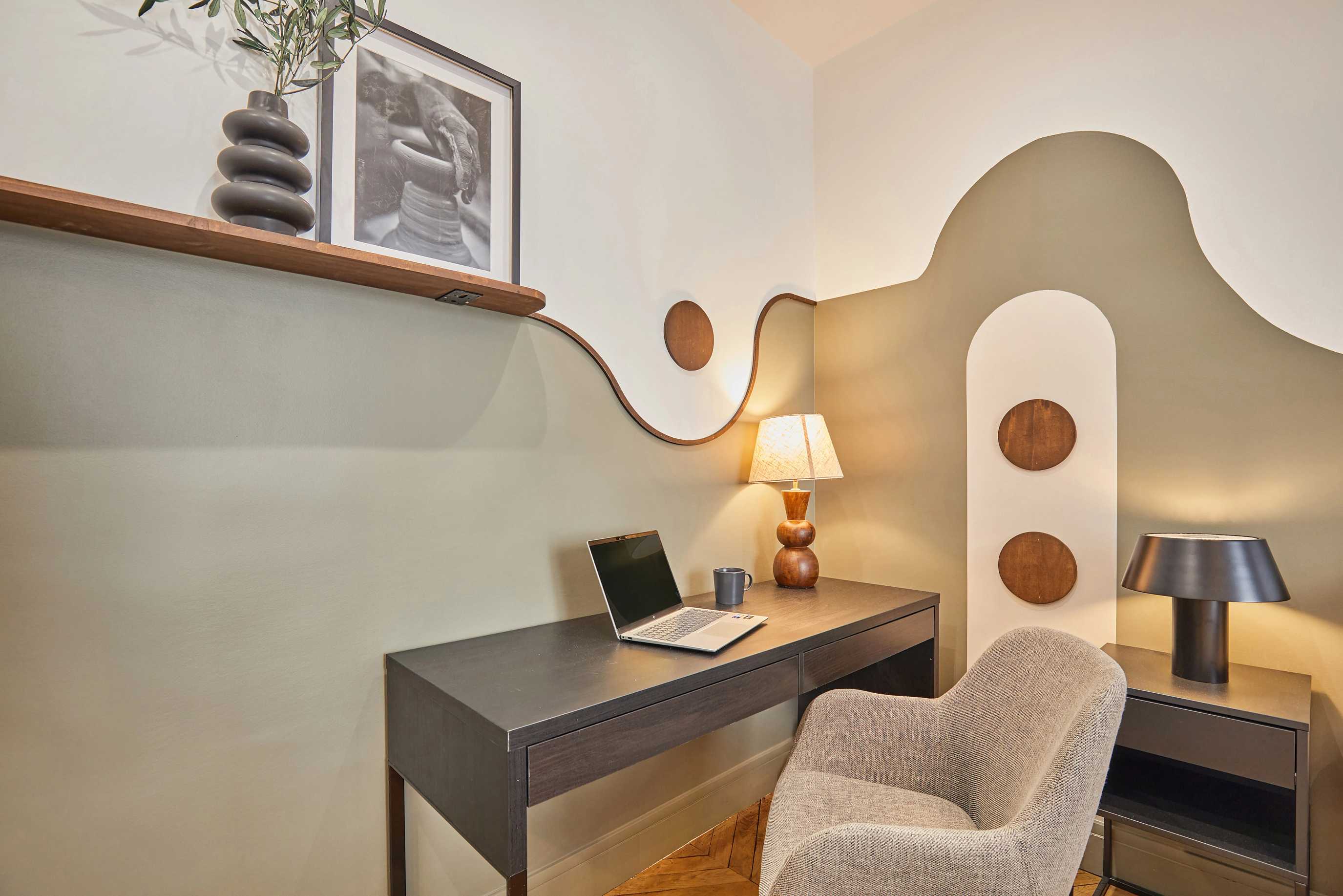 *Nuestro equipo de diseño interno selecciona de forma experta todos los muebles y la decoración de los apartamentos para garantizar el máximo nivel de calidad y comodidad. Como parte del mantenimiento constante de la casa, las mejoras de diseño y la puesta en escena fotográfica, puede haber pequeñas diferencias entre el mobiliario que se ve en las fotos y el que encontrará en el apartamento. Consulte con un agente de ventas para cualquier pregunta o duda.