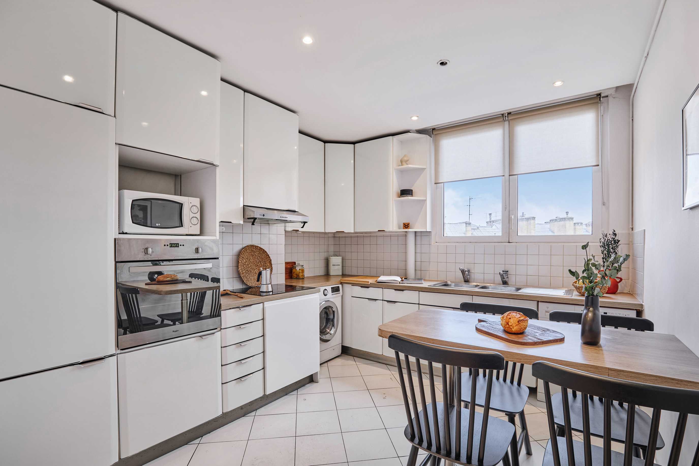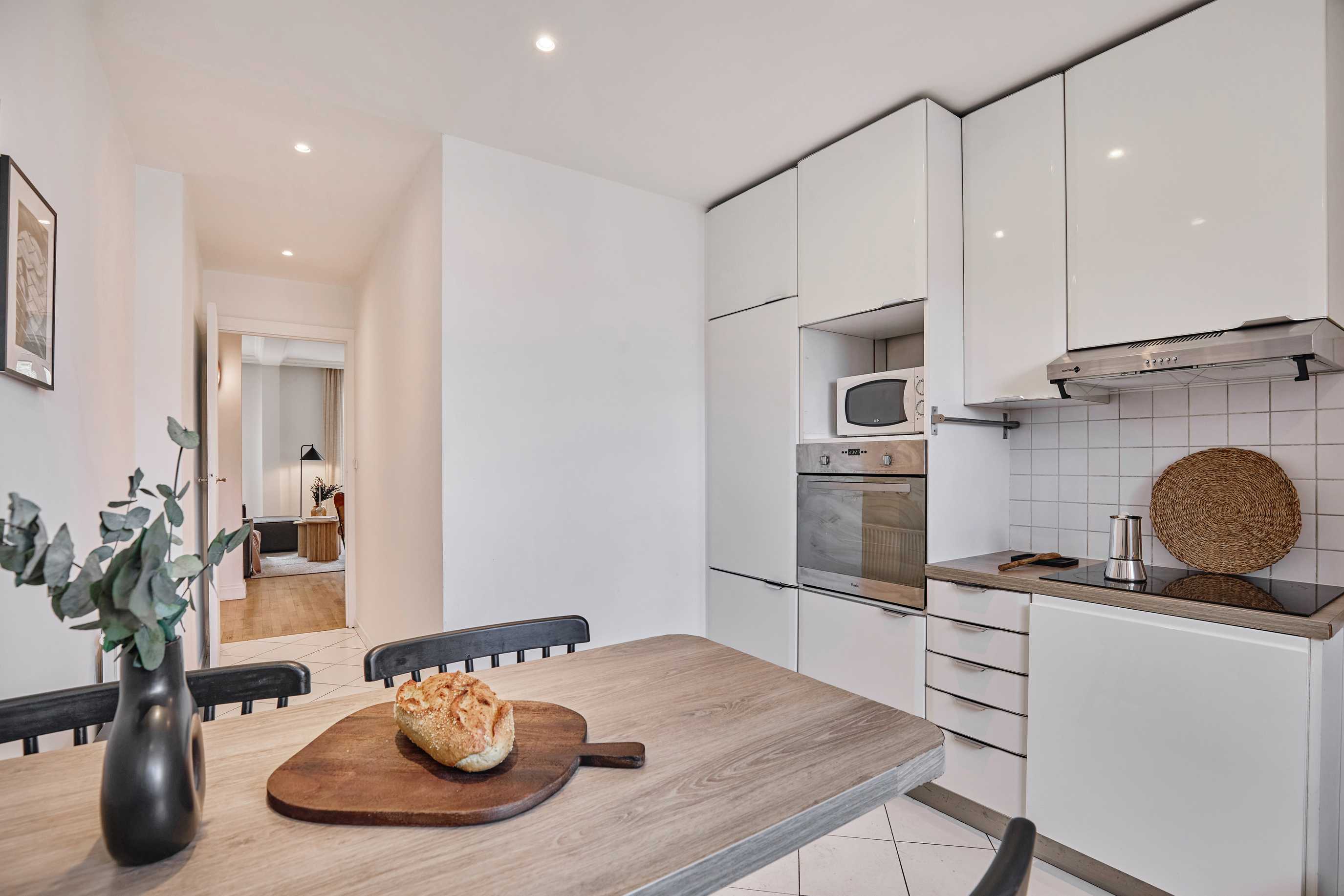 El apartamento consta de tres dormitorios, cada uno con una cama doble, un salón, una cocina y dos cuartos de baño. La cama está equipada con sábanas suaves, ideales para un buen descanso nocturno. La cocina está totalmente equipada con electrodomésticos y utensilios de cocina. El baño está equipado con ducha completa y toallas. El apartamento también cuenta con WiFi de alta velocidad y TV inteligente. El apartamento también dispone de lavadora y lavavajillas para su comodidad.