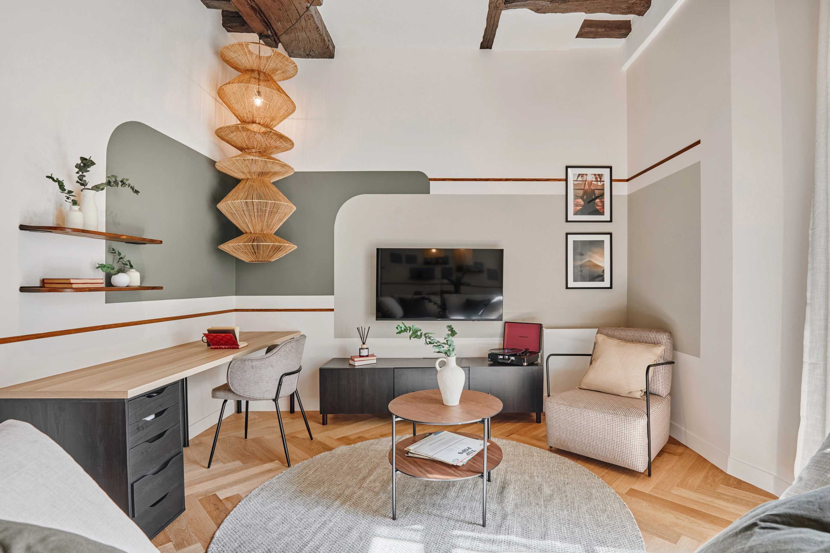 *Nuestro equipo de diseño interno selecciona de forma experta todos los muebles y la decoración de los apartamentos para garantizar el máximo nivel de calidad y comodidad. Como parte del mantenimiento constante de la casa, las mejoras de diseño y la puesta en escena fotográfica, puede haber pequeñas diferencias entre el mobiliario que se ve en las fotos y el que encontrará en el apartamento. Consulte con un agente de ventas para cualquier pregunta o duda.