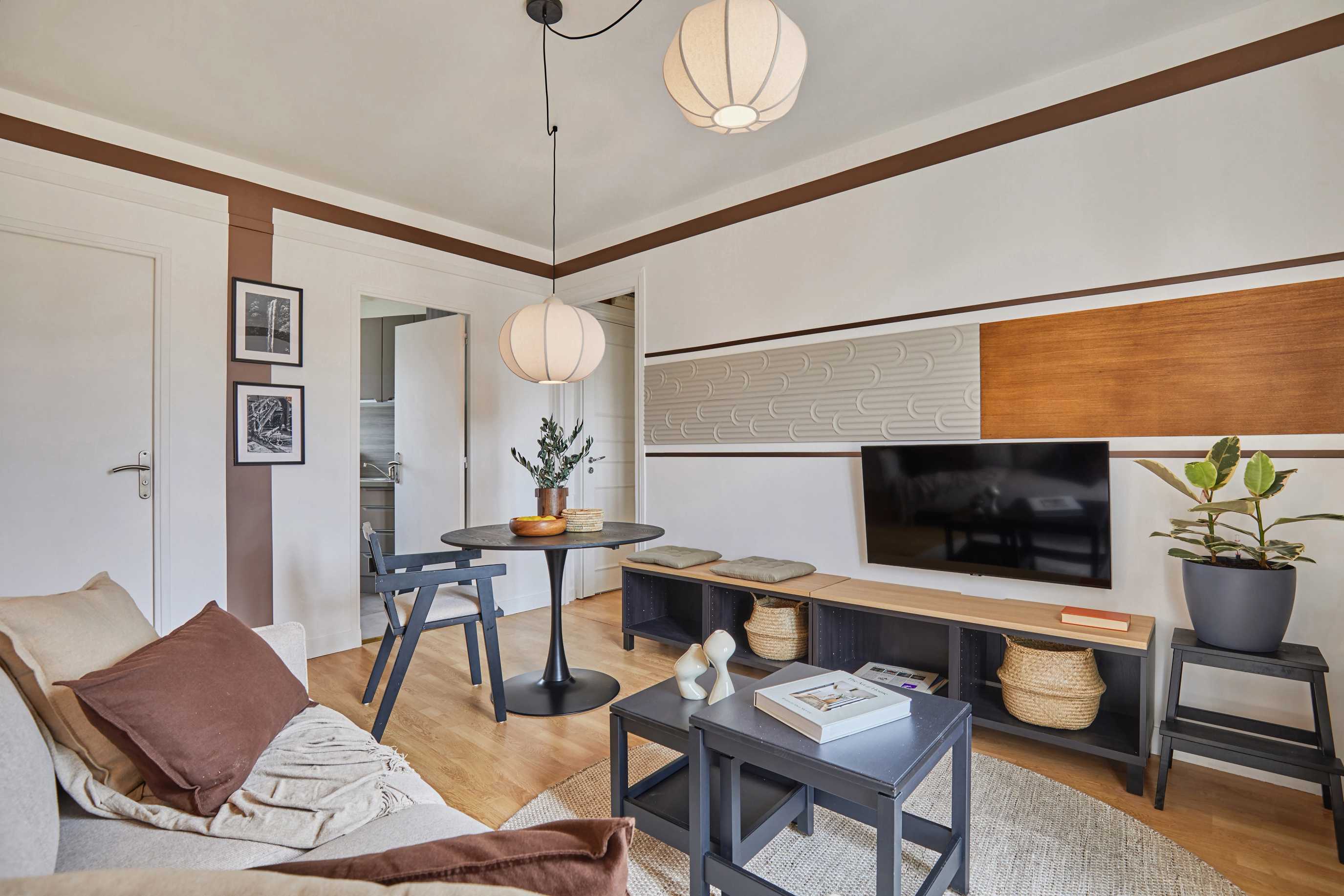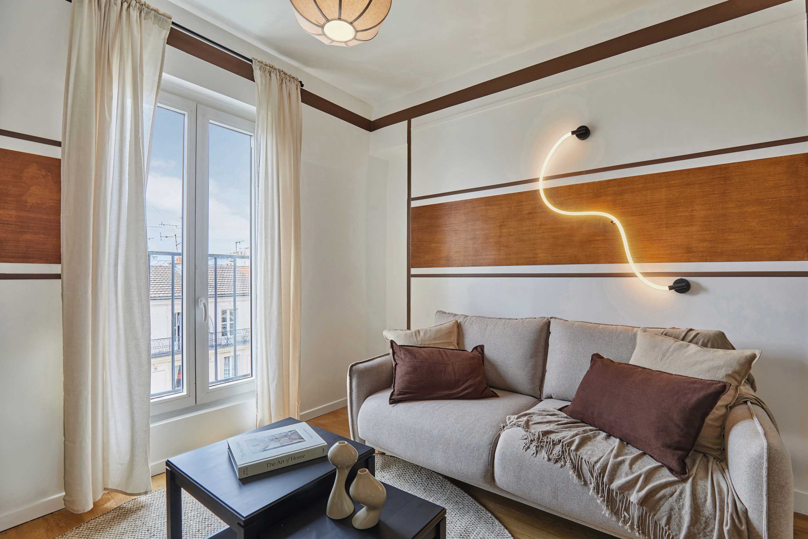 *Nuestro equipo de diseño interno selecciona de forma experta todos los muebles y la decoración de los apartamentos para garantizar el máximo nivel de calidad y comodidad. Como parte del mantenimiento constante de la casa, las mejoras de diseño y la puesta en escena fotográfica, puede haber pequeñas diferencias entre el mobiliario que se ve en las fotos y el que encontrará en el apartamento. Consulte con un agente de ventas para cualquier pregunta o duda.