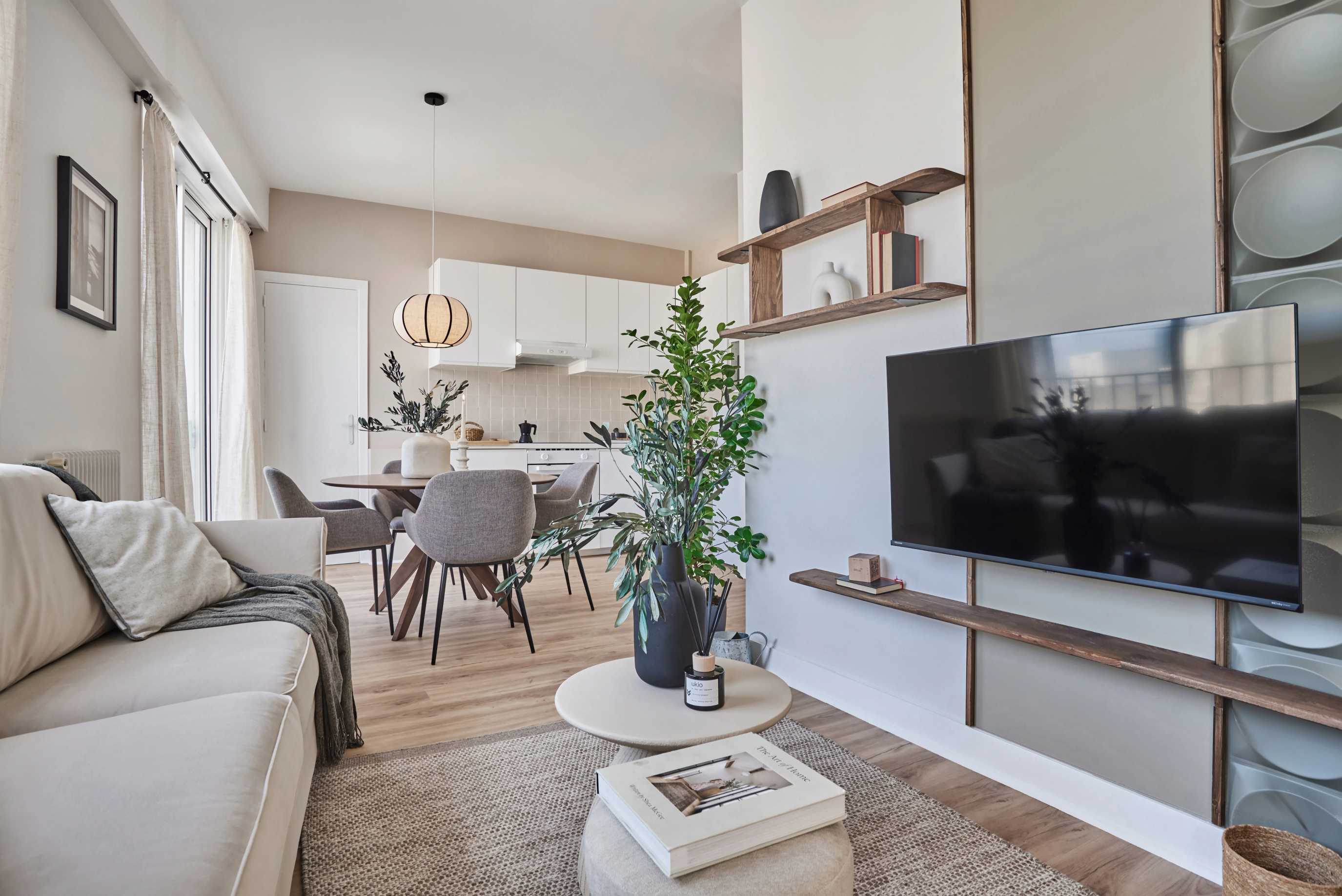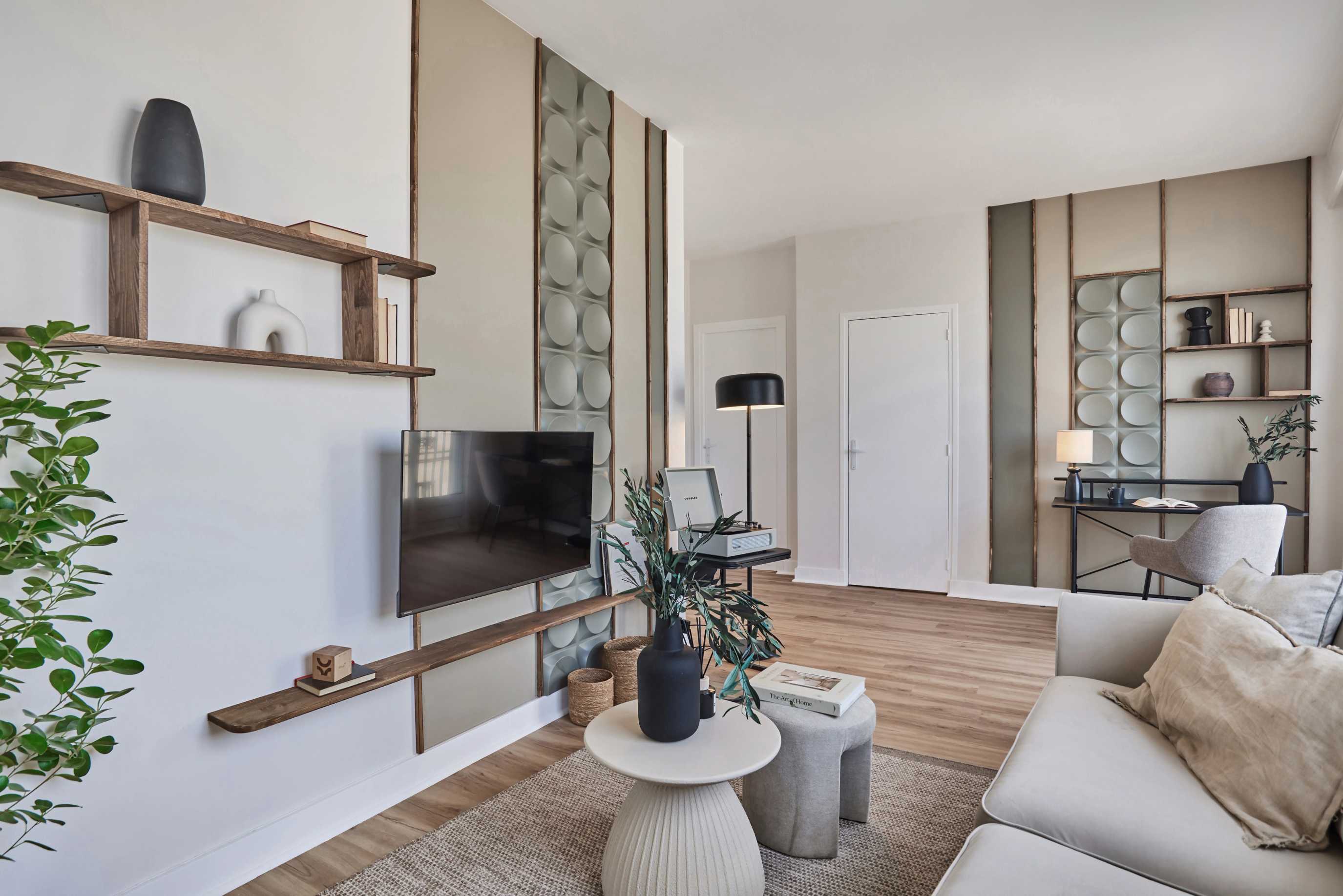 *Nuestro equipo de diseño interno selecciona de forma experta todos los muebles y la decoración de los apartamentos para garantizar el máximo nivel de cadad y comodidad. Como parte del mantenimiento constante de la casa, las mejoras de diseño y la puesta en escena fotográfica, puede haber pequeñas diferencias entre el mobiliario que se ve en las fotos y el que encontrará en el apartliamento. Consulte con un agente de ventas para cualquier pregunta o duda.