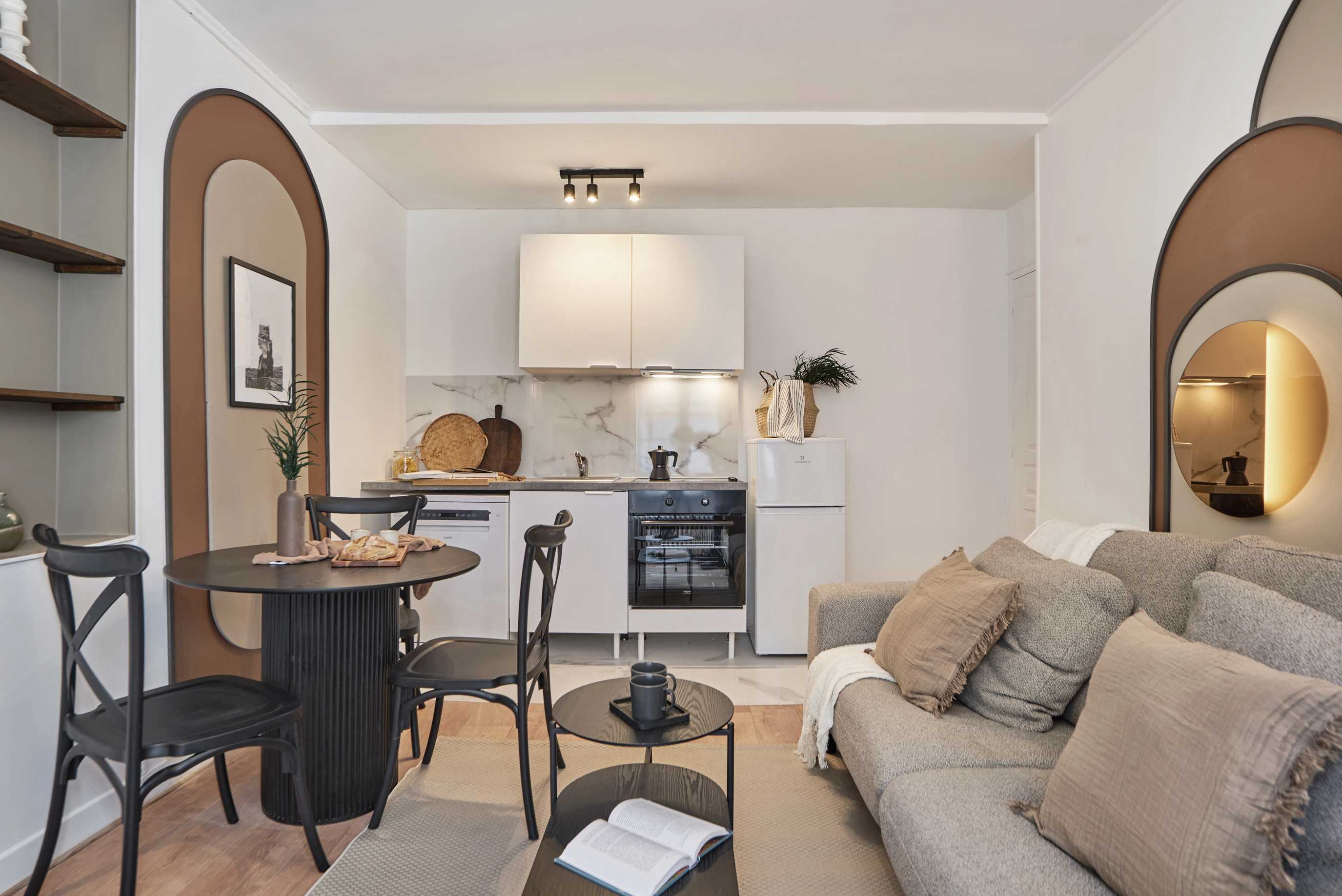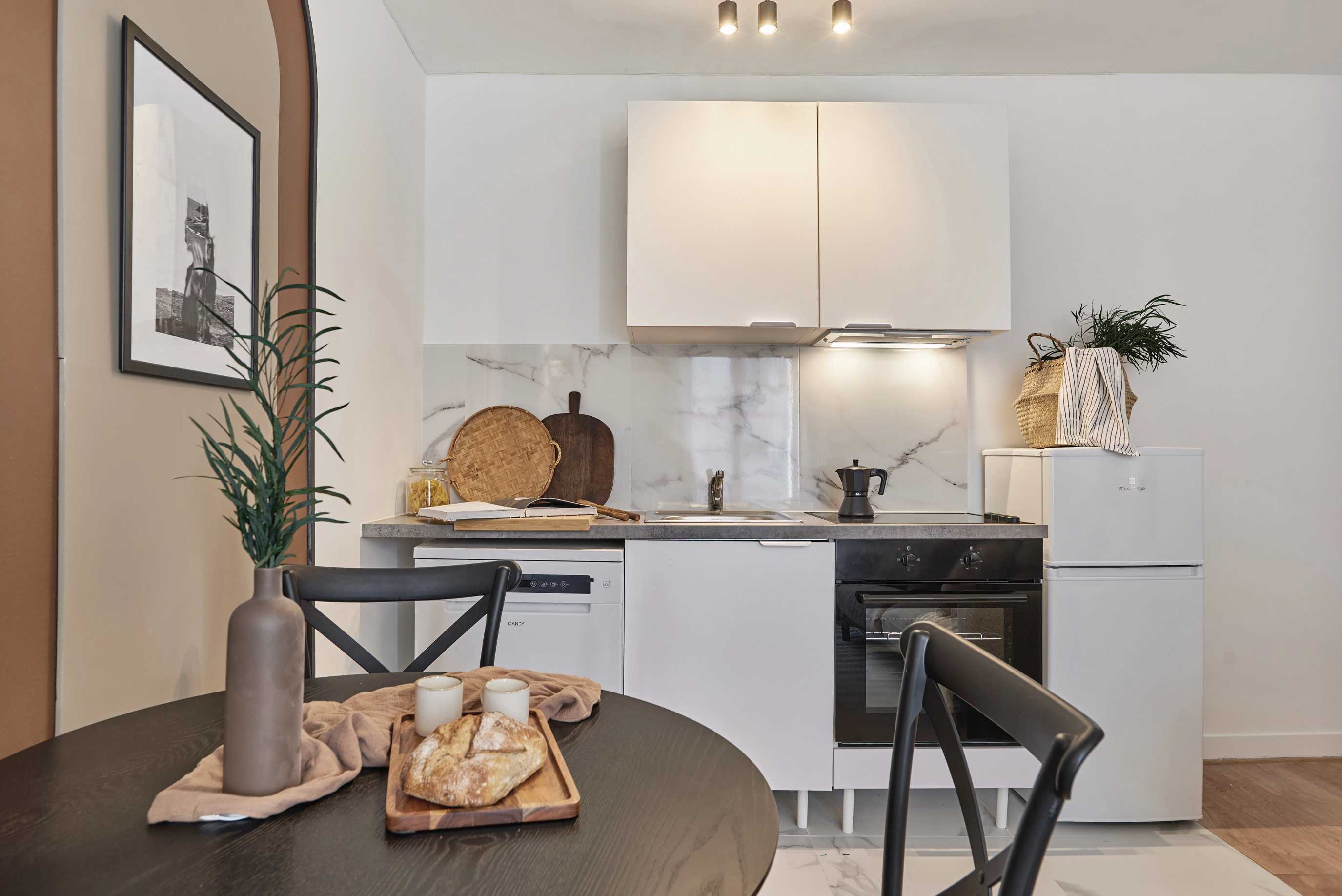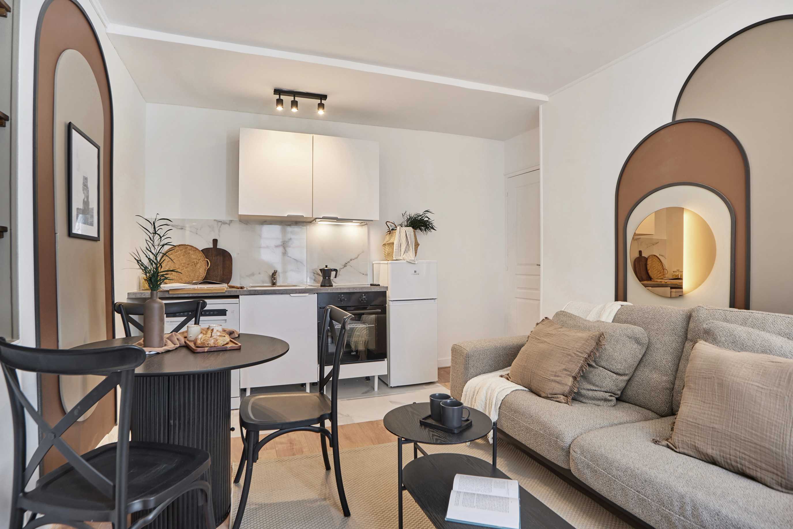 *Nuestro equipo de diseño interno selecciona de forma experta todos los muebles y la decoración de los apartamentos para garantizar el máximo nivel de cadad y comodidad. Como parte del mantenimiento constante de la casa, las mejoras de diseño y la puesta en escena fotográfica, puede haber pequeñas diferencias entre el mobiliario que se ve en las fotos y el que encontrará en el apartliamento. Consulte con un agente de ventas para cualquier pregunta o duda.
