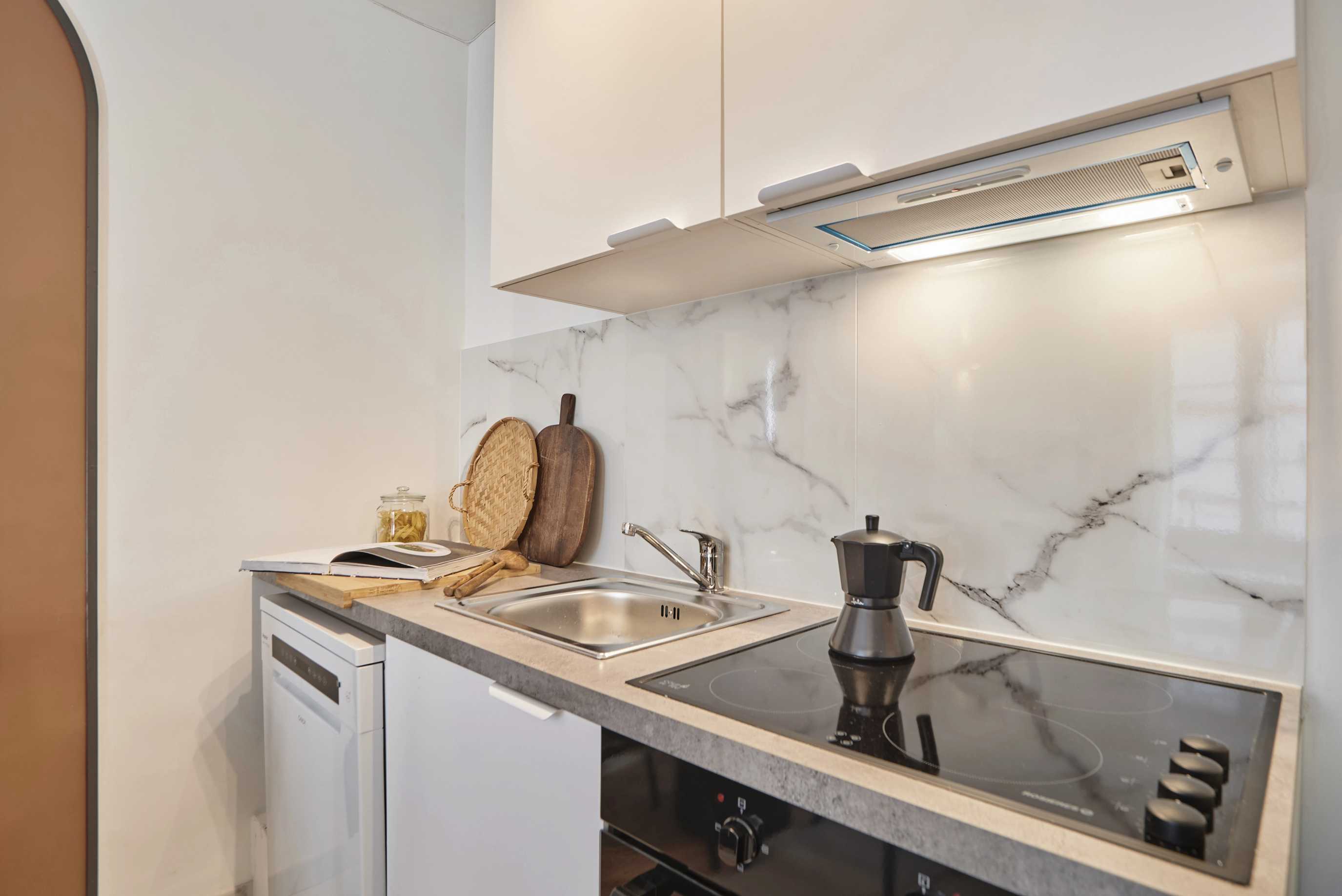 Consta de un dormitorio con cama doble, salón, cocina, cuarto de baño y aseo independiente con lavabo. La cama está equipada con sábanas suaves, ideales para pasar una buena noche de sueño. La cocina está totalmente equipada con electrodomésticos y utensilios de cocina. El apartamento dispone de un cuarto de baño con ducha y toallas. Además, hay conexión Wi-Fi de alta velocidad y SmartTV. El apartamento también cuenta con lavadora y lavavajillas para su comodidad.