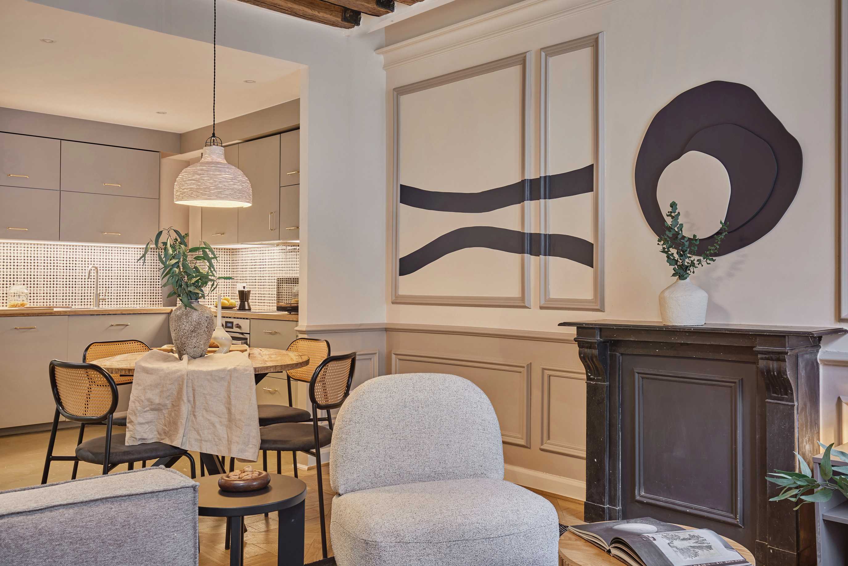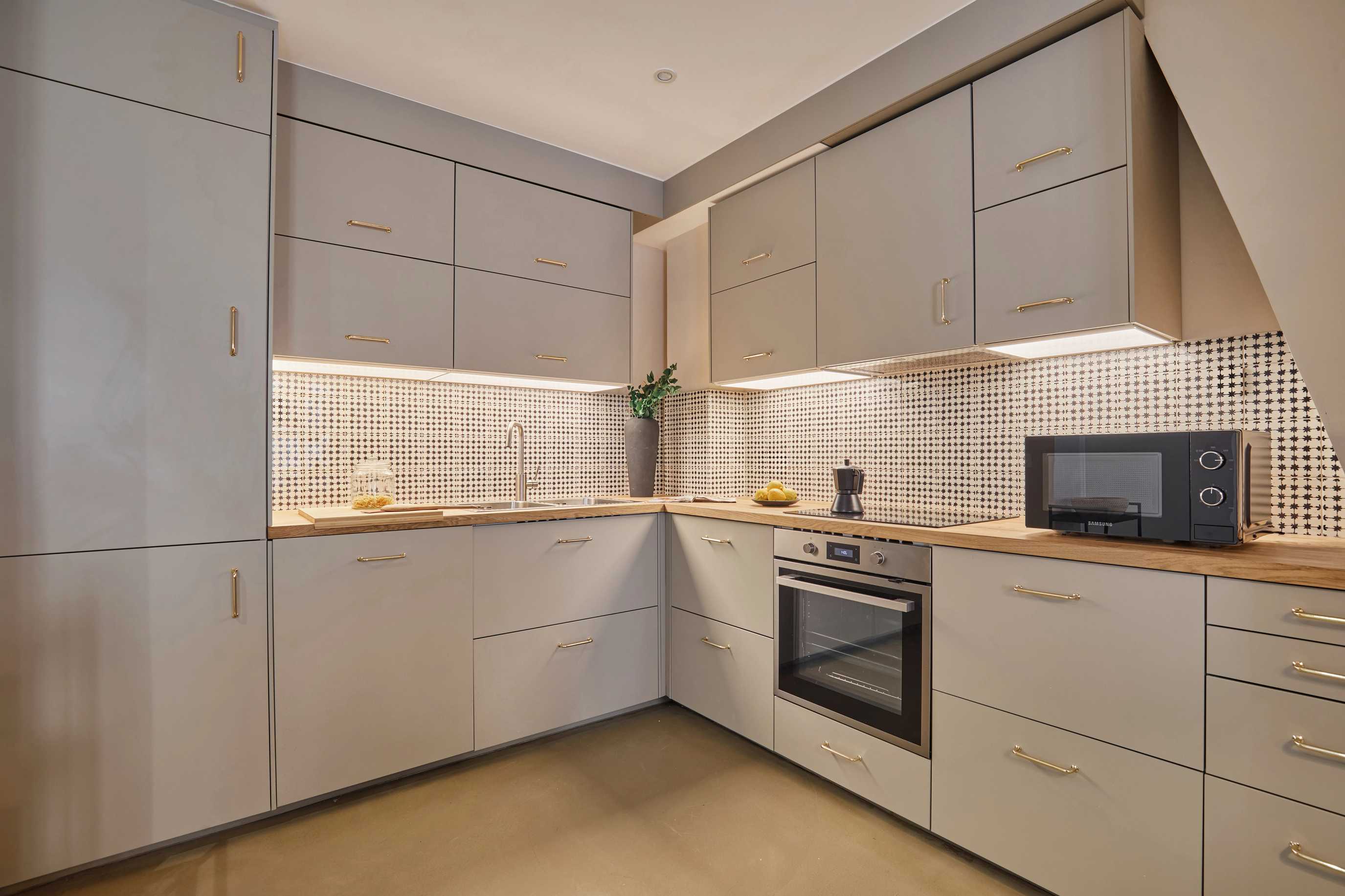 *Nuestro equipo de diseño interno selecciona cuidadosamente todos los muebles y la decoración de los apartamentos para garantizar el máximo nivel de calidad y comodidad. Como parte del mantenimiento constante de las viviendas, las mejoras de diseño y la puesta en escena fotográfica, puede haber pequeñas diferencias entre el mobiliario que se ve en las fotos y el que se encuentra en el apartamento. Si tiene alguna pregunta o duda, consulte con un agente de ventas.