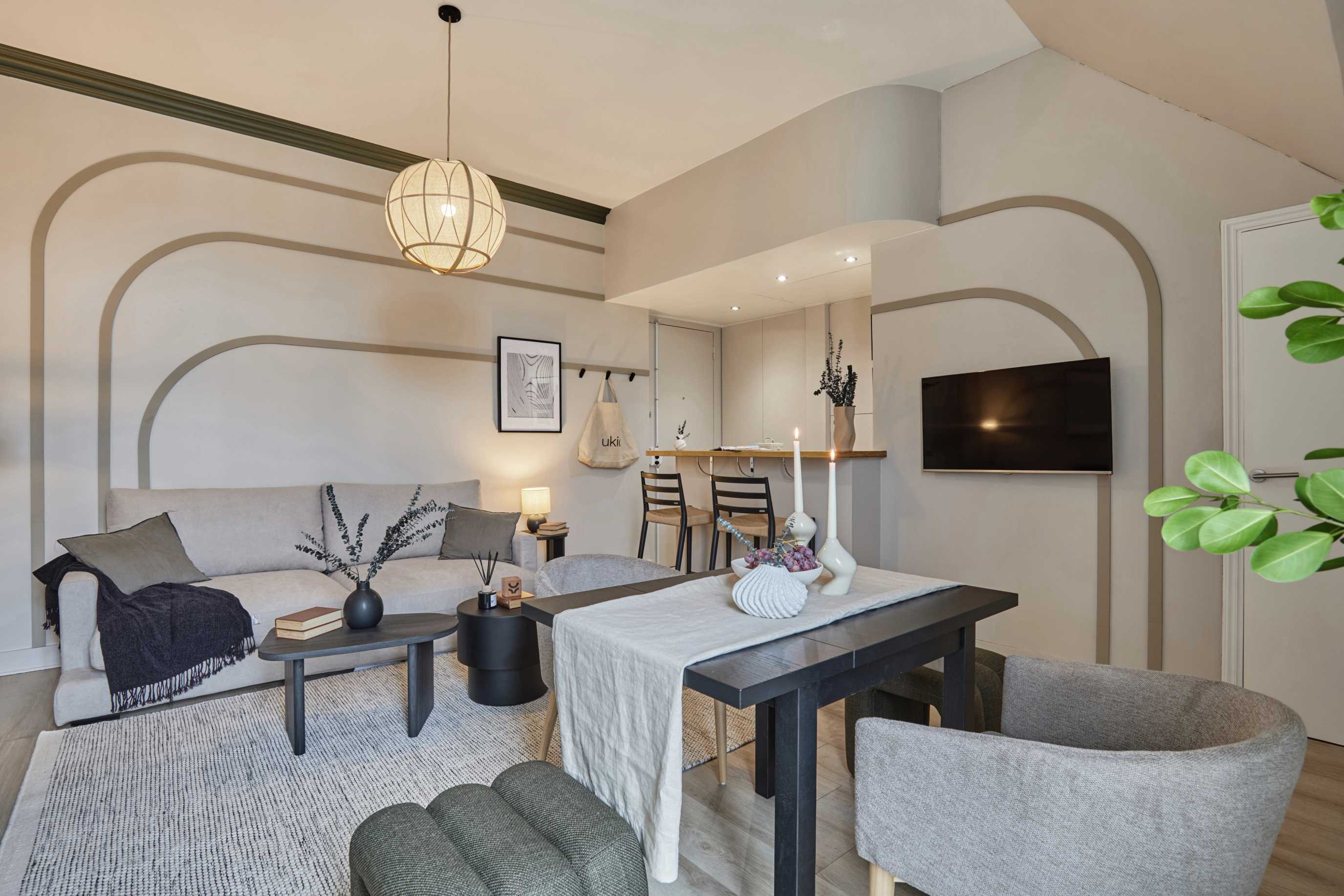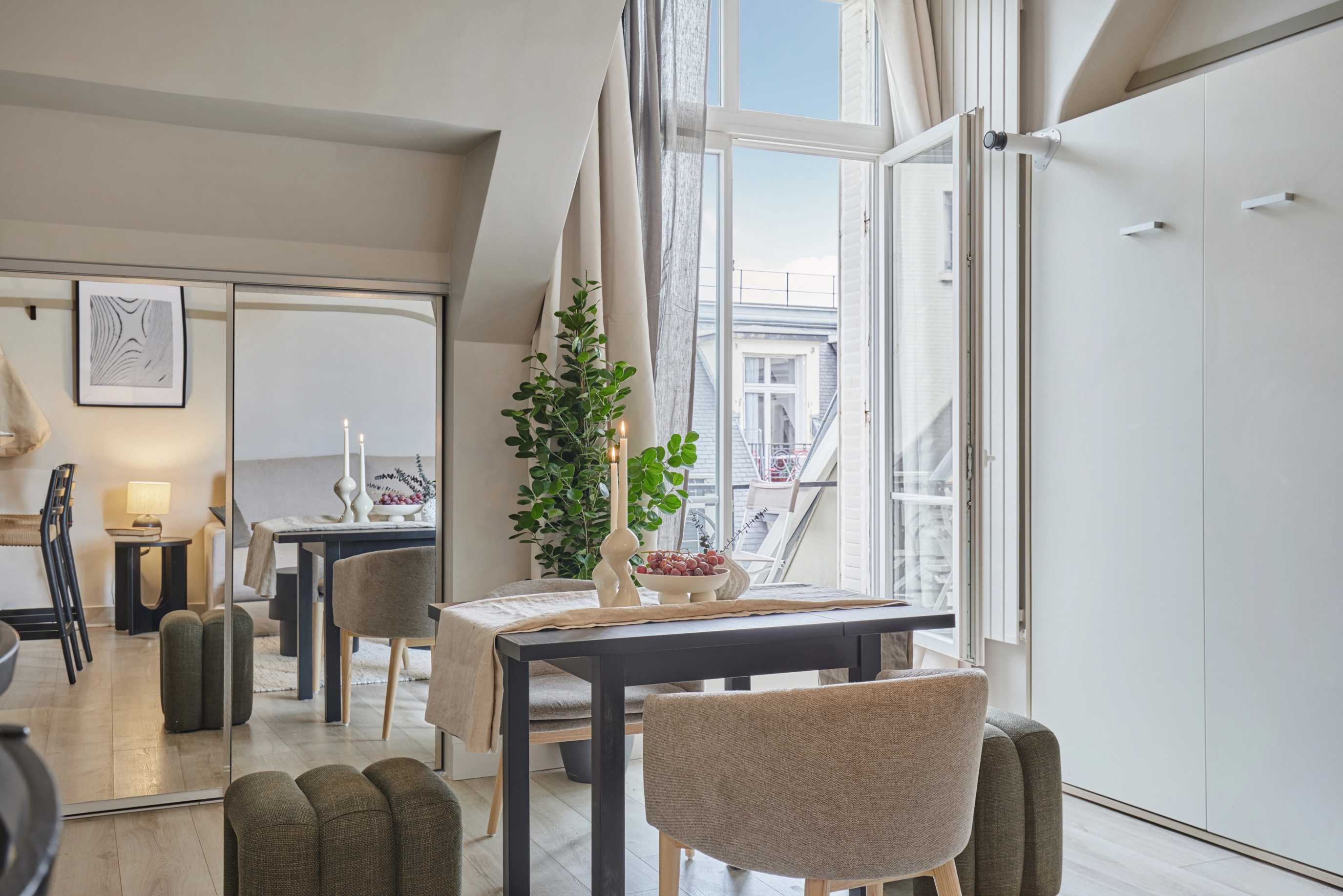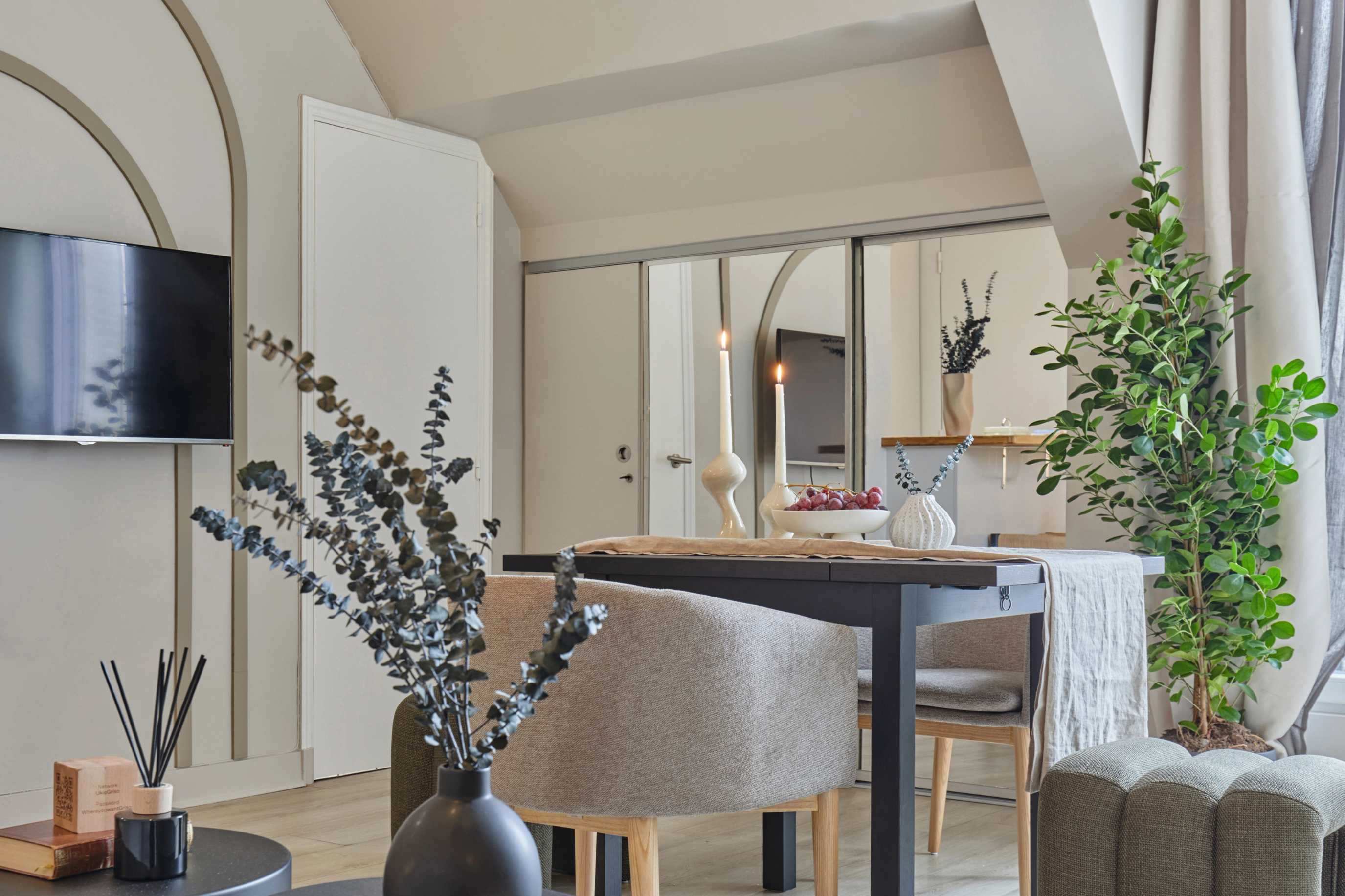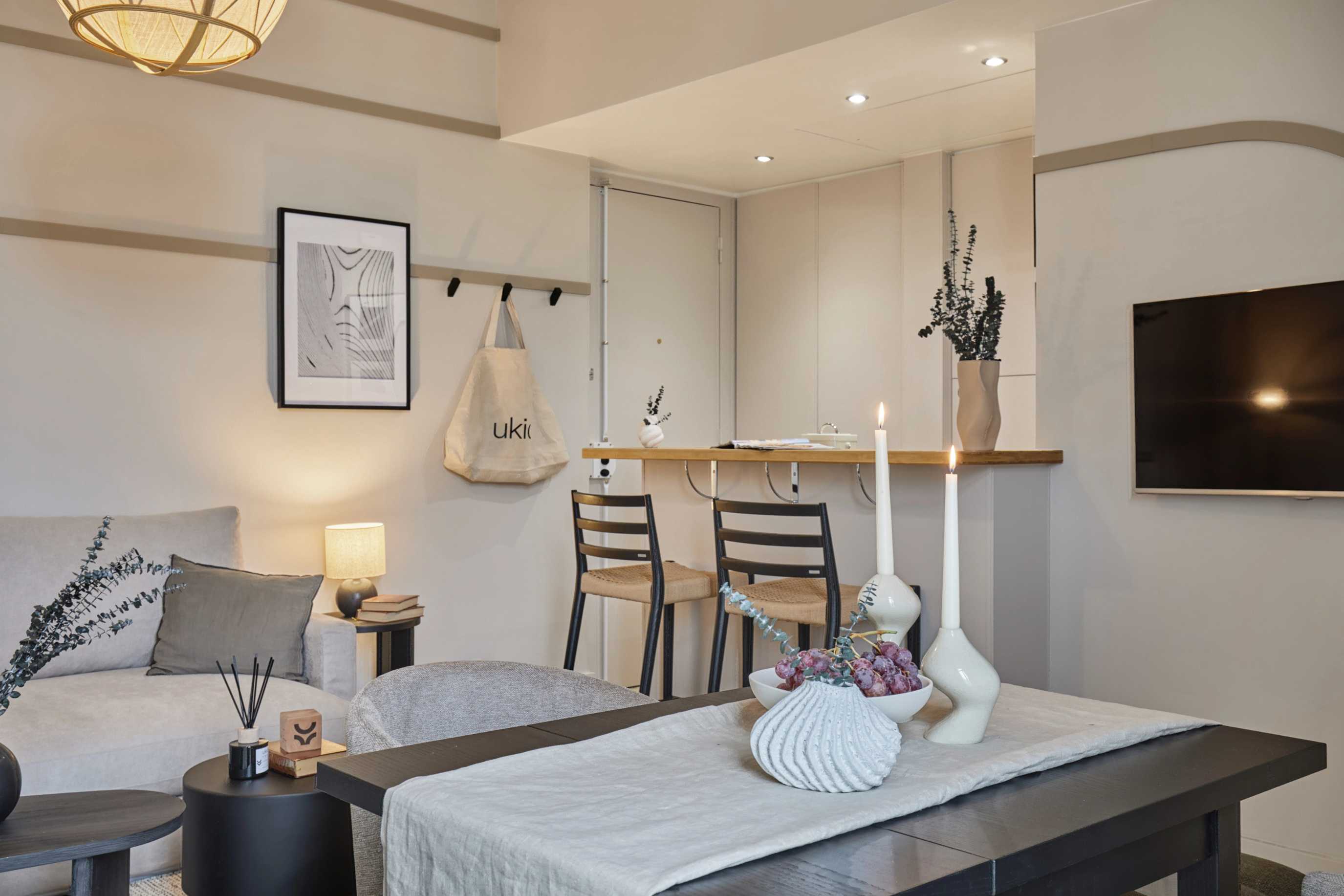 *Nuestro equipo de diseño interno selecciona de forma experta todos los muebles y la decoración de los apartamentos para garantizar el máximo nivel de calidad y comodidad. Como parte del mantenimiento constante de la casa, las mejoras de diseño y la puesta en escena fotográfica, puede haber pequeñas diferencias entre el mobiliario que se ve en las fotos y el que encontrará en el apartamento. Consulte con un agente de ventas para cualquier pregunta o duda.