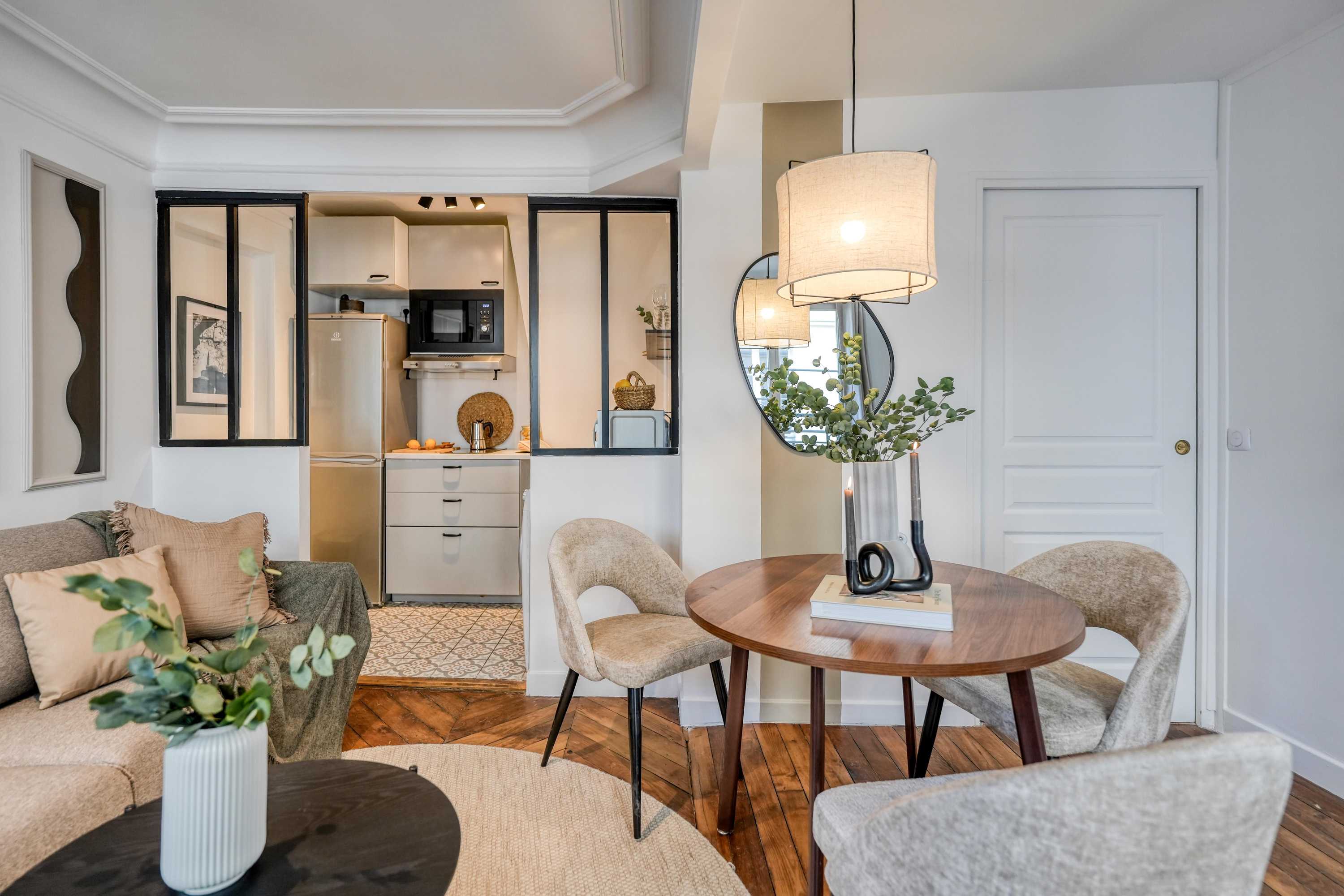 *Nuestro equipo de diseño interno selecciona de forma experta todos los muebles y la decoración de los apartamentos para garantizar el máximo nivel de calidad y comodidad. Como parte del mantenimiento constante de la casa, las mejoras de diseño y la puesta en escena fotográfica, puede haber pequeñas diferencias entre el mobiliario que se ve en las fotos y el que encontrará en el apartamento. Consulte con un agente de ventas para cualquier pregunta o duda.