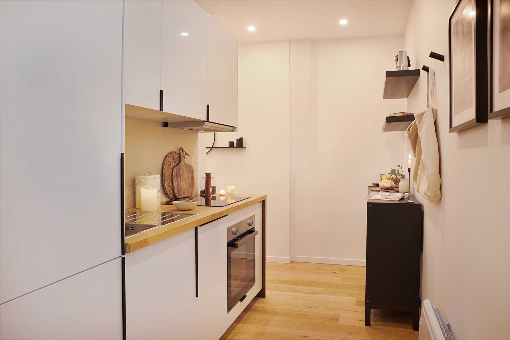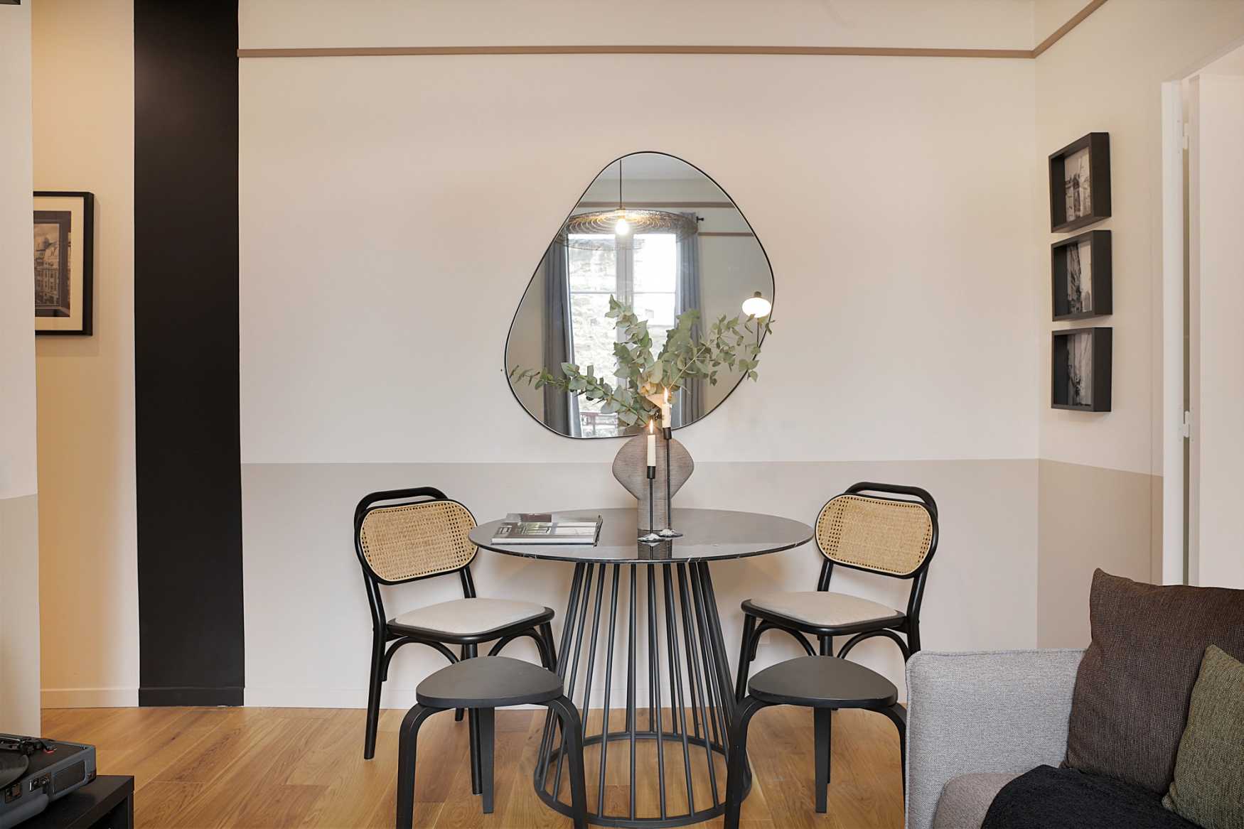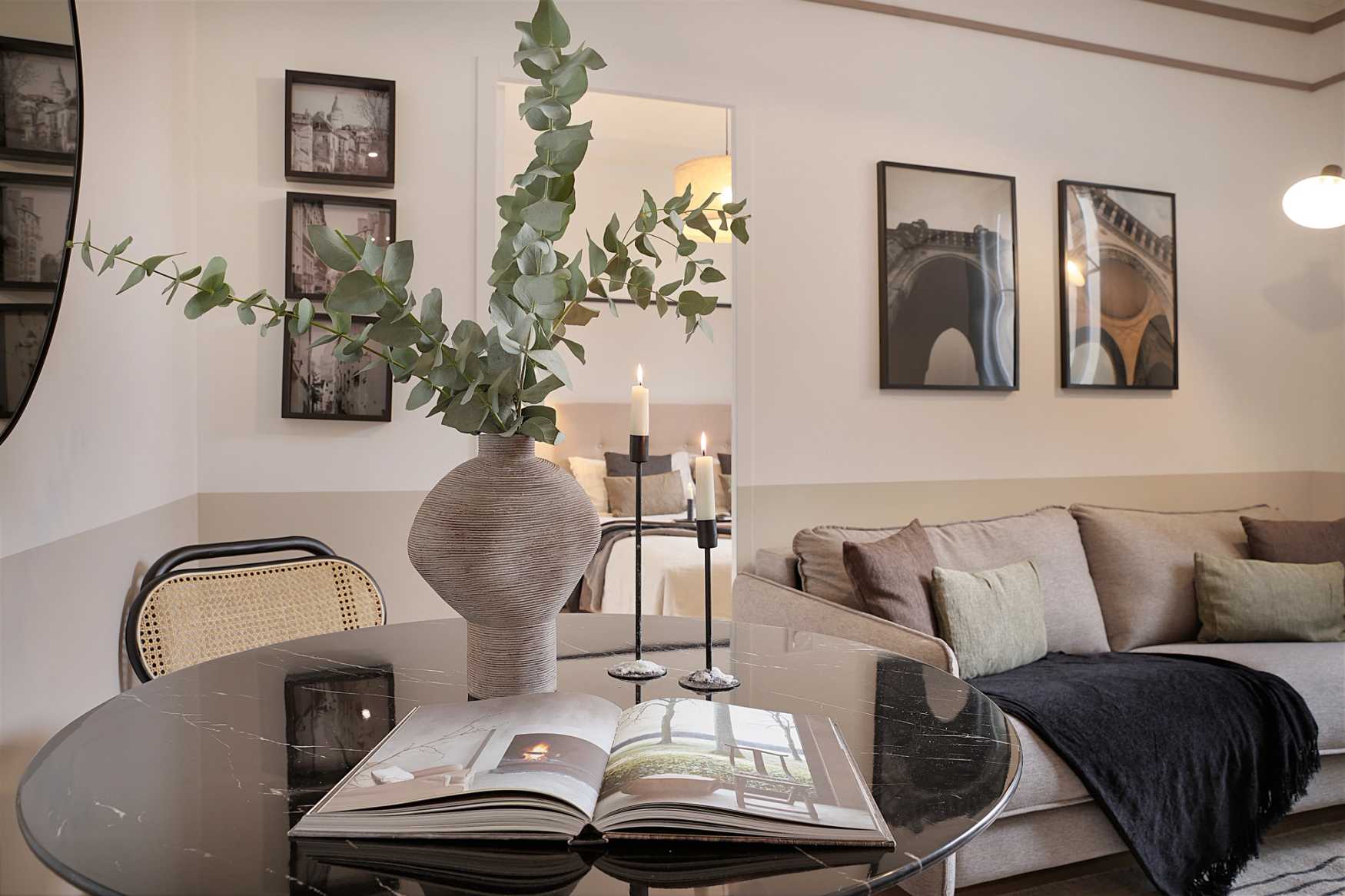 *Nuestro equipo de diseño interno selecciona de forma experta todos los muebles y la decoración de los apartamentos para garantizar el máximo nivel de calidad y comodidad. Como parte del mantenimiento constante de la casa, las mejoras de diseño y la puesta en escena fotográfica, puede haber pequeñas diferencias entre el mobiliario que se ve en las fotos y el que encontrará en el apartamento. Consulte con un agente de ventas para cualquier pregunta o duda.