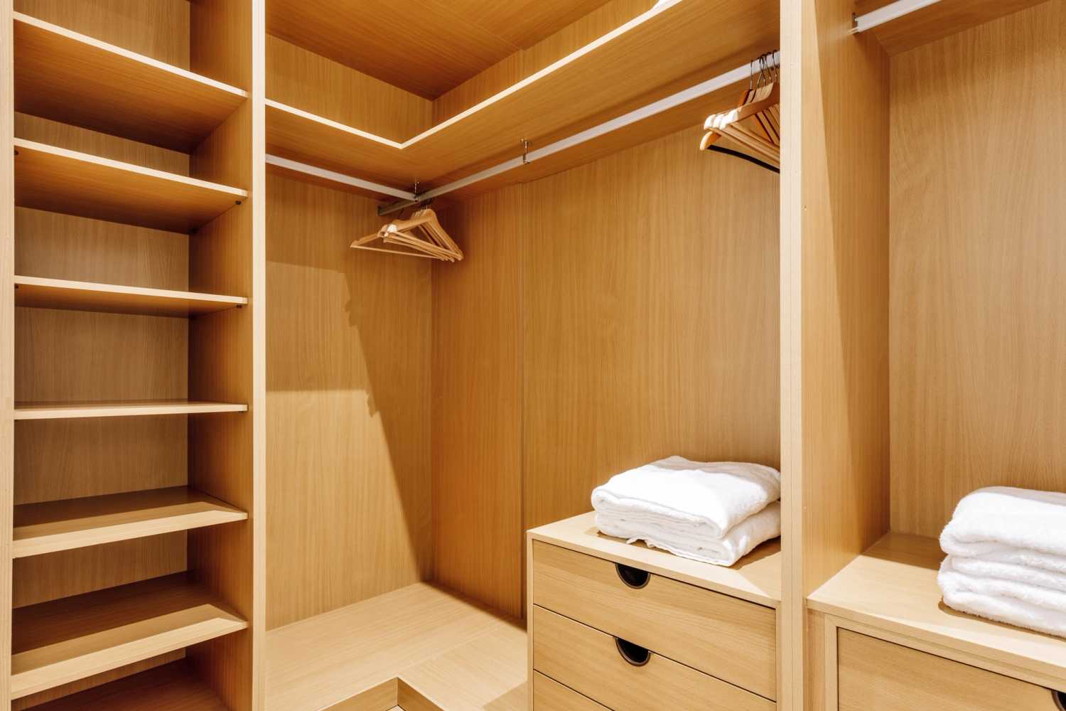 El salón dispone, además de zona de estar, de una mesa de comedor circular en el vértice del mismo. Superado el salón encontrará el primer dormitorio, que incluye cama de matrimonio, espacio de almacenamiento y zona de trabajo dedicada con acabados en negro, logrando así un toque moderno. El segundo dormitorio, caracterizado por los detalles geométricos en madera de la pared cabecera, ofrece asimismo cama de matrimonio y una mesa producida a medida, incluyendo, además, un vestidor cerrado y cuarto de baño tipo "en suite" equipado con bañera con ducha.