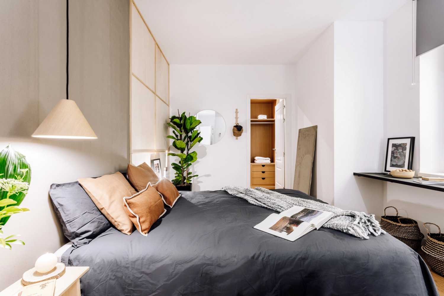 Naka juega con tejidos ligeros y una decoración minimalista, resaltando así la inspiración japonesa del diseño. Con un área de 120 metros cuadrados y ubicado en el madrileño barrio de Salamanca, ofrece dos dormitorios y dos cuartos de baño. Al ingresar en el apartamento le da la bienvenida un recibidor, equipado con un armario muy funcional, que le dirige a mano derecha a la cocina. Ésta, integralmente amueblada y equipada, incluye también una zona para sentarse.