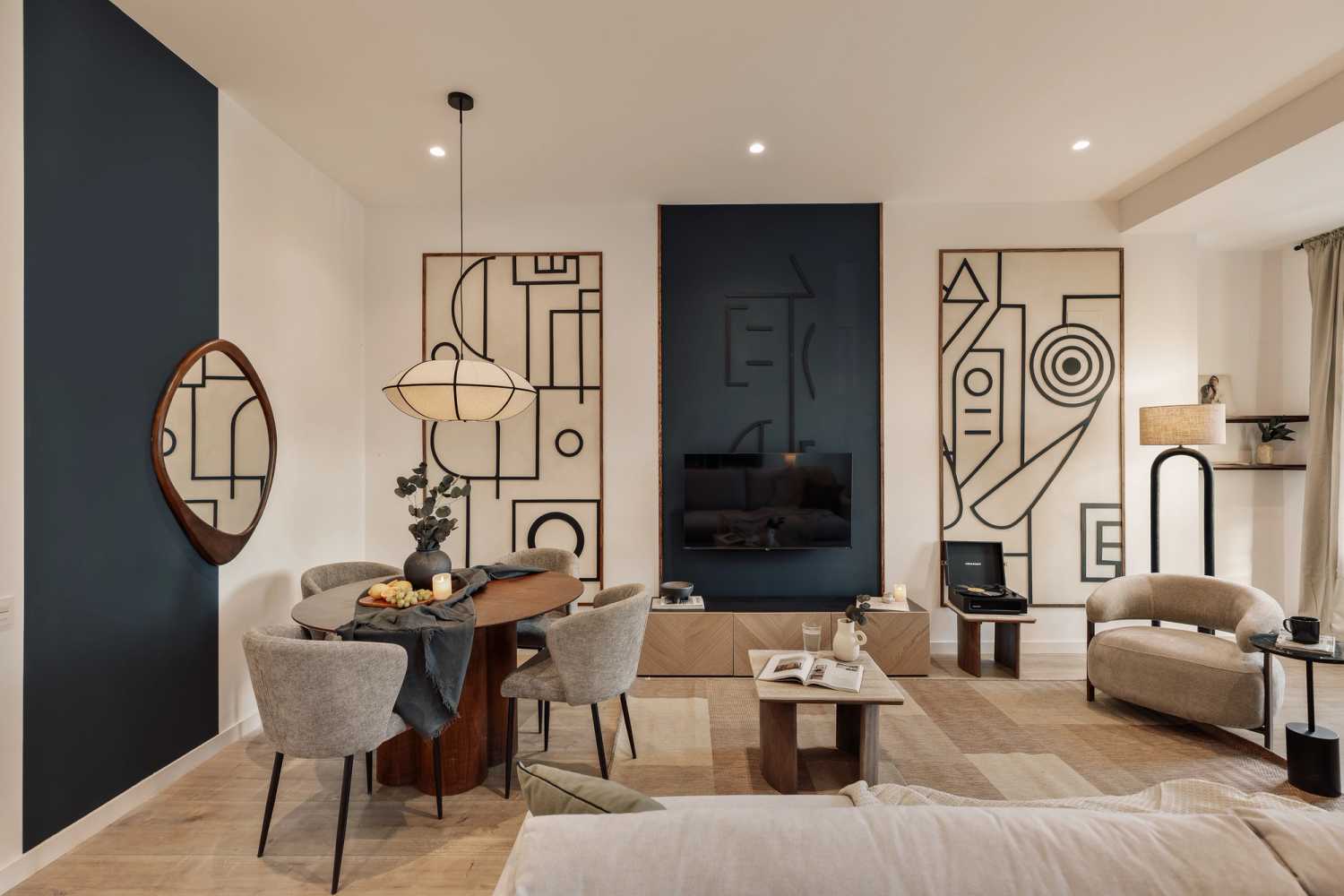 *Our in-house design team expertly selects all apartment furniture and decor to ensure the highest level of quality and comfort. As part of consistent home upkeep, design improvements, and photo staging, there may be minor differences in furnishings seen in the photos and what you find in the apartment. Inquire with a sales agent for any questions or doubts.