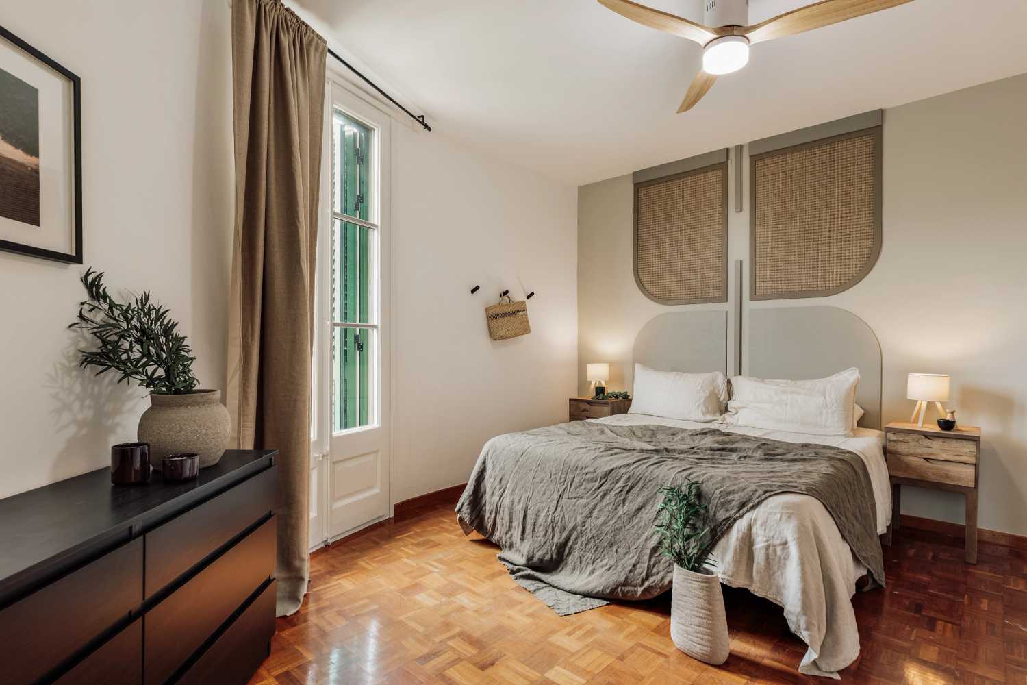 Spectacular apartment in Gran Via de les Corts Catalanes street, with 3 bedrooms and 2 bathrooms. The kitchen is equipped with appliances and kitchenware. The beds are equipped with soft bedding, ideal for a good night's rest. The apartment has 2 bathrooms equipped with a full shower and towels. In addition, the apartment is equipped with high-speed WiFi and SmartTV.