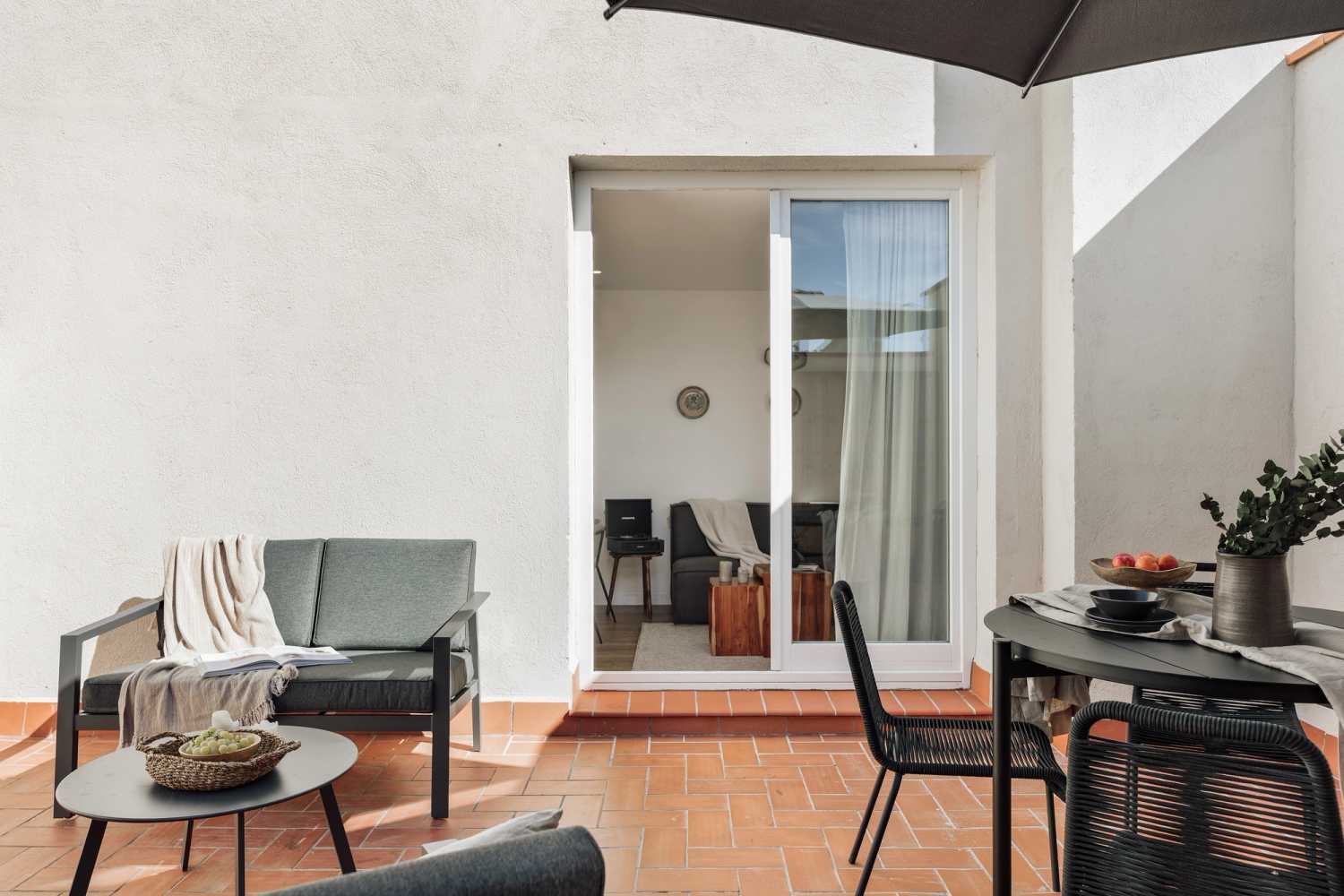 The open-plan living room and kitchen area is the heart of the apartment, exuding a warm and welcoming atmosphere. The sitting area invites you to unwind and relax, while the entertainment system offers hours of enjoyment and relaxation. From the living room, step out onto the charming terrace, where you'll find an outdoor dining table and a comfortable lounging area. It's the perfect spot to savor your morning coffee, indulge in a delicious meal, or simply bask in the Mediterranean sun.