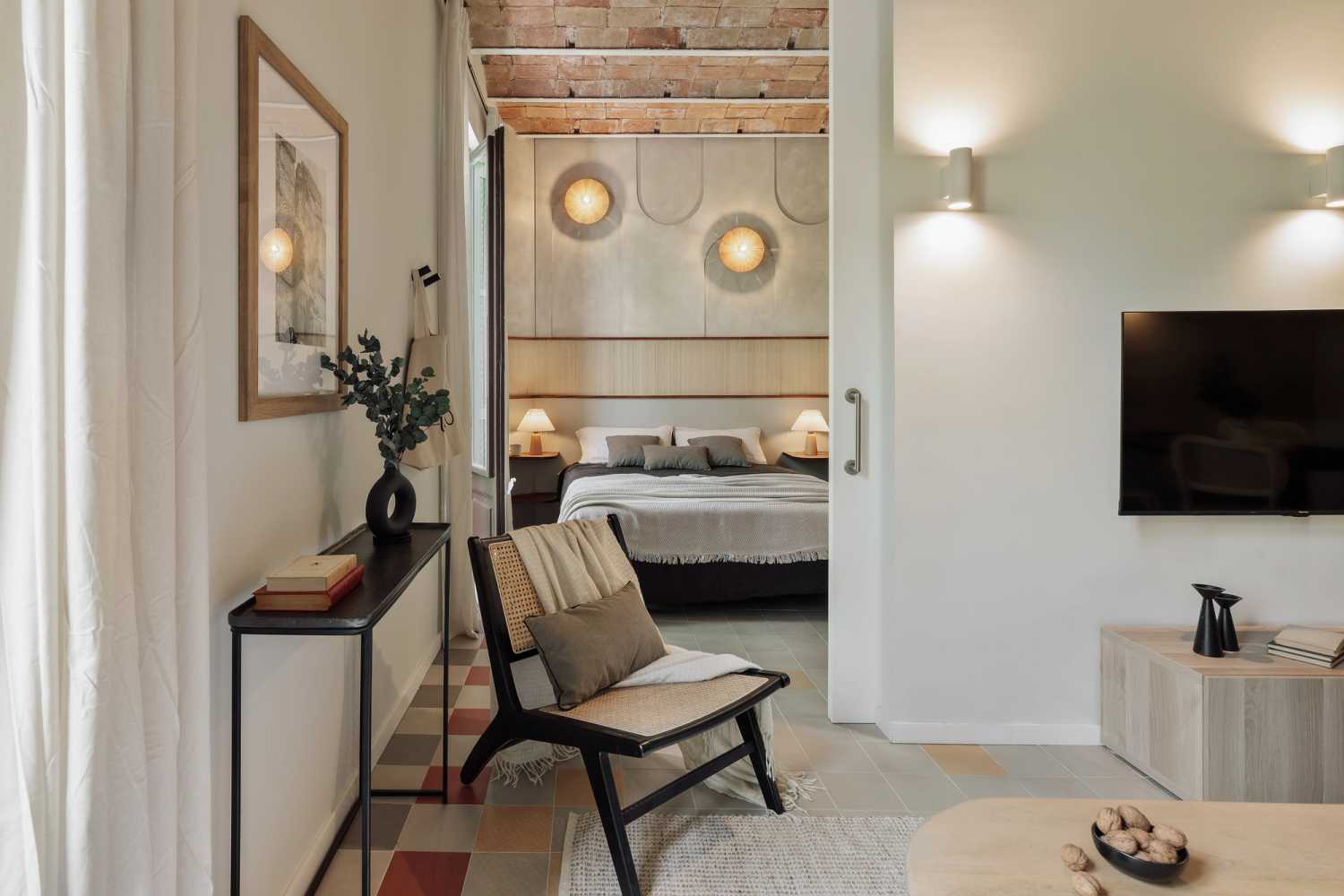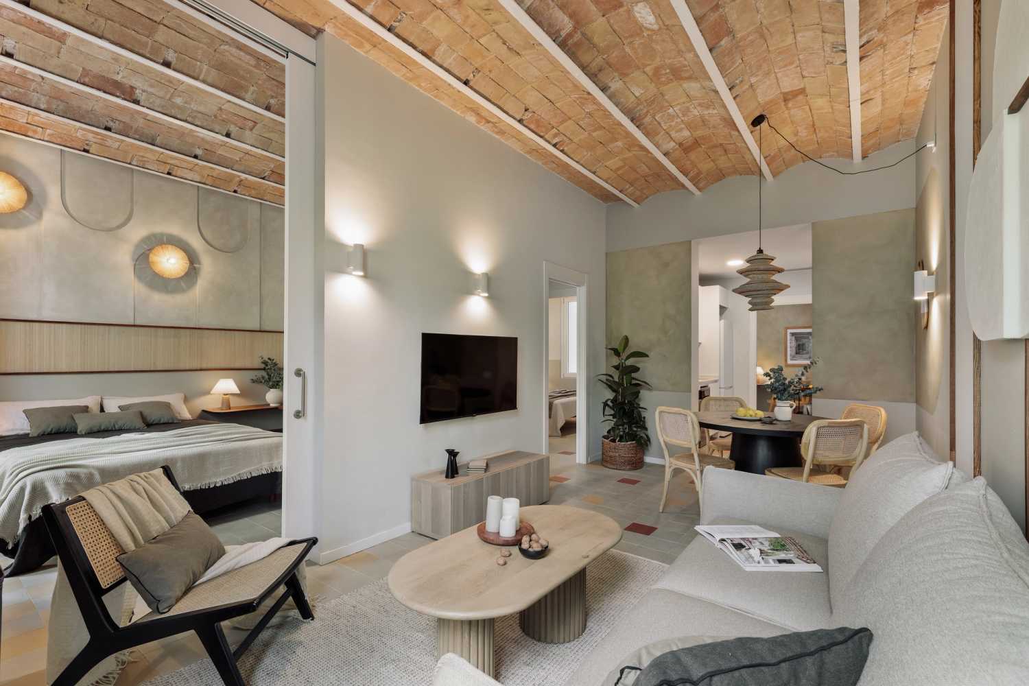Spectacular apartment in Ronda Sant Pere street, with 2 bedrooms, an office and 2 bathrooms. The kitchen is equipped with state-of-the-art appliances and kitchenware. The beds are equipped with soft bedding, ideal for a good night's rest. The apartment has 2 bathrooms equipped with a full shower and towels. In addition, the apartment is equipped with high-speed WiFi and SmartTV. The apartment has a washing machine, dishwasher and air conditioning for your maximum comfort.