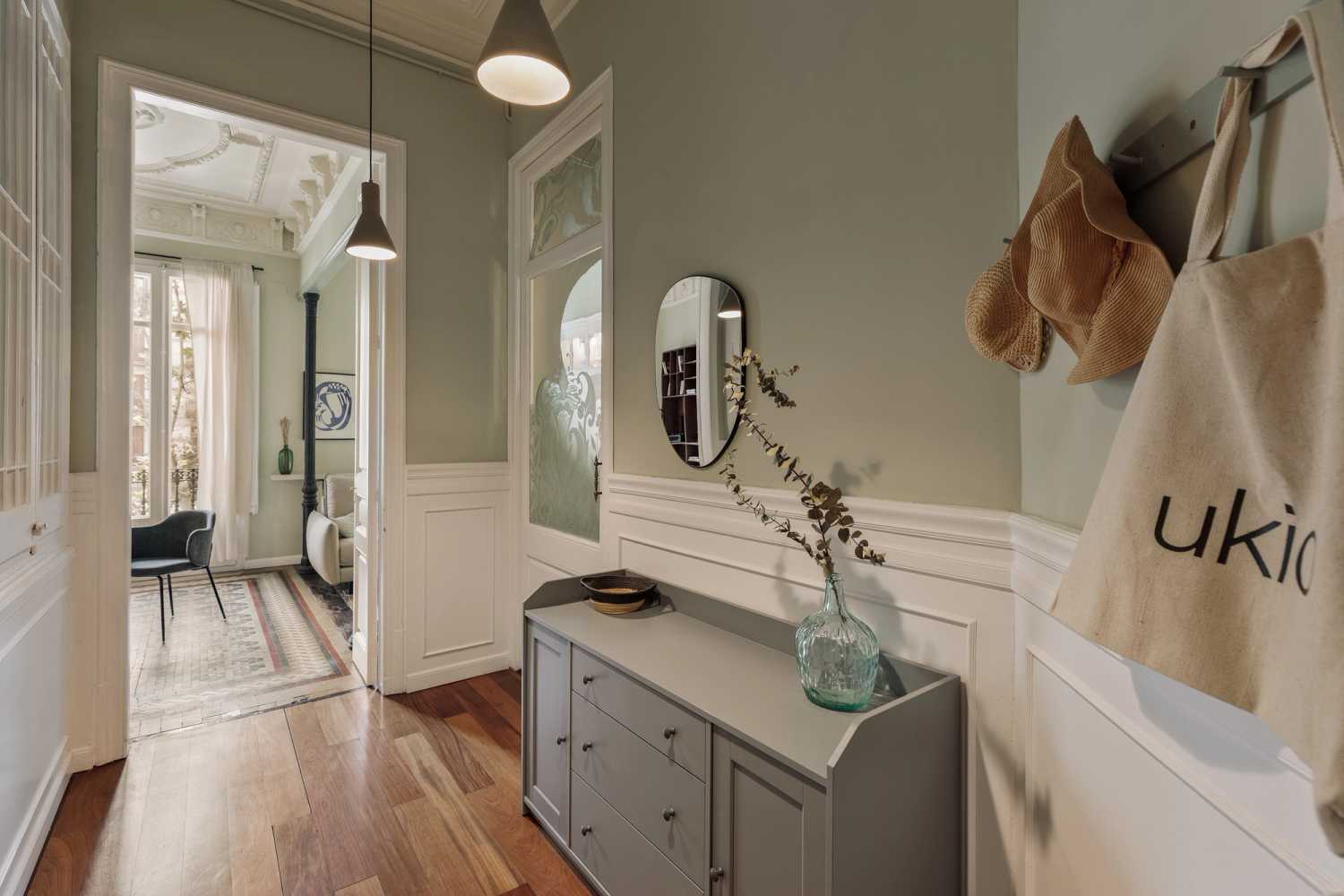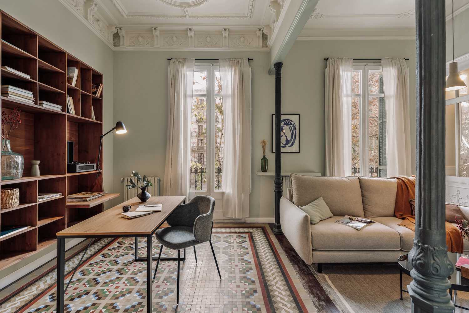Don't waste a moment of your time in Barcelona! Abisko, a two-bedroom furnished apartment, is the ideal home for you to move into and start living. Located in the Eixample Esquerra neighborhood, this rental home is in a recently refurbished building, fitted with modern and quality finishings. The apartment itself comes with a fully equipped kitchen, beddings and linens, and a work setup for maximum productivity.