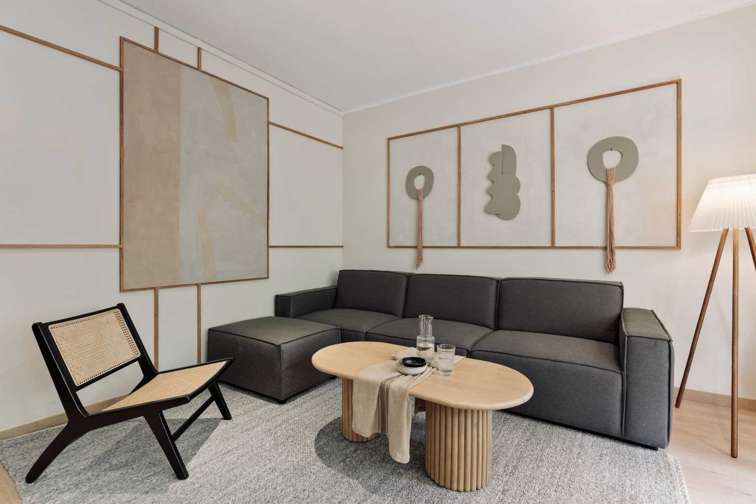 *Nuestro equipo de diseño interno selecciona de forma experta todos los muebles y la decoración de los apartamentos para garantizar el máximo nivel de calidad y comodidad. Como parte del mantenimiento constante de la casa, las mejoras de diseño y la puesta en escena fotográfica, puede haber pequeñas diferencias entre el mobiliario que se ve en las fotos y el que encontrará en el apartamento. Consulte con un agente de ventas para cualquier pregunta o duda.