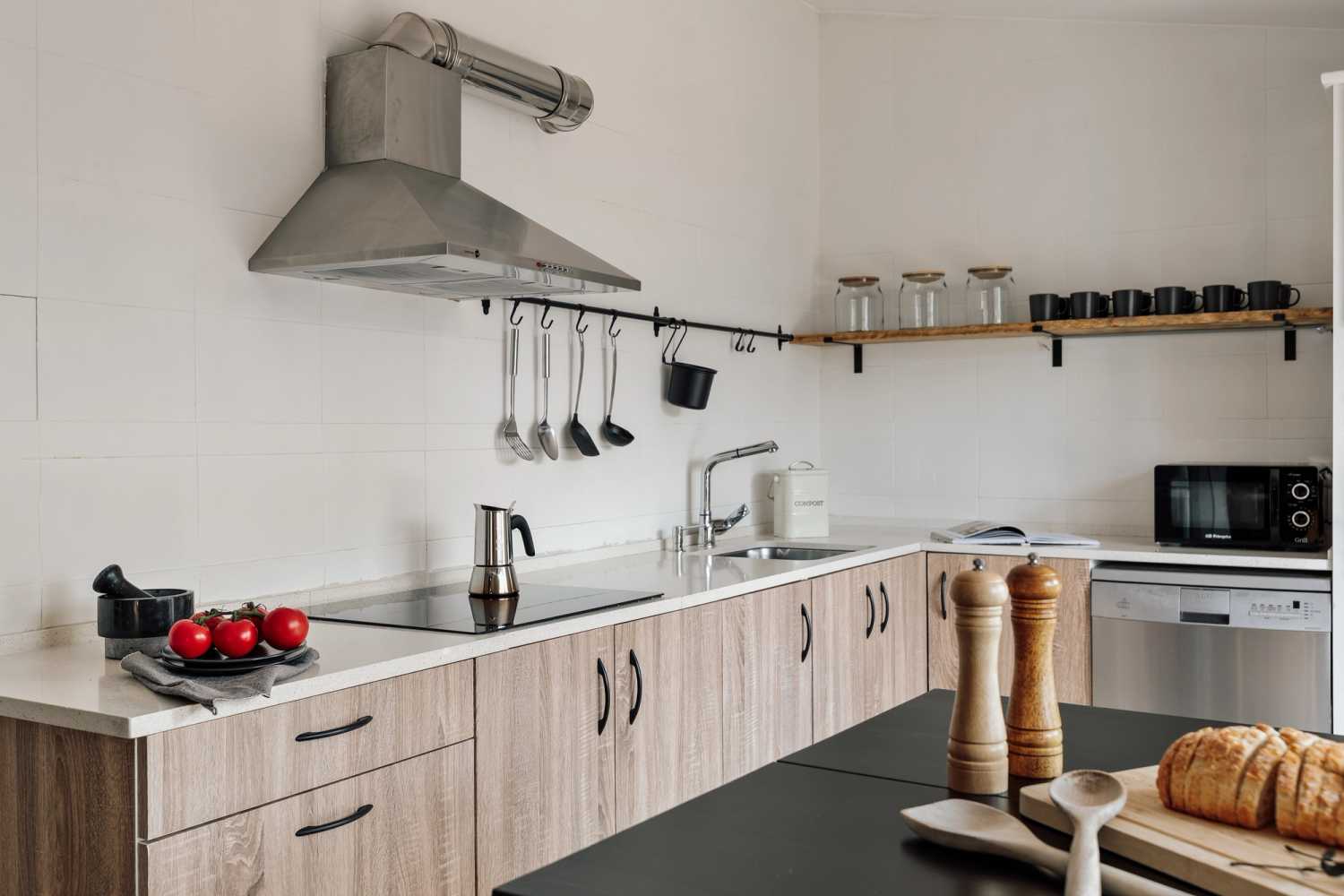 La cocina es luminosa y espaciosa, con armarios con acabados en madera. El espacio, integralmente equipado con todos los utensilios de cocina, ofrece una gran pizarra única para anotar recetas, listas de la compra y recordatorios. El dormitorio principal incluye cuarto de baño tipo "en suite" con bañera completa y, sobre la cama de matrimonio, destaca una pieza de decoración producida a mano. El segundo dormitorio ofrece cama doble y amplio espacio de almacenamiento oculto tras una cortina. Finalmente, el apartamento lo termina de configurar el segundo cuarto de baño, equipado con ducha.