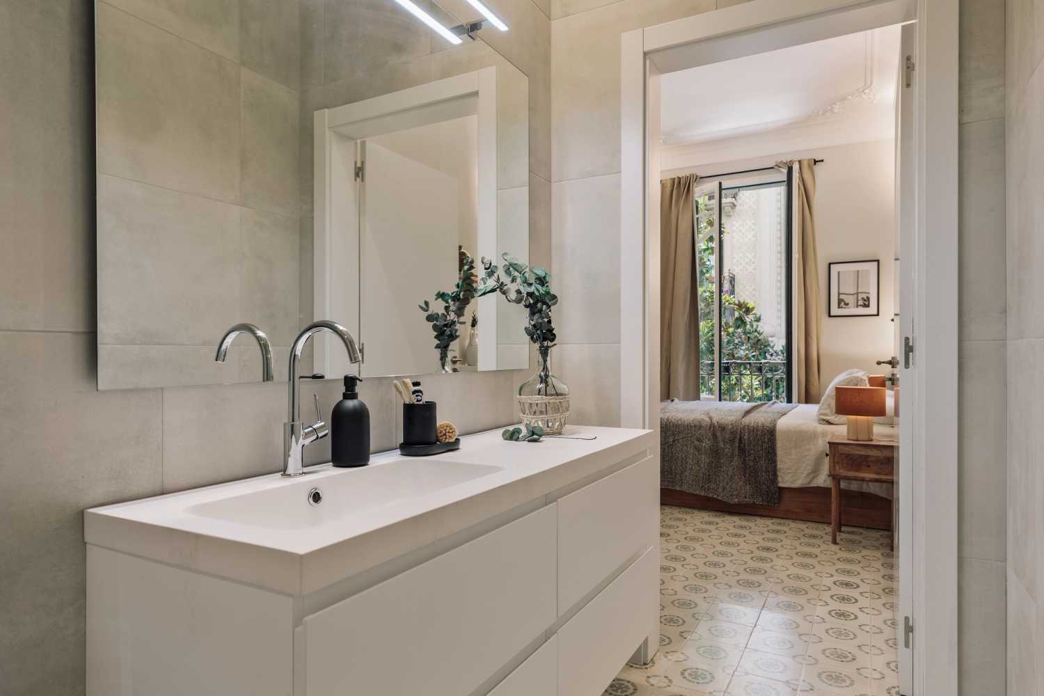 Espectacular apartamento en la calle Gran de Gràcia , con 2 dormitorios y 2 baños. La cocina está equipada con electrodomésticos y menaje de última generación. Las camas están equipadas con ropa de cama suave, ideal para un buen descanso nocturno. El apartamento dispone de 2 baños equipados con ducha completa y toallas. Además, el apartamento está equipado con WiFi de alta velocidad y SmartTV.
