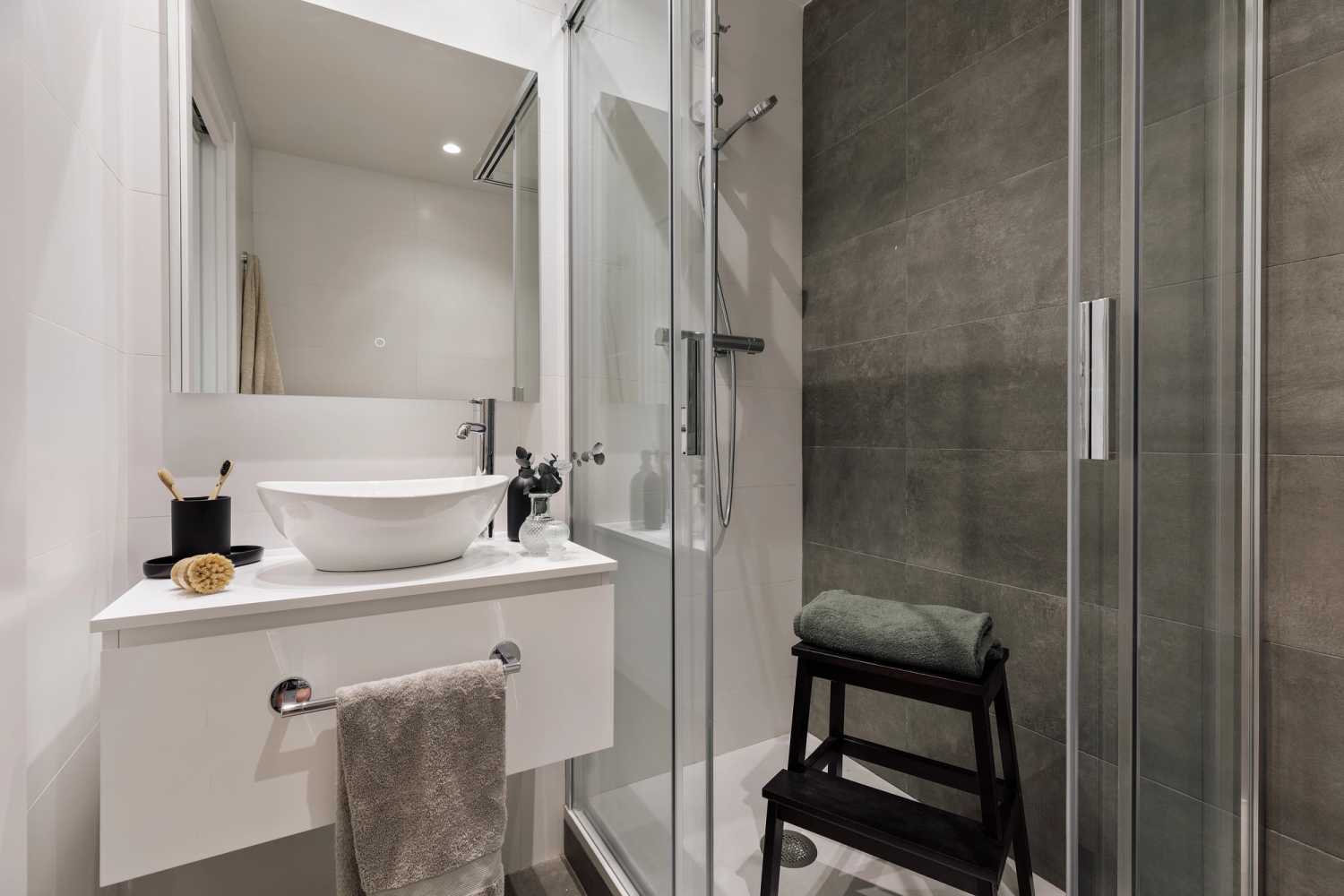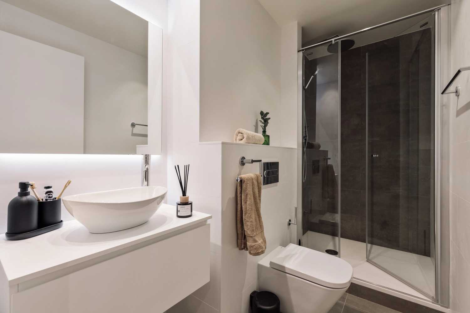 *Nuestro equipo de diseño interno selecciona de forma experta todos los muebles y la decoración de los apartamentos para garantizar el máximo nivel de calidad y comodidad. Como parte del mantenimiento constante de la casa, las mejoras de diseño y la puesta en escena fotográfica, puede haber pequeñas diferencias entre el mobiliario que se ve en las fotos y el que encontrará en el apartamento. Consulte con un agente de ventas para cualquier pregunta o duda.