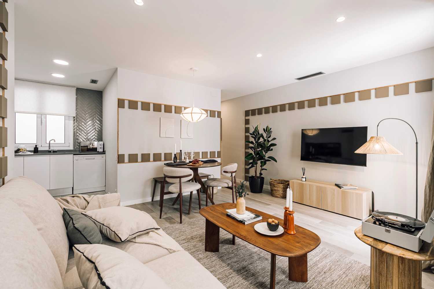 *Nuestro equipo de diseño interno selecciona de forma experta todos los muebles y la decoración de los apartamentos para garantizar el máximo nivel de calidad y comodidad. Como parte del mantenimiento constante de la casa, las mejoras de diseño y la puesta en escena fotográfica, puede haber pequeñas diferencias entre el mobiliario que se ve en las fotos y el que encontrará en el apartamento. Consulte con un agente de ventas para cualquier pregunta o duda.