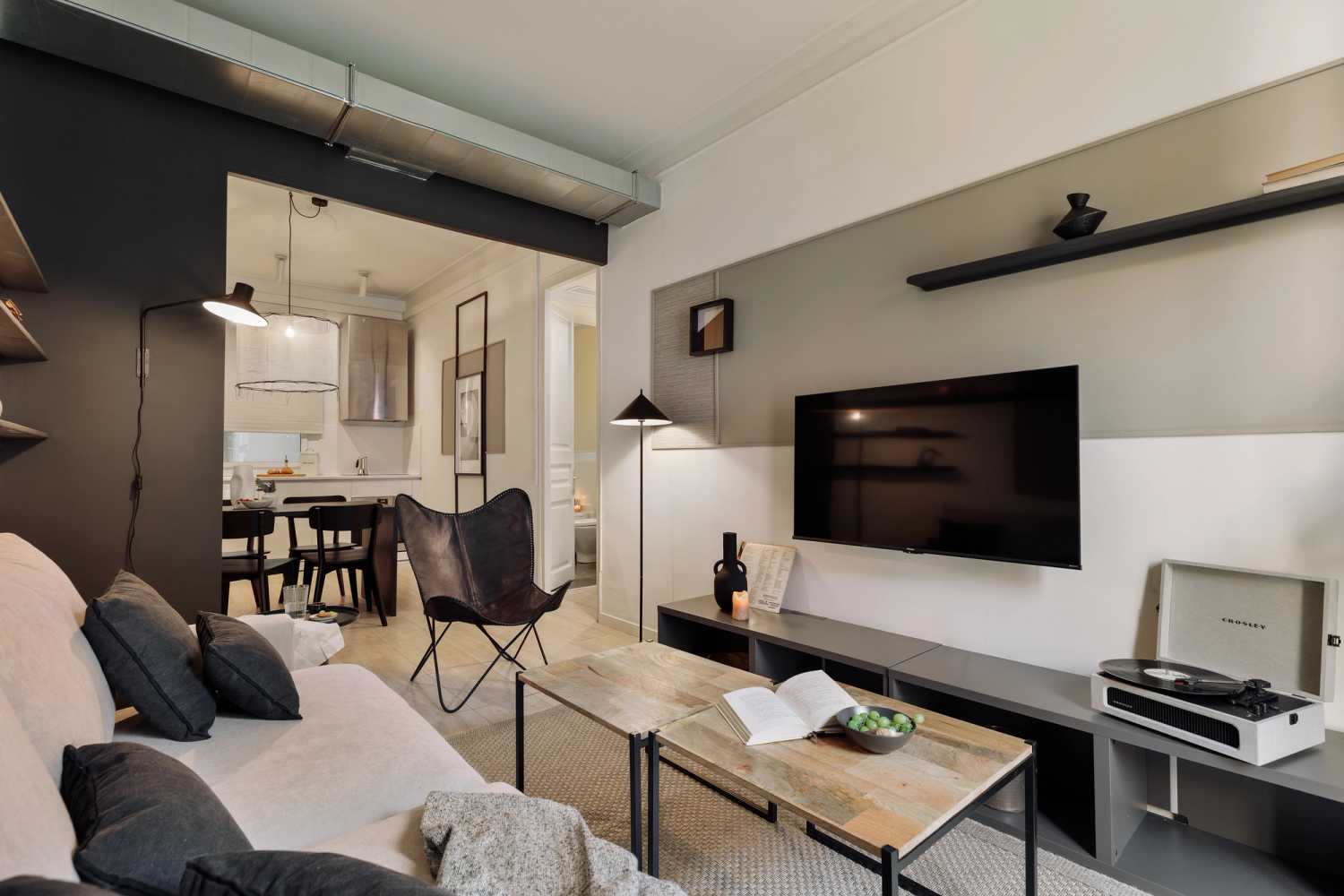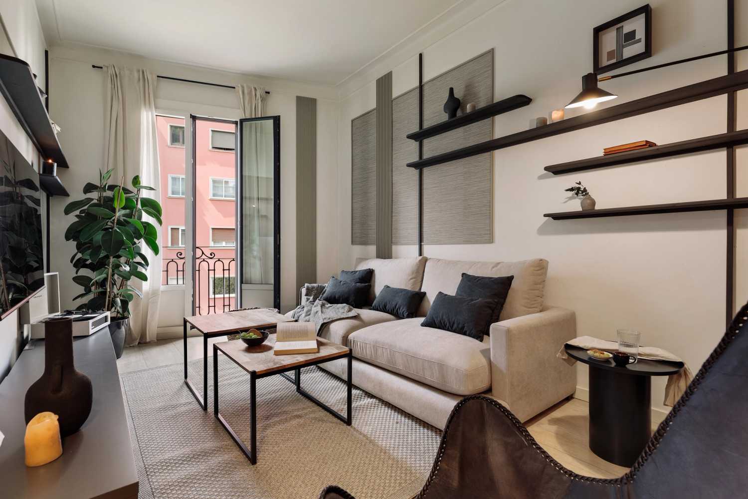 Spectacular apartment in Muntaner street, with 2 bedrooms, and 1 bathroom. The kitchen is equipped with state-of-the-art appliances and kitchenware. The beds are equipped with soft bedding, ideal for a good night's rest. The apartment has 1 bathroom equipped with a full shower and towels. In addition, the apartment is equipped with high-speed WiFi and SmartTV.
