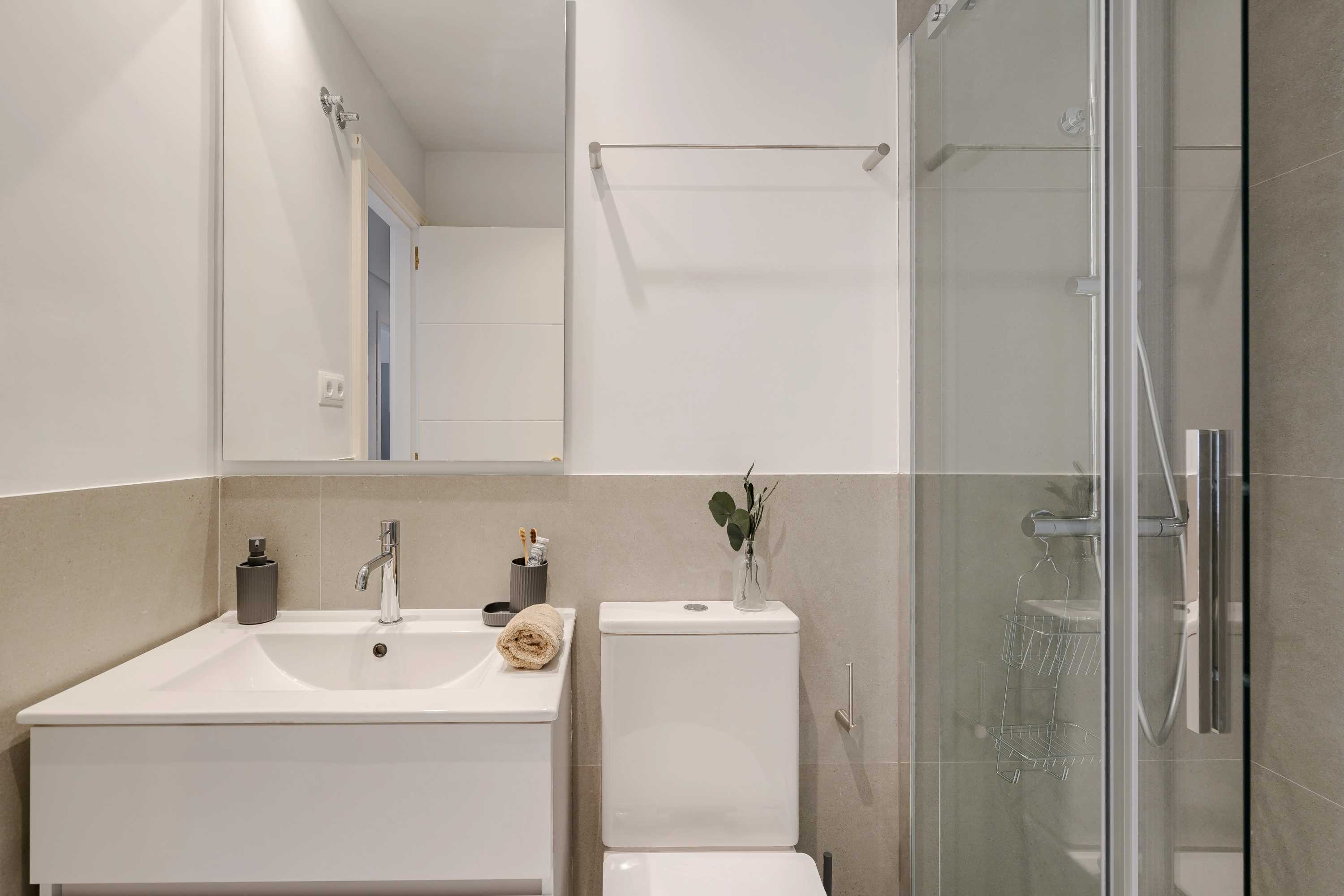 Spectacular apartment in Farmacia street, with 2 bedrooms and 2 bathrooms. The kitchen is equipped with appliances and kitchenware. The beds are equipped with soft bedding, ideal for a good night's rest. The apartment has 2 bathrooms equipped with a full shower and towels. In addition, the apartment is equipped with high-speed WiFi and SmartTV.