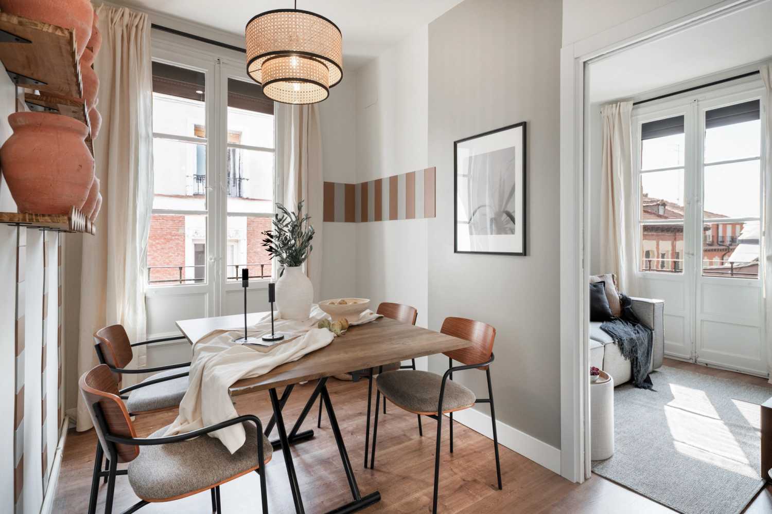The neighborhood is well-connected by public transportation, with Tribunal and Noviciado metro stations nearby. For those searching for rental apartments in Madrid, the area offers amenities such as the Fit Club gym, the cozy Toma Café, and the Utopicus co-working space.