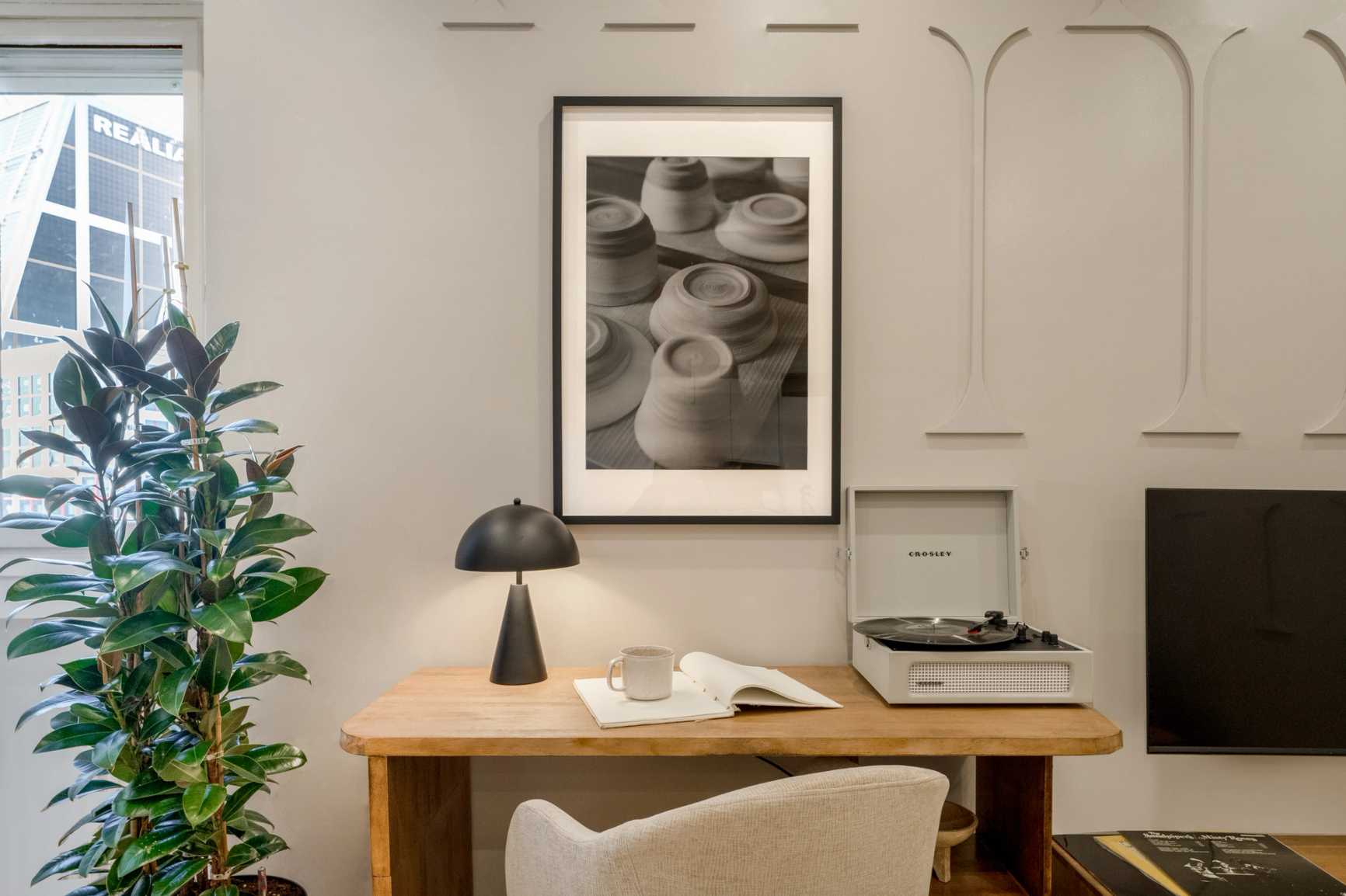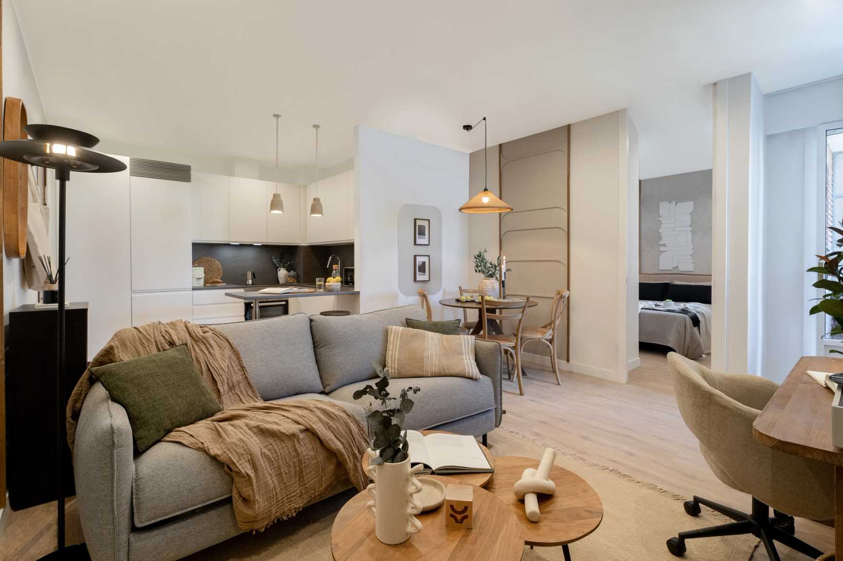 *Nuestro equipo de diseño interno selecciona de forma experta todos los muebles y la decoración de los apartamentos para garantizar el máximo nivel de calidad y comodidad. Como parte del mantenimiento constante de la casa, las mejoras de diseño y la puesta en escena fotográfica, puede haber pequeñas diferencias entre el mobiliario que se ve en las fotos y el que encontrará en el apartamento. Consulte con un agente de ventas para cualquier pregunta o duda.