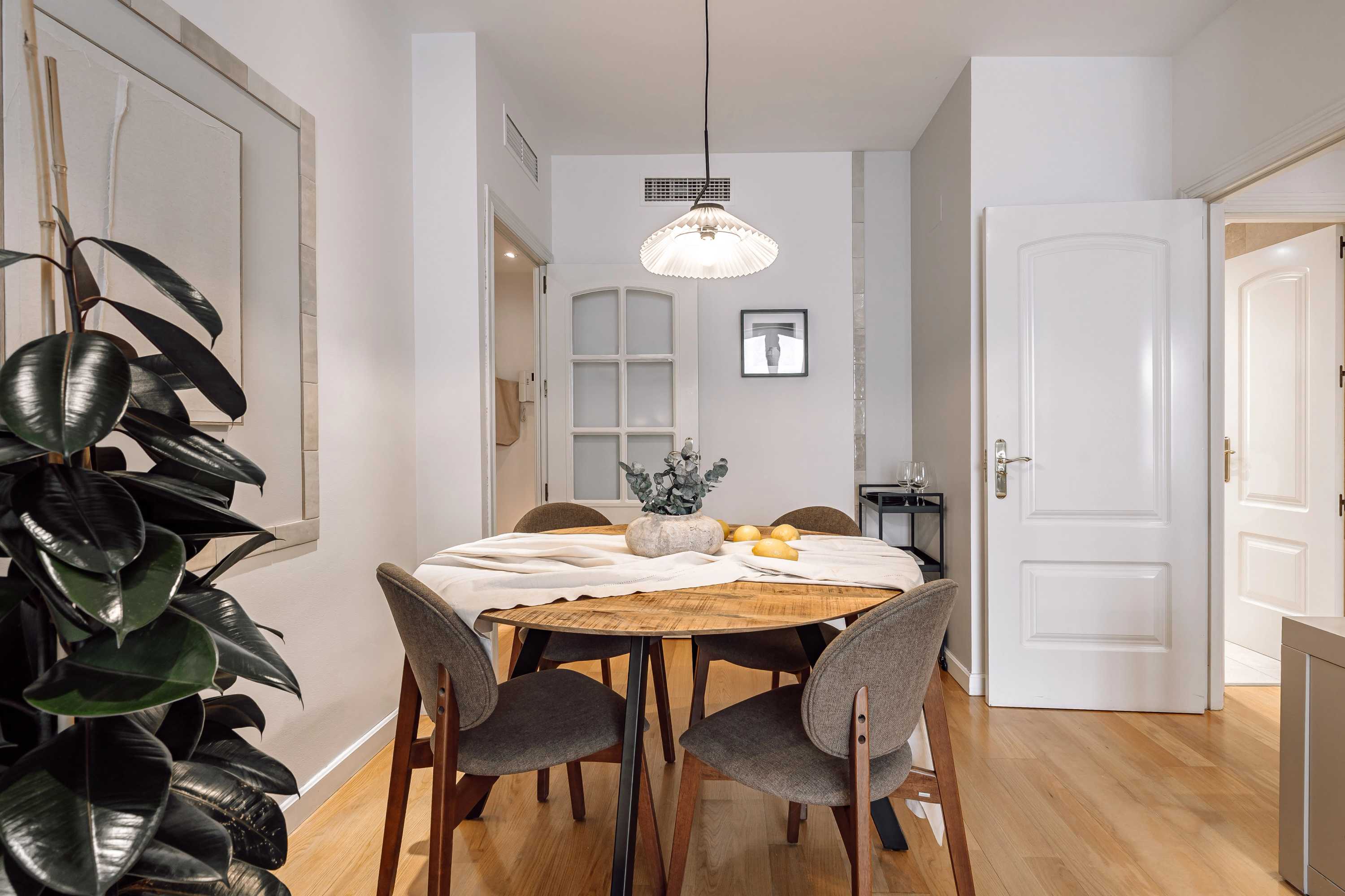 Almagro is an elegant part of Chamberí, known for its stately buildings and embassies that offer a sophisticated and residential atmosphere. Through its grand architecture and serene, upscale vibe, it serves as the ideal place for those seeking furnished rentals in Madrid.