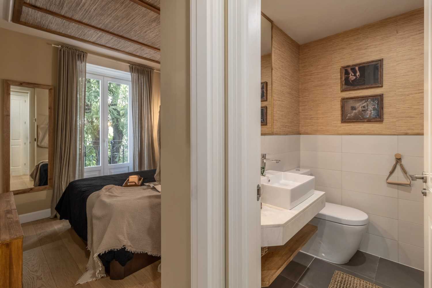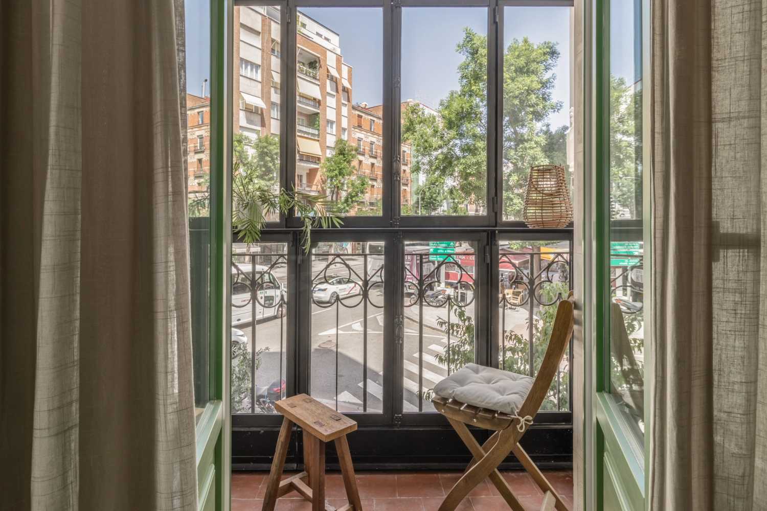 Con cuatro balcones, Ora es un apartamento luminoso y con encanto, ubicado en el barrio madrileño de Almagro. En una superficie de 70 metros cuadrados, incluye un dormitorio y un cuarto de baño, y su diseño se caracteriza por piezas en madera y formas geométricas.