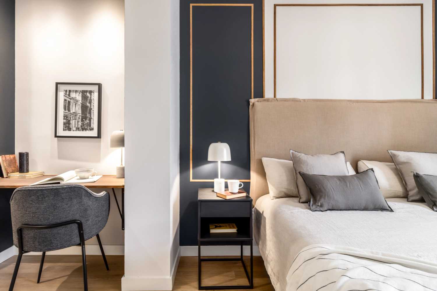 *Nuestro equipo de diseño interno selecciona de forma experta todos los muebles y la decoración de los apartamentos para garantizar el máximo nivel de calidad y comodidad. Como parte del mantenimiento constante de la casa, las mejoras de diseño y la puesta en escena fotográfica, puede haber pequeñas diferencias entre el mobiliario que se ve en las fotos y el que encontrará en el apartamento. Consulte con un agente de ventas para cualquier pregunta o duda.