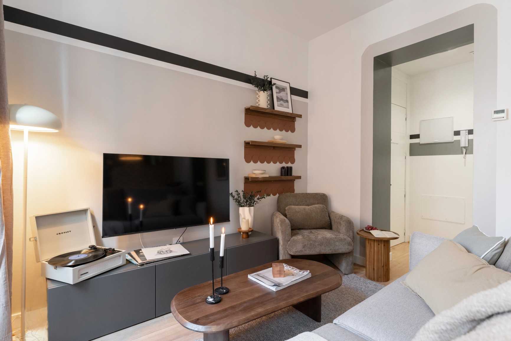 *Nuestro equipo de diseño interno selecciona de forma experta todos los muebles y la decoración de los apartamentos para garantizar el máximo nivel de calidad y comodidad. Como parte del mantenimiento constante de la casa, las mejoras de diseño y la puesta en escena fotográfica, puede haber pequeñas diferencias entre el mobiliario que se ve en las fotos y el que encontrará en el apartamento. Consulte con un agente de ventas para cualquier pregunta o duda.