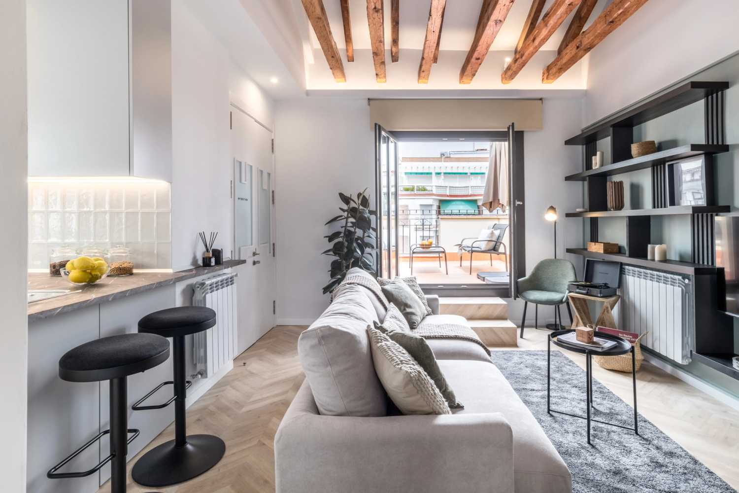 The neighborhood is well-served by public transportation, with the Iglesia and Bilbao metro stations nearby. For amenities, you can visit the Metropolitan Gym, enjoy a coffee at Toma Café, or work from the coworking space Impact Hub.