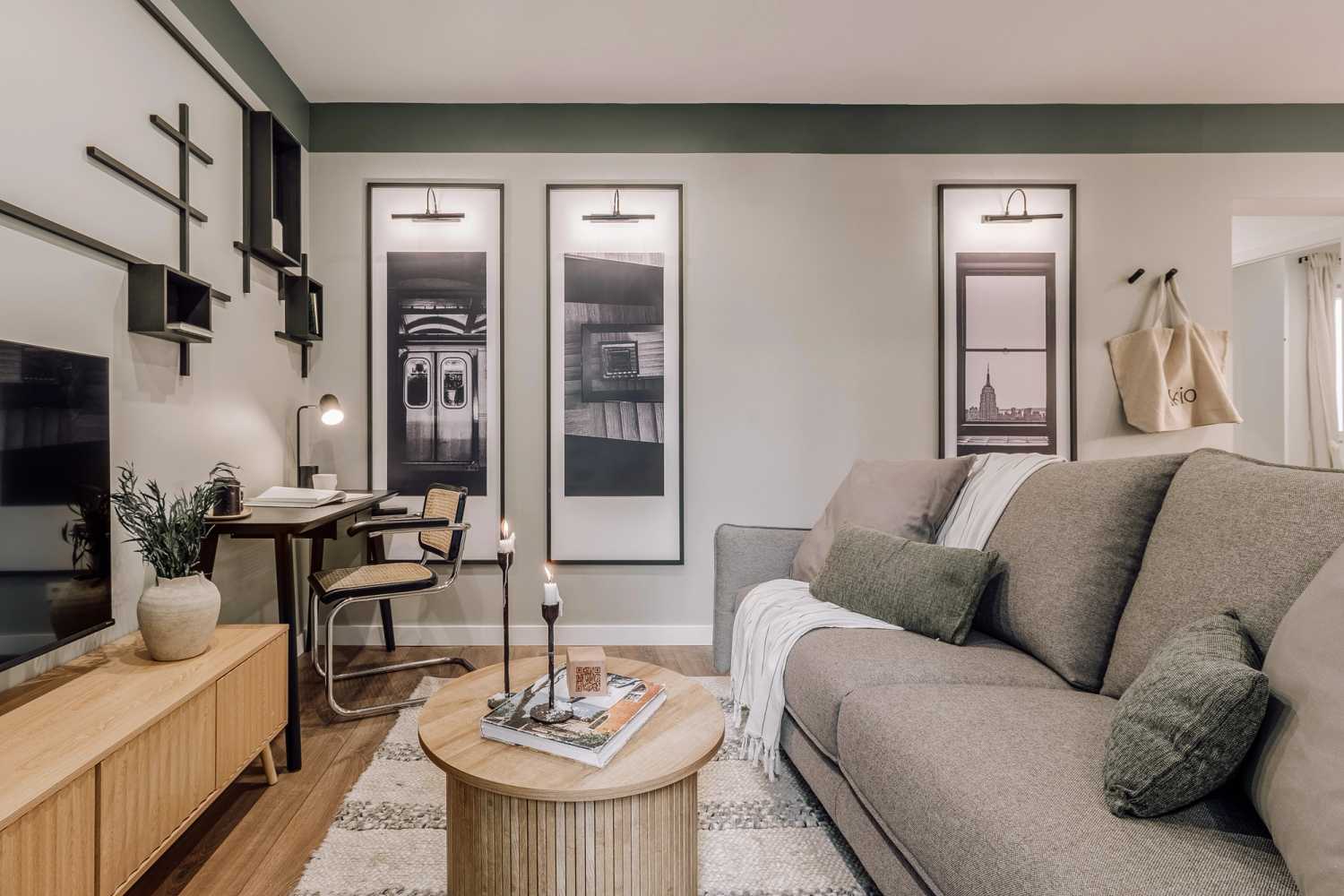 *Nuestro equipo de diseño interno selecciona de forma experta todos los muebles y la decoración de los apartamentos para garantizar el máximo nivel de calidad y comodidad. Como parte del mantenimiento constante de la casa, las mejoras de diseño y la puesta en escena fotográfica, puede haber pequeñas diferencias entre el mobiliario que se ve en las fotos y el que encontrará en el apartamento. Consulte con un agente de ventas para cualquier pregunta o duda.