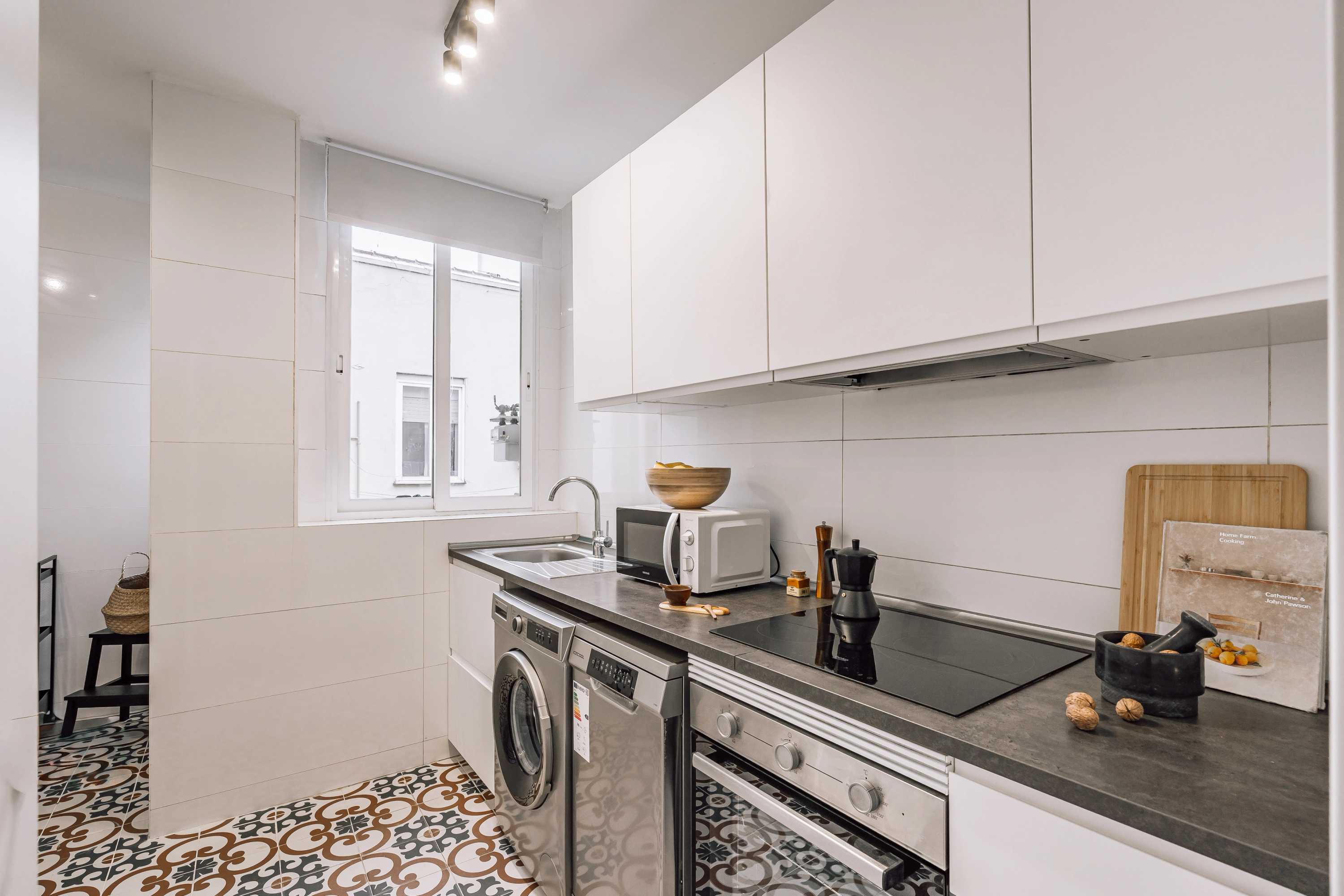 Spectacular apartment in Paseo de la Florida street, with 3 bedrooms and 1 bathroom. The kitchen is equipped with appliances and kitchenware. The beds are equipped with soft bedding, ideal for a good night's rest. The apartment has 1 bathroom equipped with a full shower and towels. The apartment has a terrace of 5 m2. In addition, the apartment is equipped with high-speed WiFi and SmartTV. The apartment has a washing machine, a dishwasher, and air conditioning for your maximum comfort.