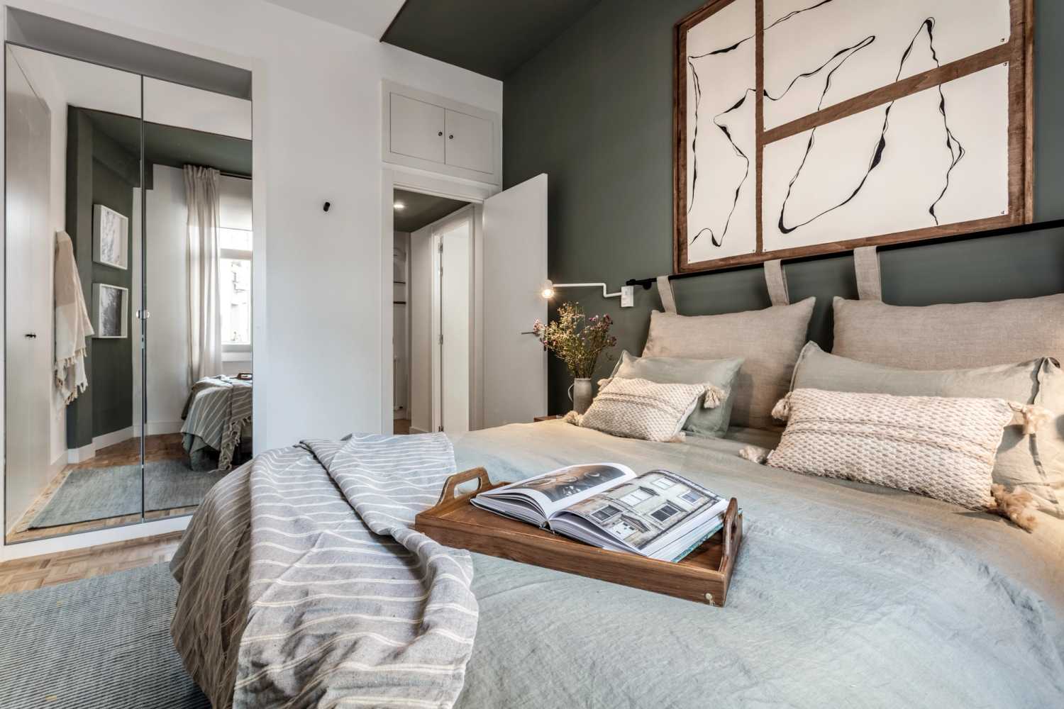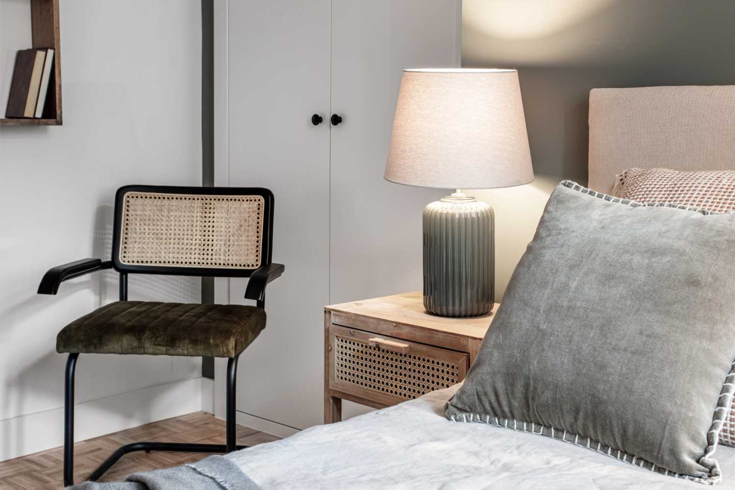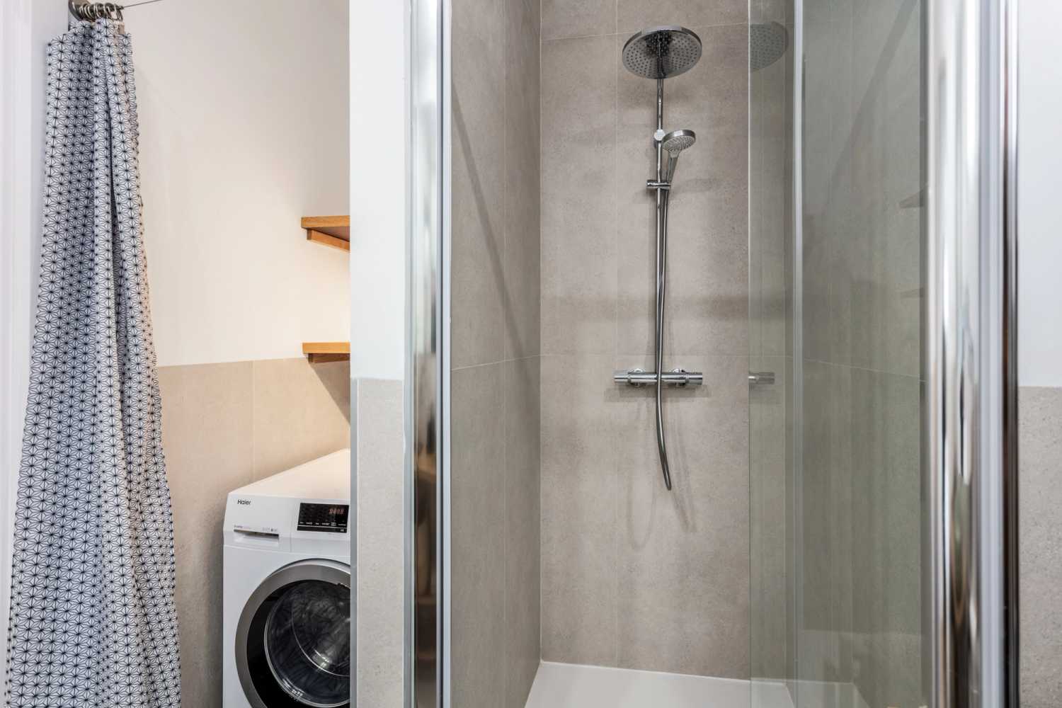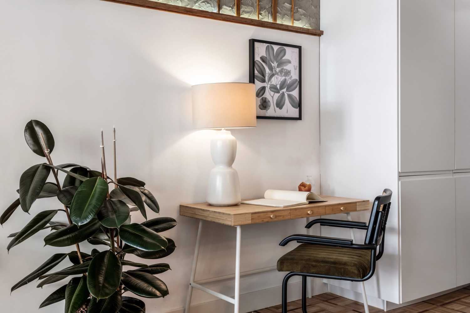 The open plan living, dining, and kitchen space is filled with plants and wooden accents to liven up the apartment. Sunlight streams into the space through the wide doors that lead out to the terrace, which offers the chance to take in spectacular views of Madrid. As with all our apartments, Alameda features a dedicated workstation in the living room that is already set up and ready to go. The kitchen is also fully equipped for your convenience.