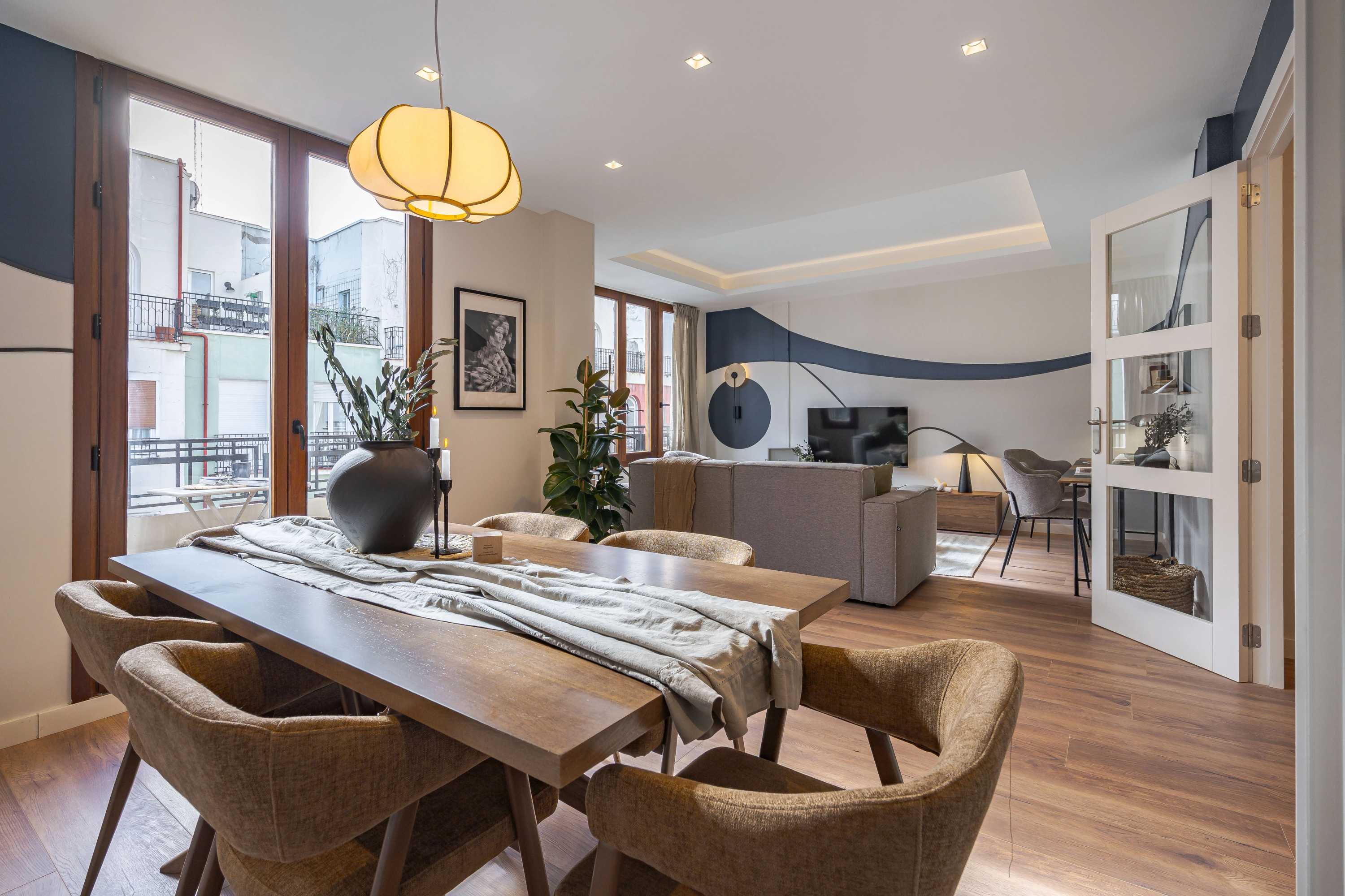 Spectacular apartment in JORGE JUAN street, with 3 bedrooms, a toilet and 2 bathrooms. The kitchen is equipped with appliances and kitchenware. The beds are equipped with soft bedding, ideal for a good night's rest. The apartment has 2 bathrooms equipped with a full shower and towels. In addition, the apartment is equipped with high-speed WiFi and a Smart TV.