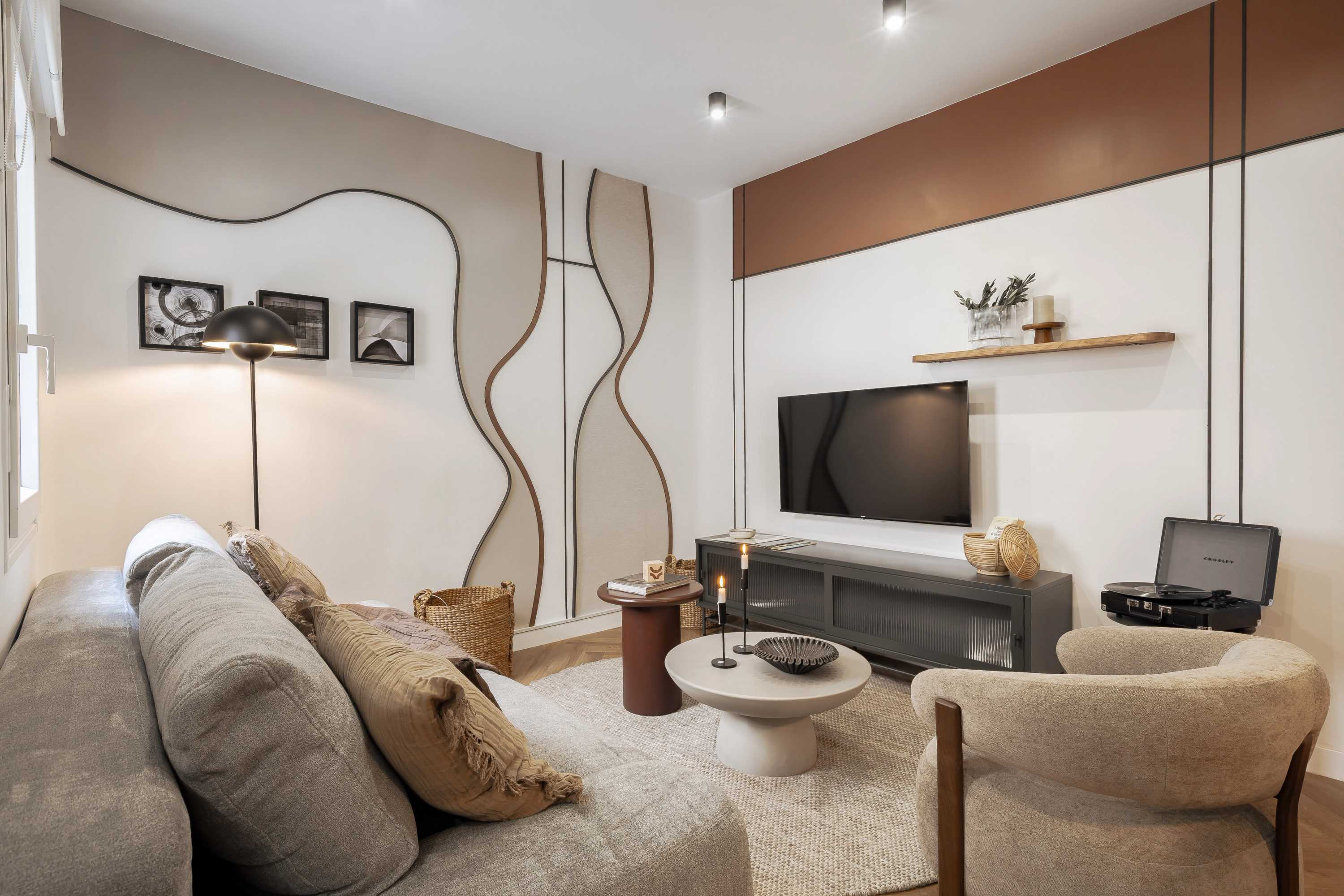 *Nuestro equipo de diseño interno selecciona de forma experta todos los muebles y la decoración de los apartamentos para garantizar el máximo nivel de cadad y comodidad. Como parte del mantenimiento constante de la casa, las mejoras de diseño y la puesta en escena fotográfica, puede haber pequeñas diferencias entre el mobiliario que se ve en las fotos y el que encontrará en el apartliamento. Consulte con un agente de ventas para cualquier pregunta o duda.