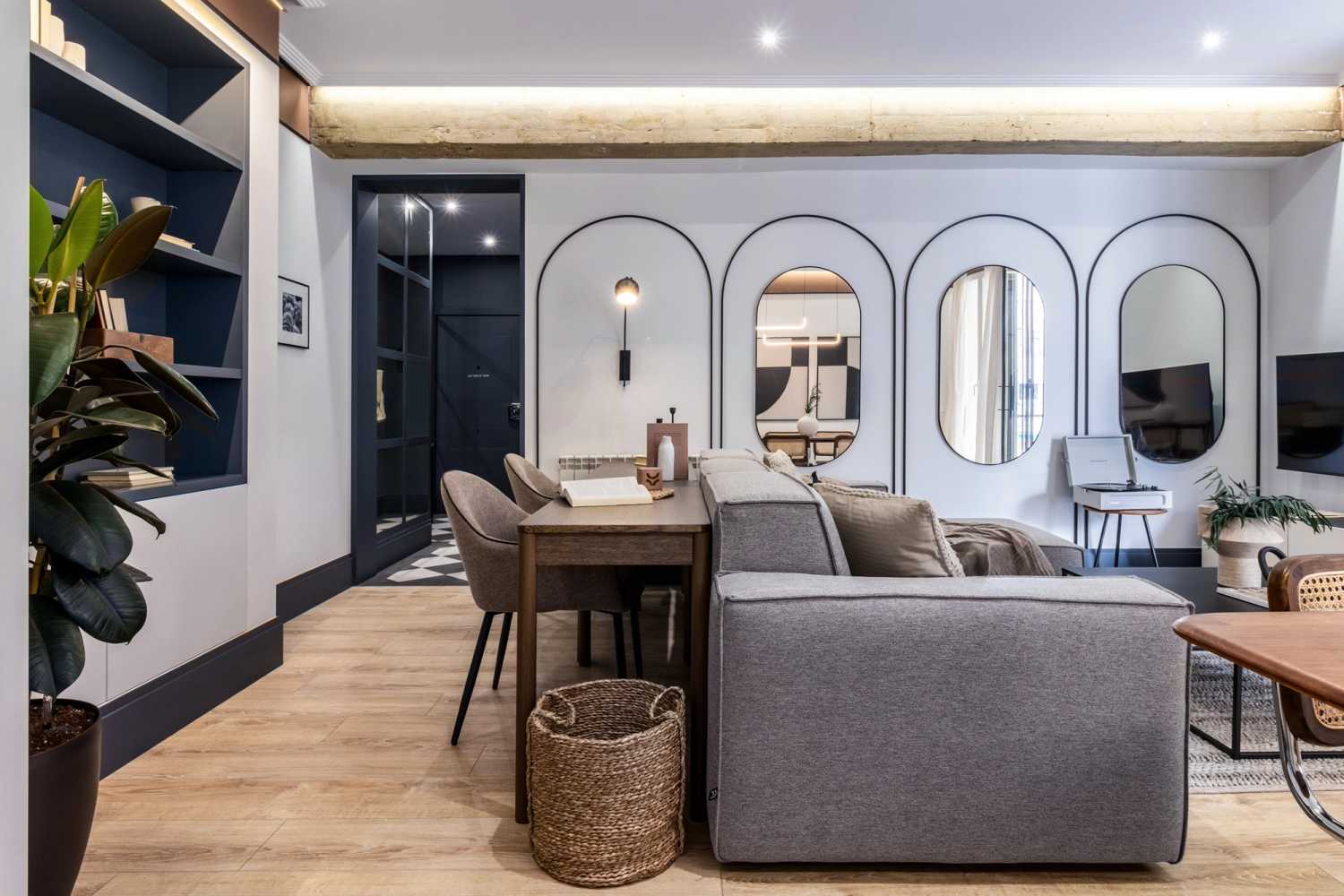 *Nuestro equipo de diseño interno selecciona de forma experta todos los muebles y la decoración de los apartamentos para garantizar el máximo nivel de calidad y comodidad. Como parte del mantenimiento constante de la casa, las mejoras de diseño y la puesta en escena fotográfica, puede haber pequeñas diferencias entre el mobiliario que se ve en las fotos y el que encontrará en el apartamento. Consulte con un agente de ventas para cualquier pregunta o duda.