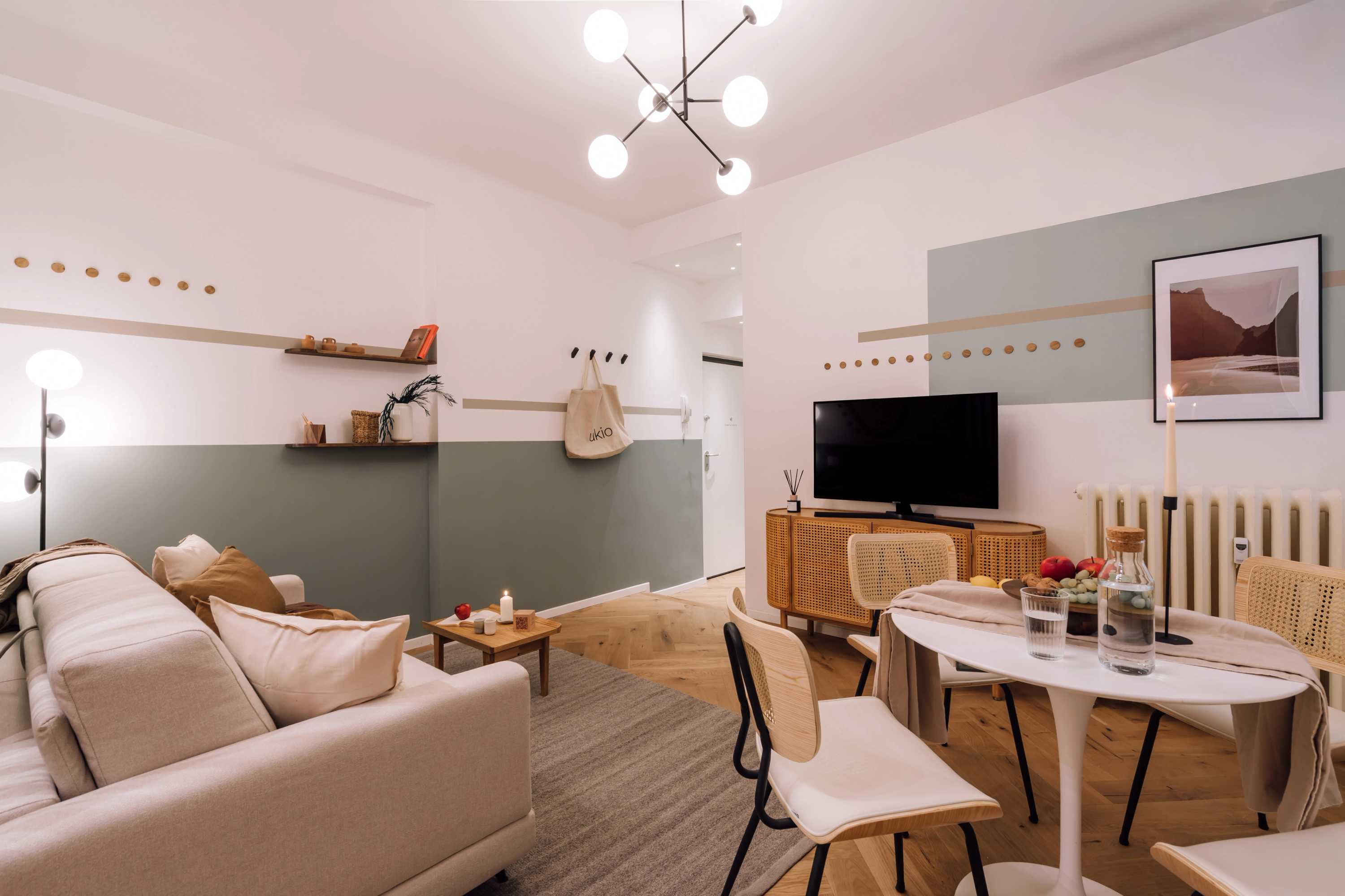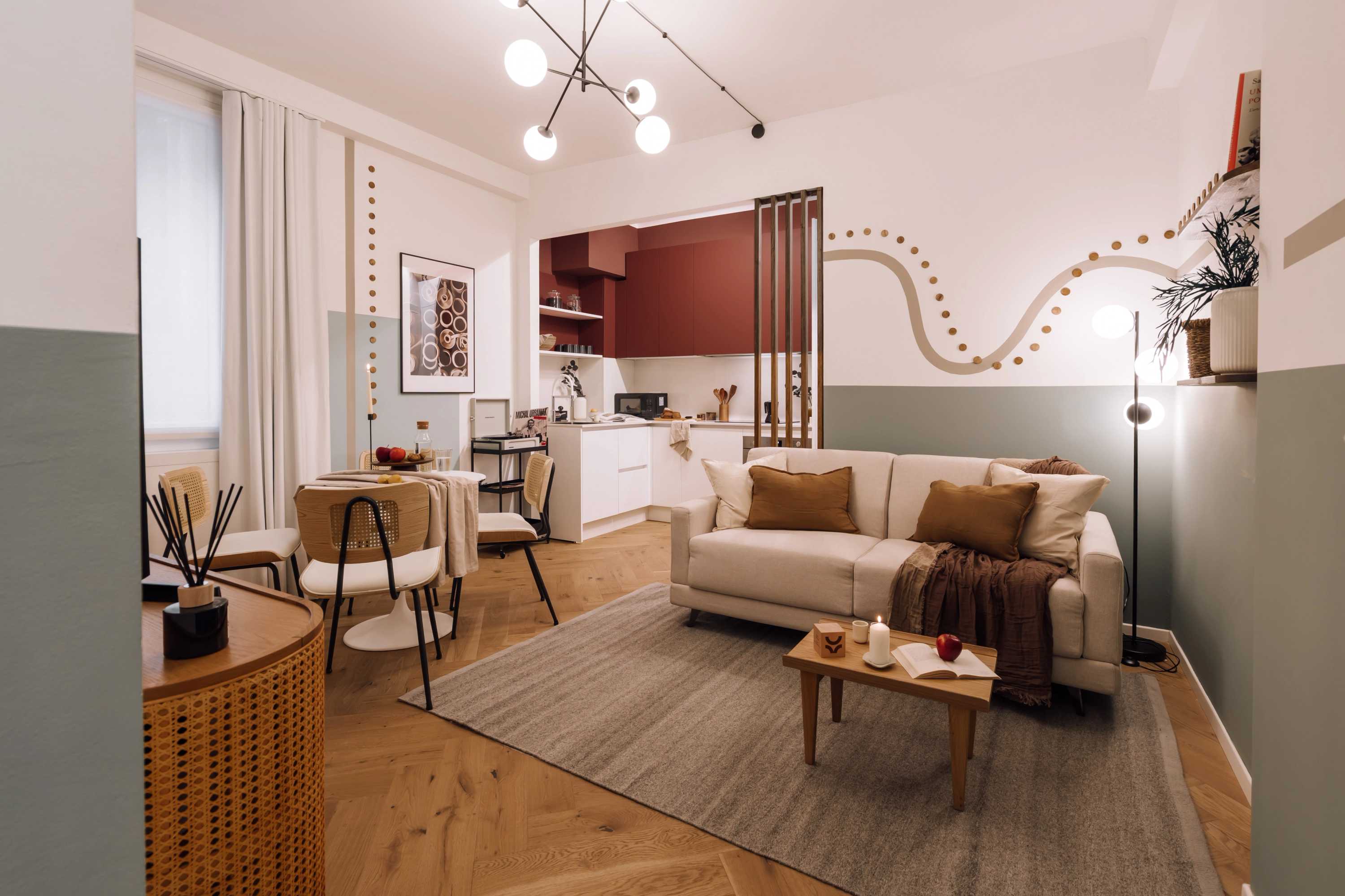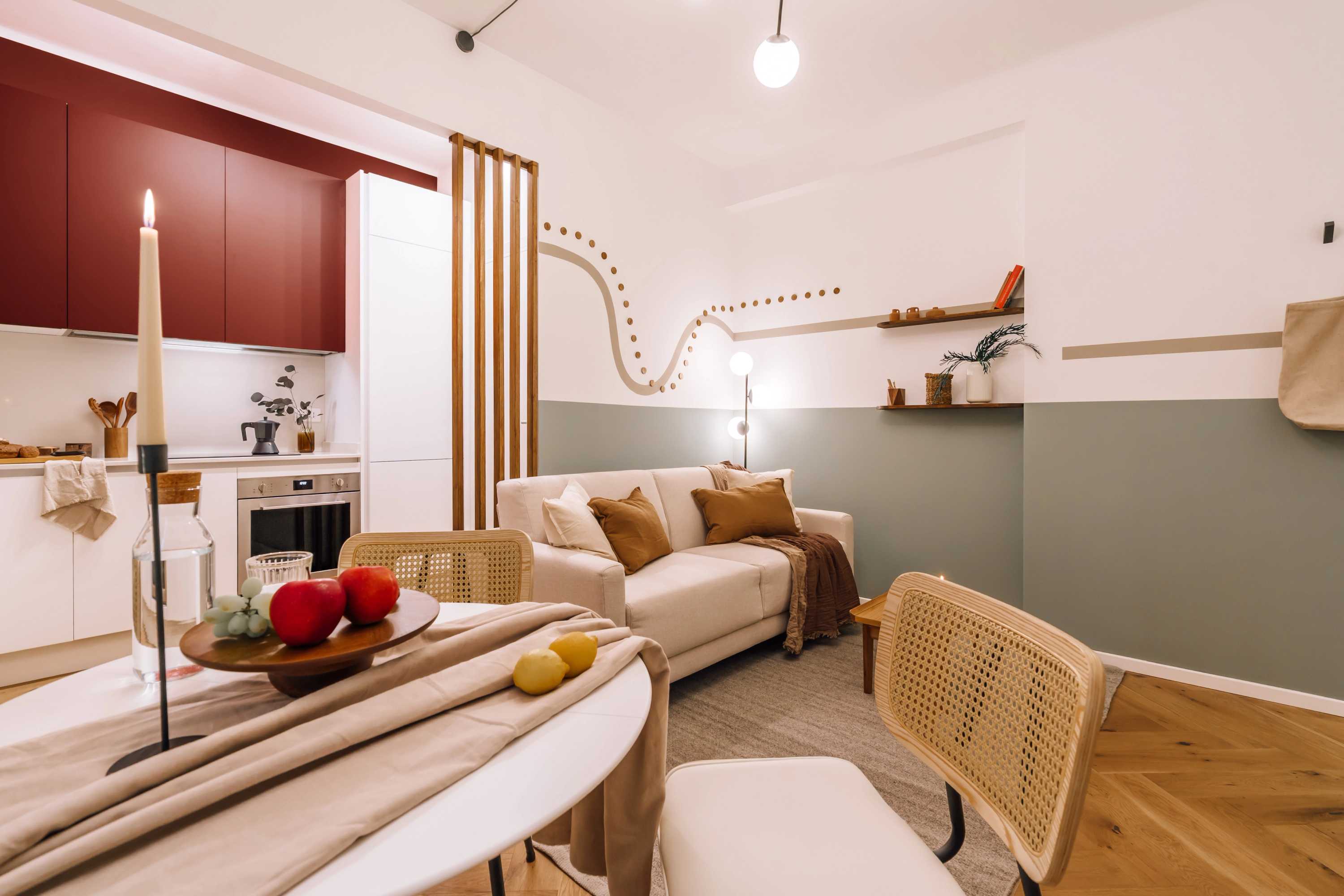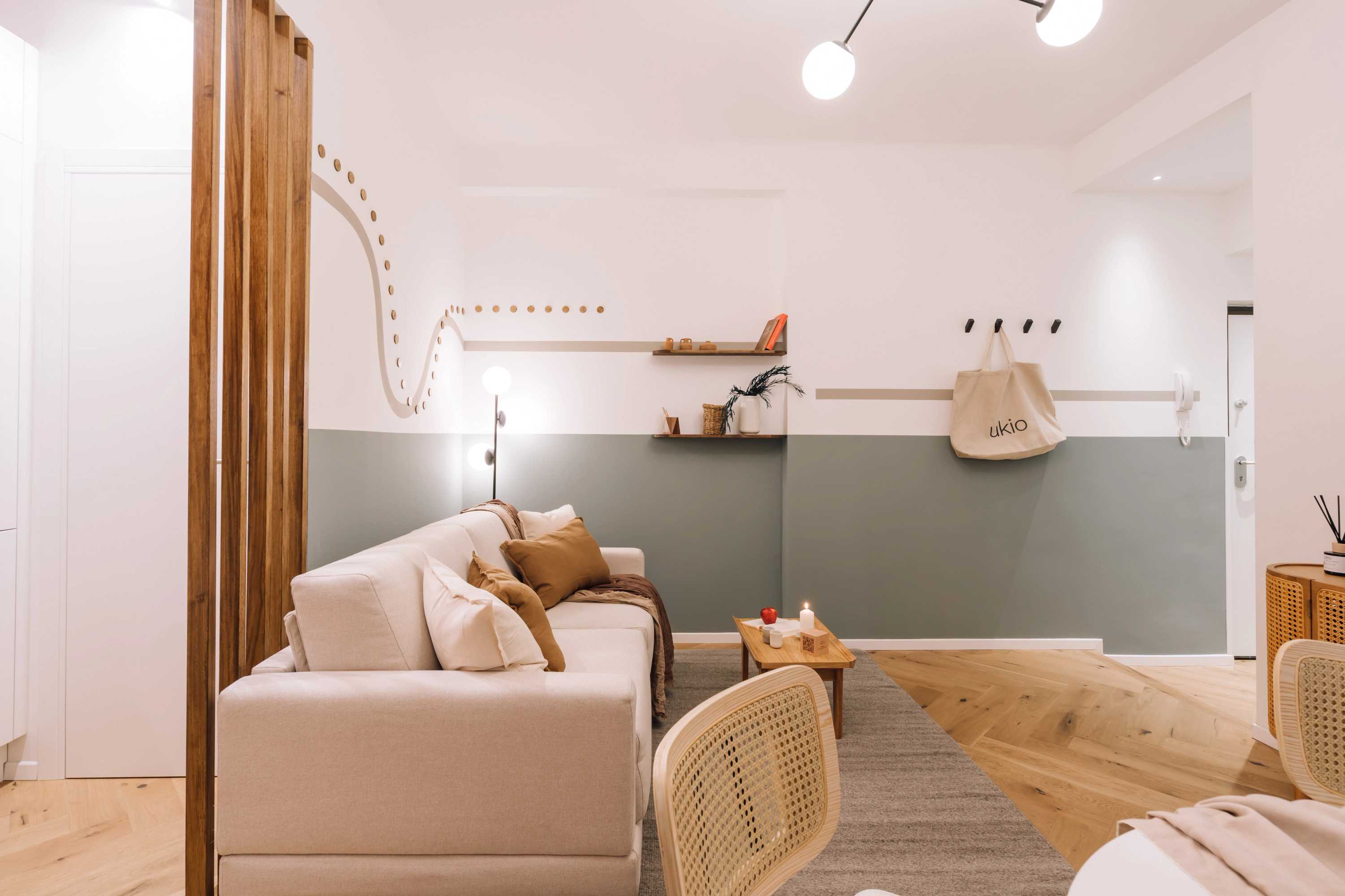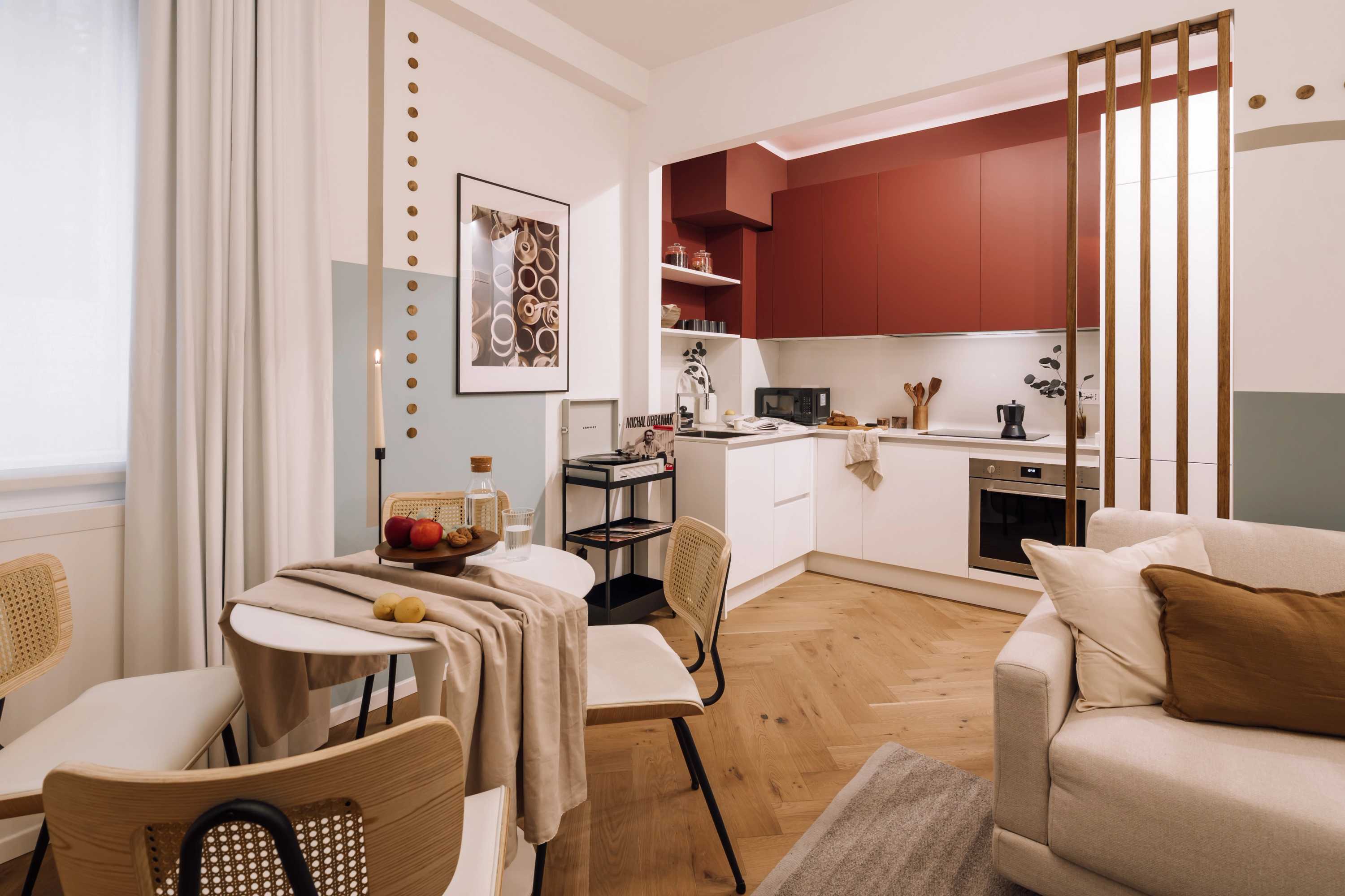 *Nuestro equipo de diseño interno selecciona de forma experta todos los muebles y la decoración de los apartamentos para garantizar el máximo nivel de cadad y comodidad. Como parte del mantenimiento constante de la casa, las mejoras de diseño y la puesta en escena fotográfica, puede haber pequeñas diferencias entre el mobiliario que se ve en las fotos y el que encontrará en el apartliamento. Consulte con un agente de ventas para cualquier pregunta o duda.