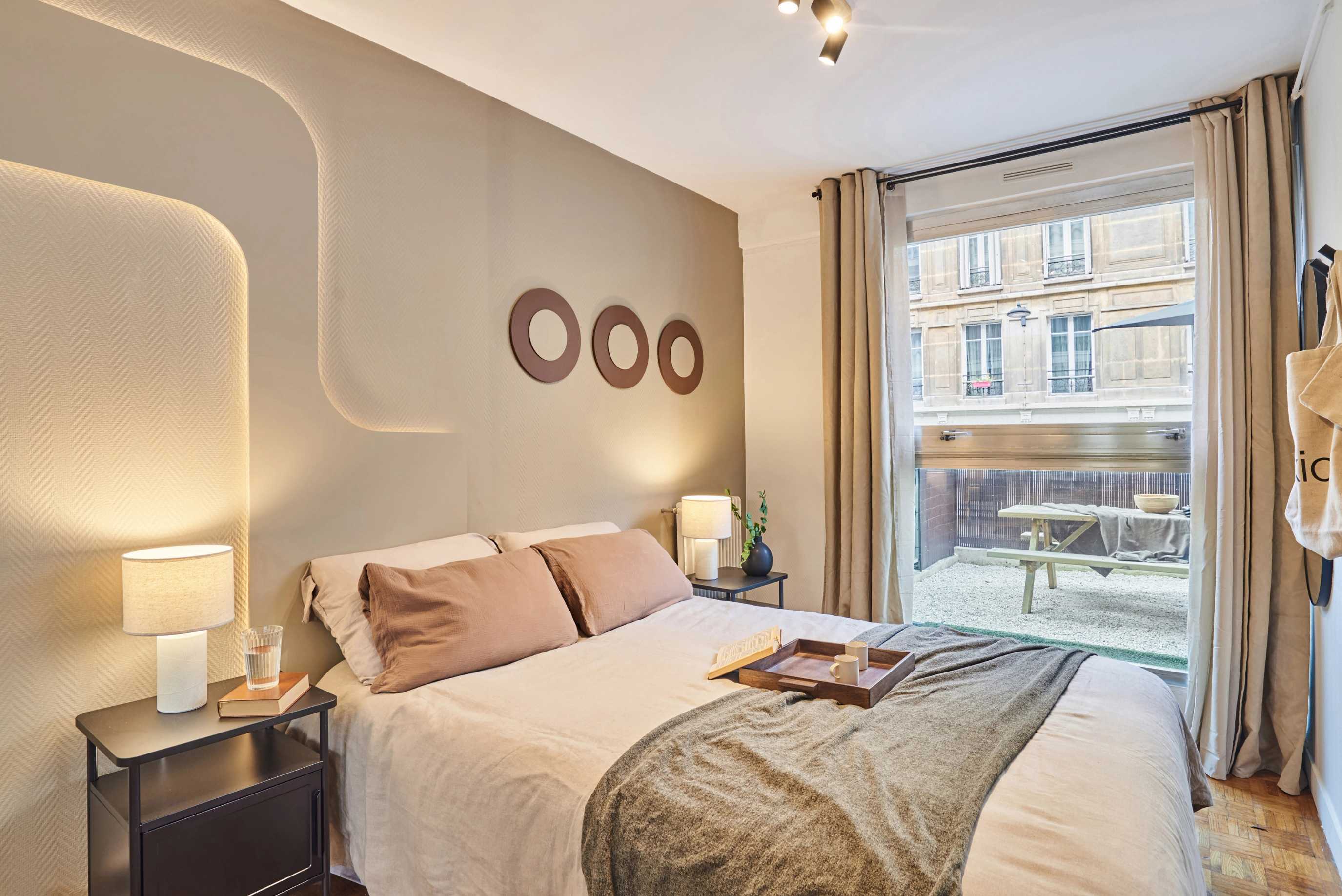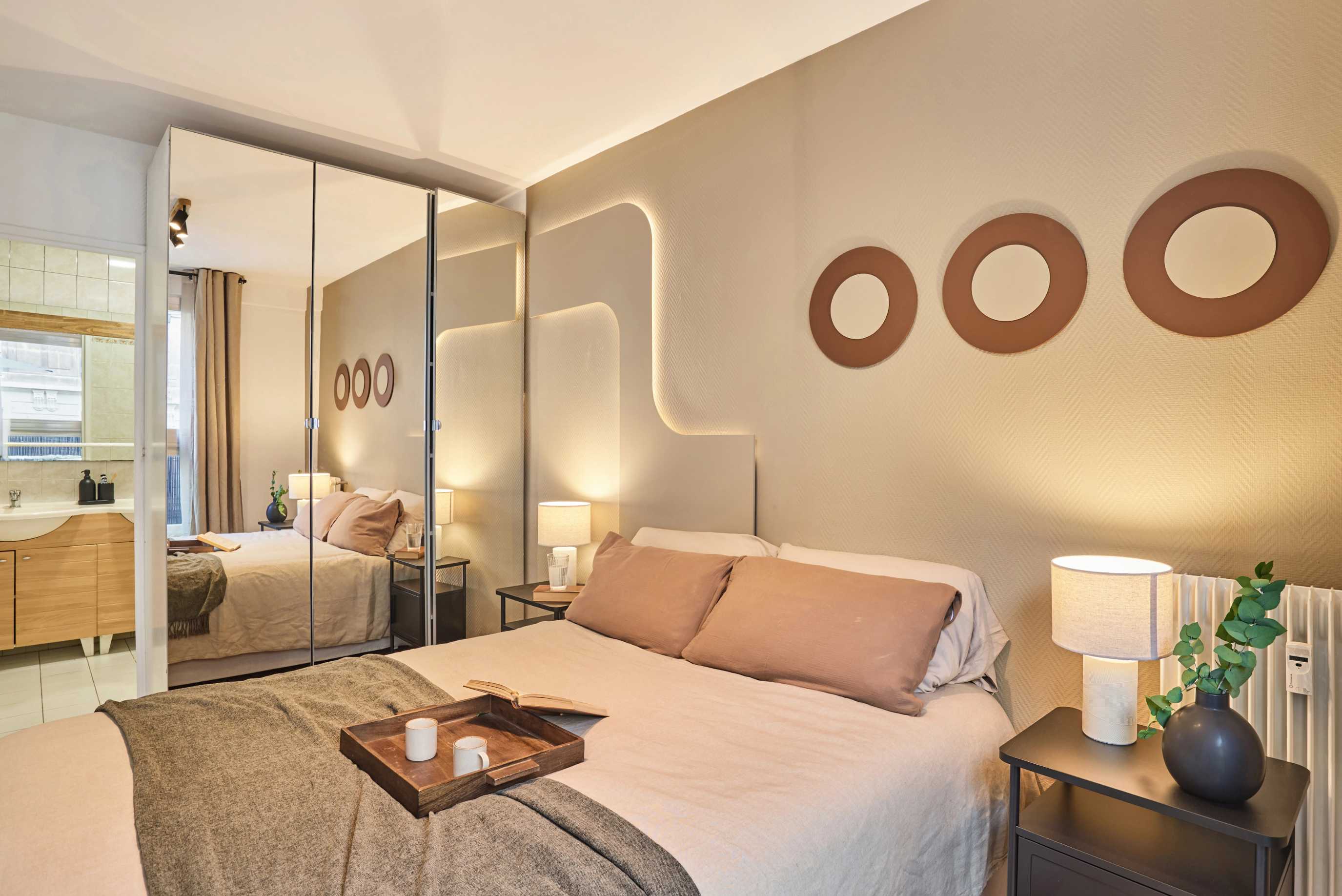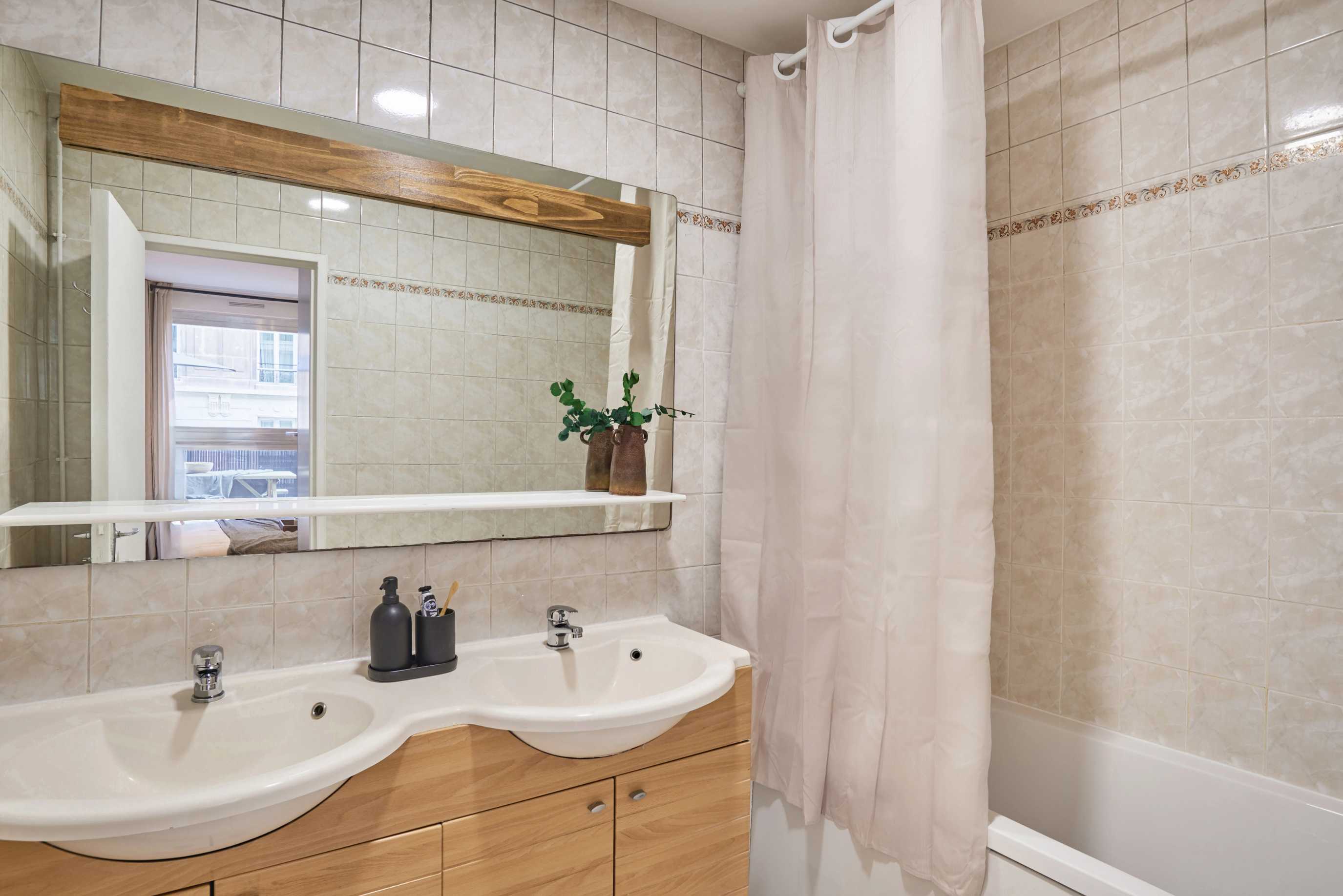 Beautifully renovated and furnished apartment located on Rue Alibert, in the Canal Saint Martin neighborhood, in the 10th arrondissement. It is located on the 1st floor with an elevator, close to the Goncourt, Jacques Bonsergent, and République stations. Nearby attractions include the Musée des Moulages, Jardin Villemin - Mahsa Jîna Amini, and Passage Vendôme.