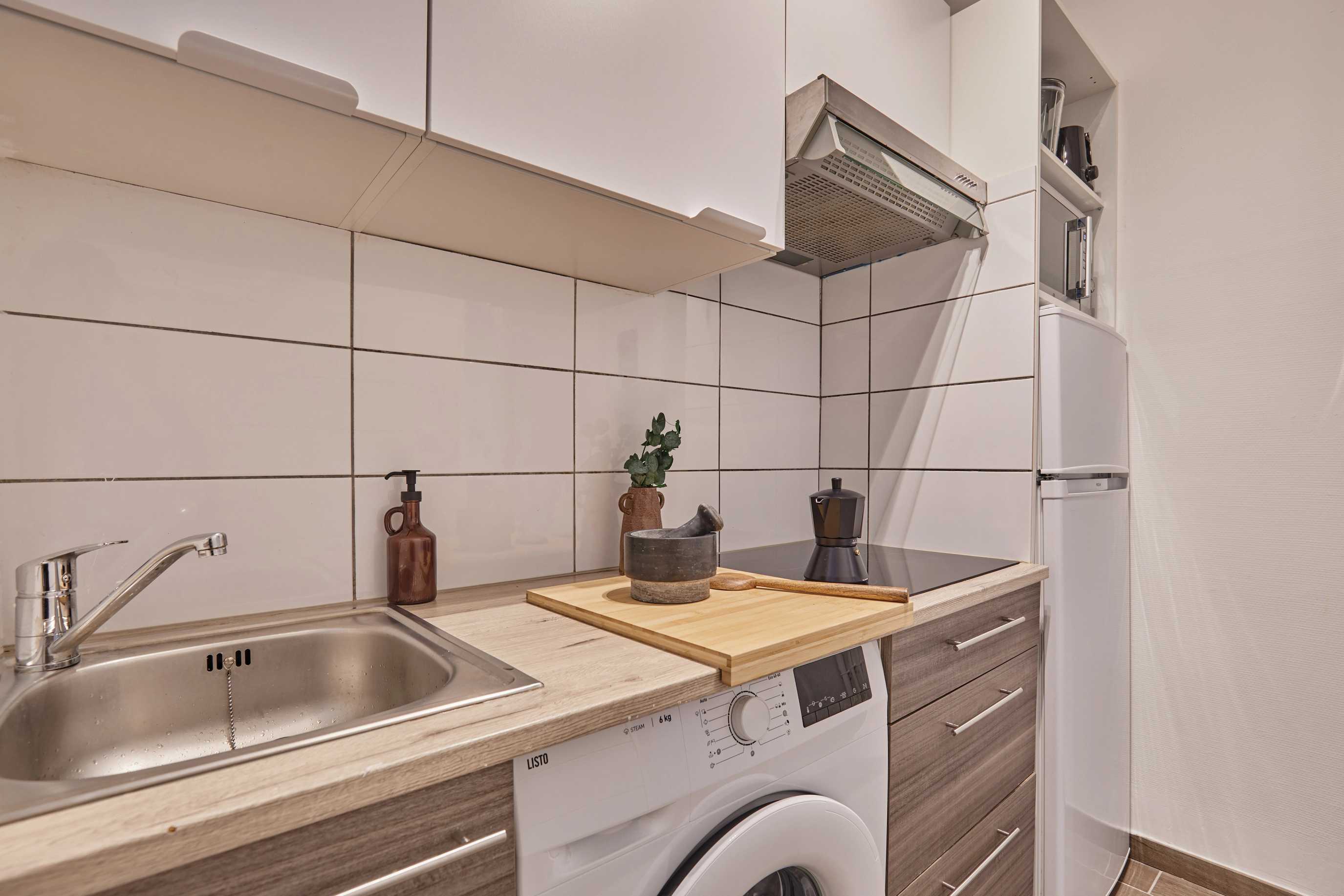 It consists of one bedroom with one double bed, a living room, a kitchen, and one bathrooms. The bed is equipped with soft sheets, ideal for a good night's sleep. The kitchen is fully equipped with appliances and kitchen utensils. The apartment has a bathroom equipped with a full shower and towels. In addition, there is high-speed WiFi and a SmartTV. The apartment also has a washing machine for your convenience.