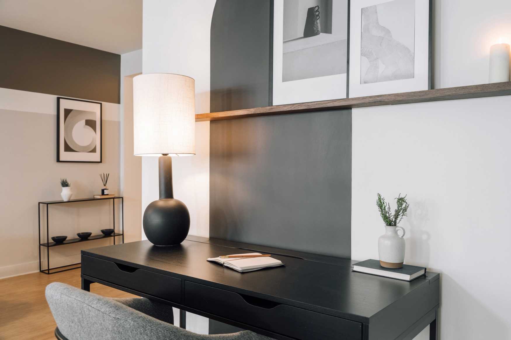 *Our in-house design team expertly selects all apartment furniture and decor to ensure the highest level of quality and comfort. As part of consistent home upkeep, design improvements, and photo staging, there may be minor differences in furnishings seen in the photos and what you find in the apartment. Inquire with a sales agent for any questions or doubts.