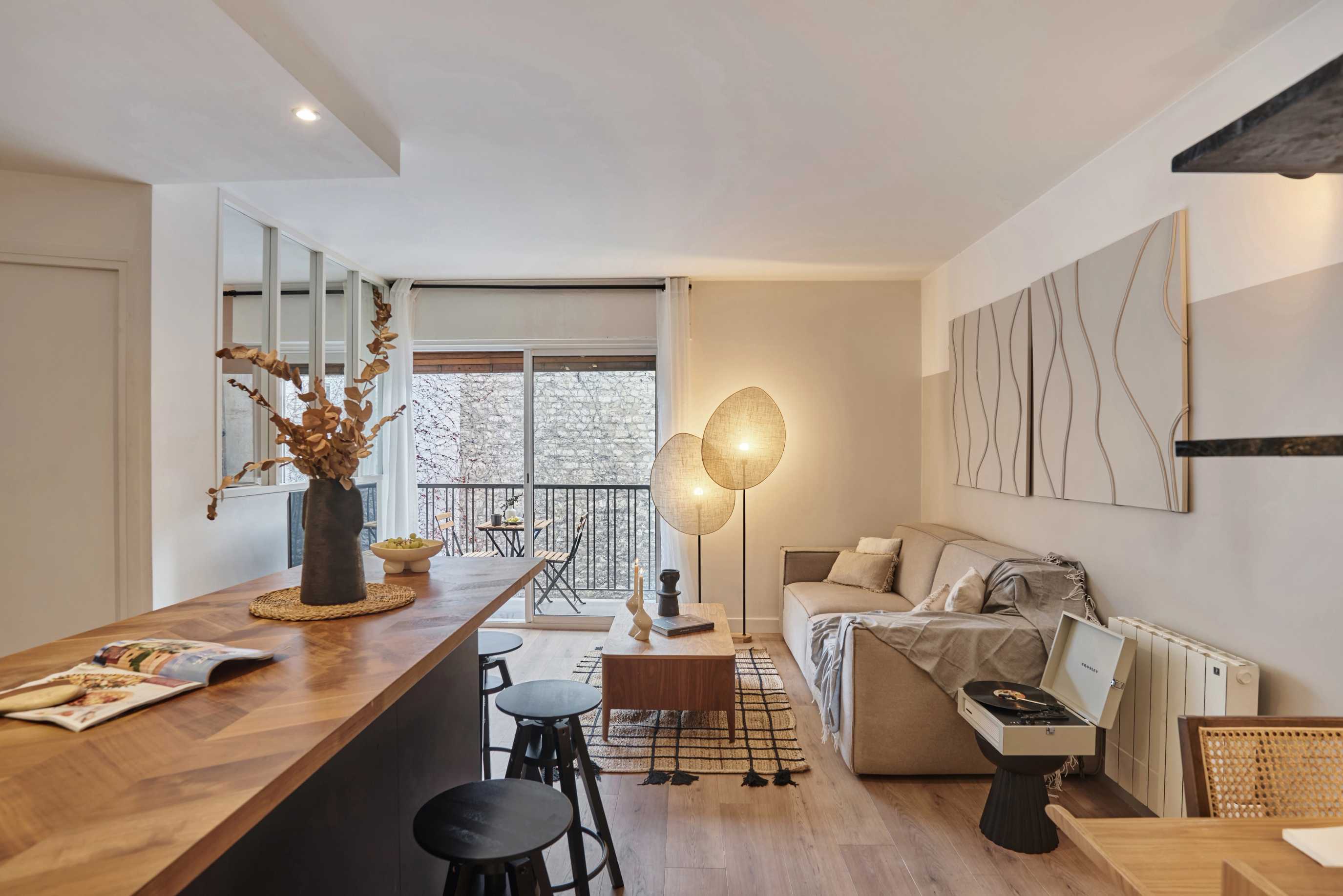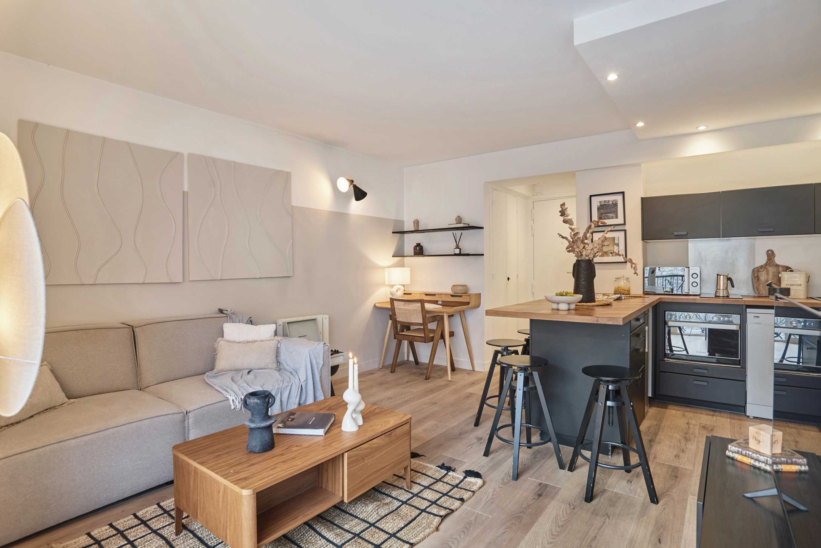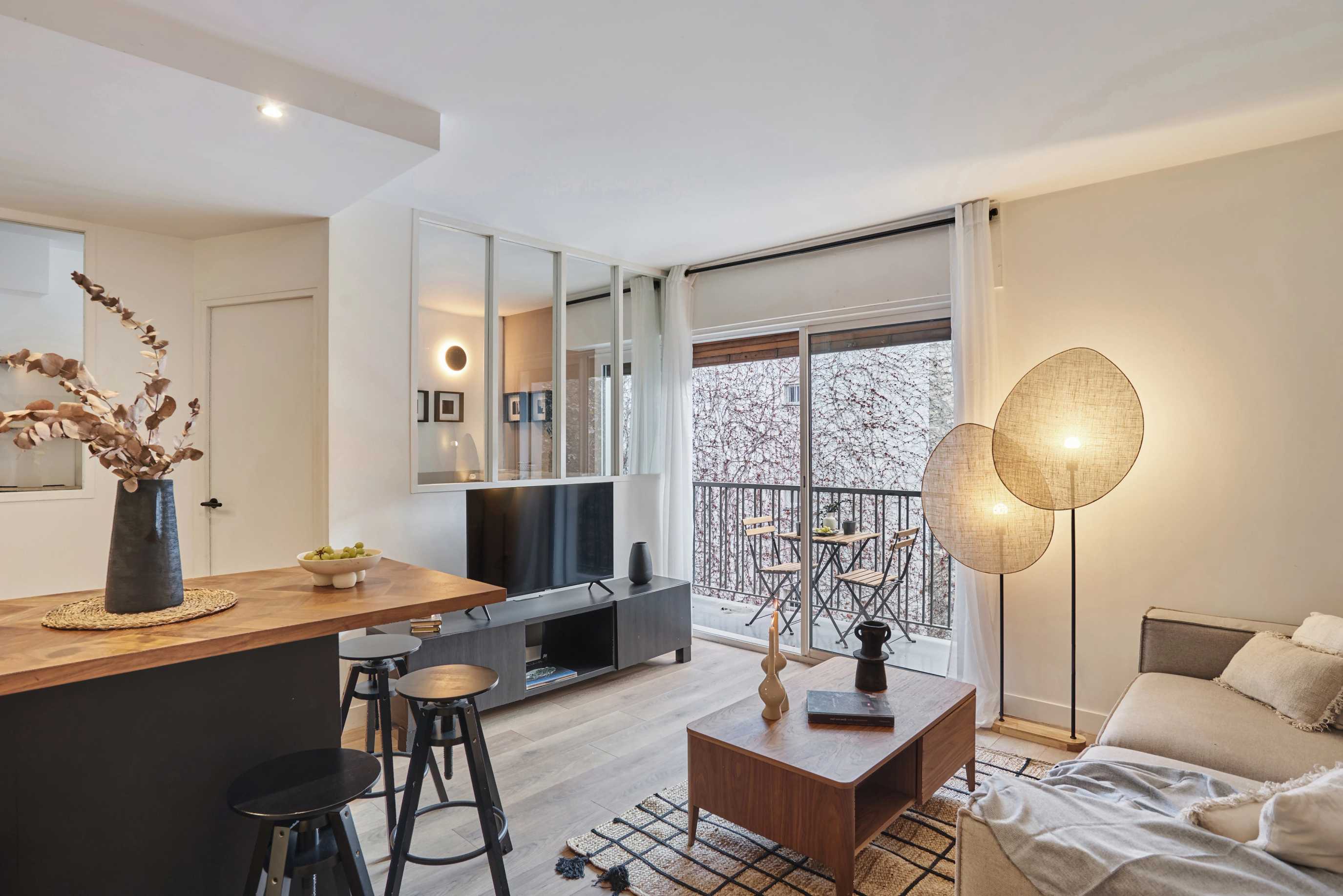 Magnificent renovated and furnished apartment on rue Legendre, in the Épinettes district. Located on the 6th floor with elevator, near Brochant, La Fourche and Rome stations. The Square de Batignolles, Théâtre de l'Européen and Ateliers Berthier are nearby.
